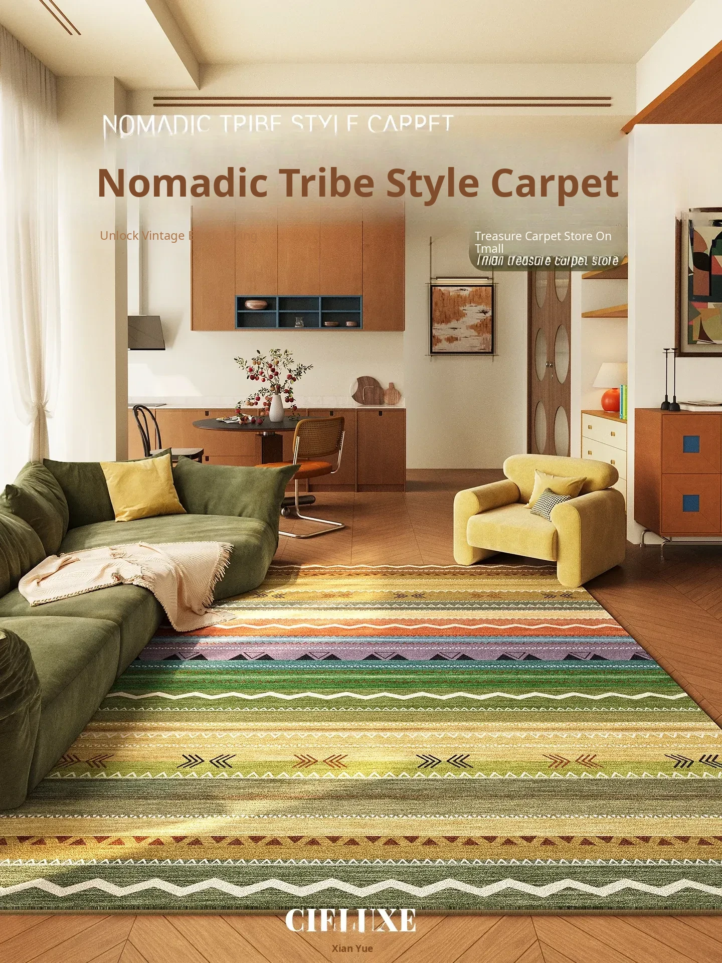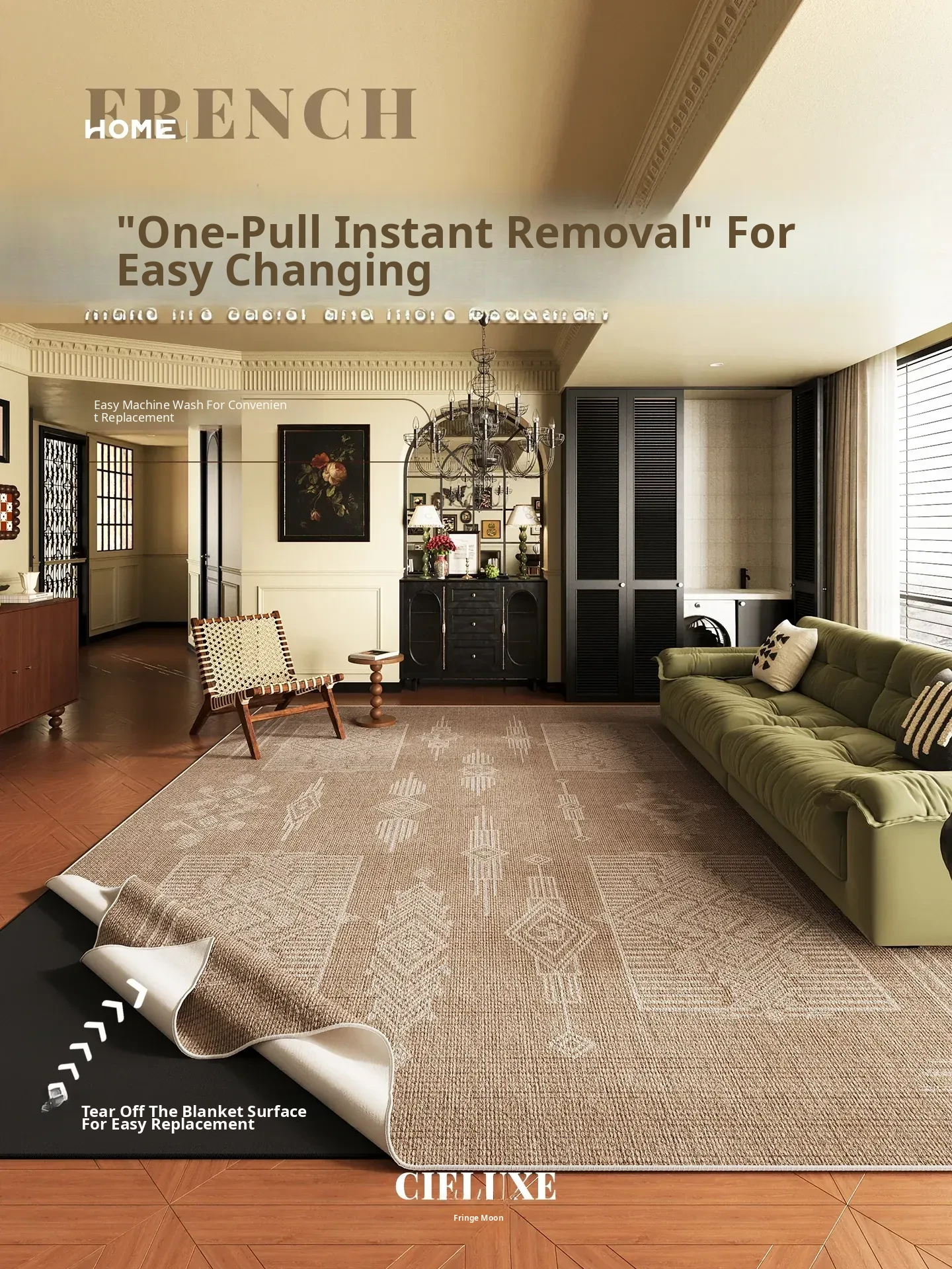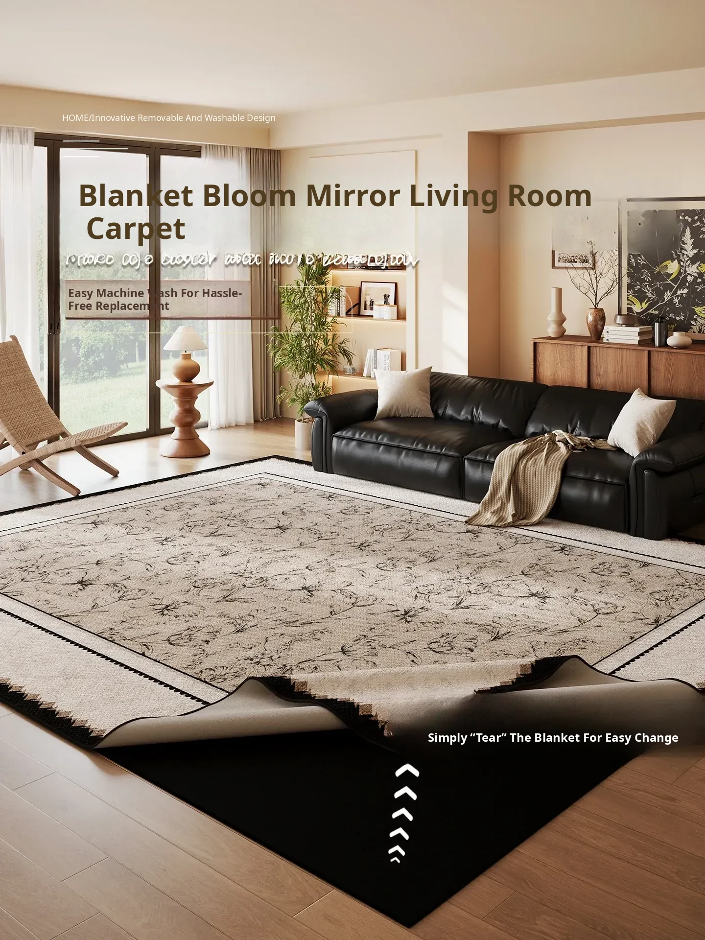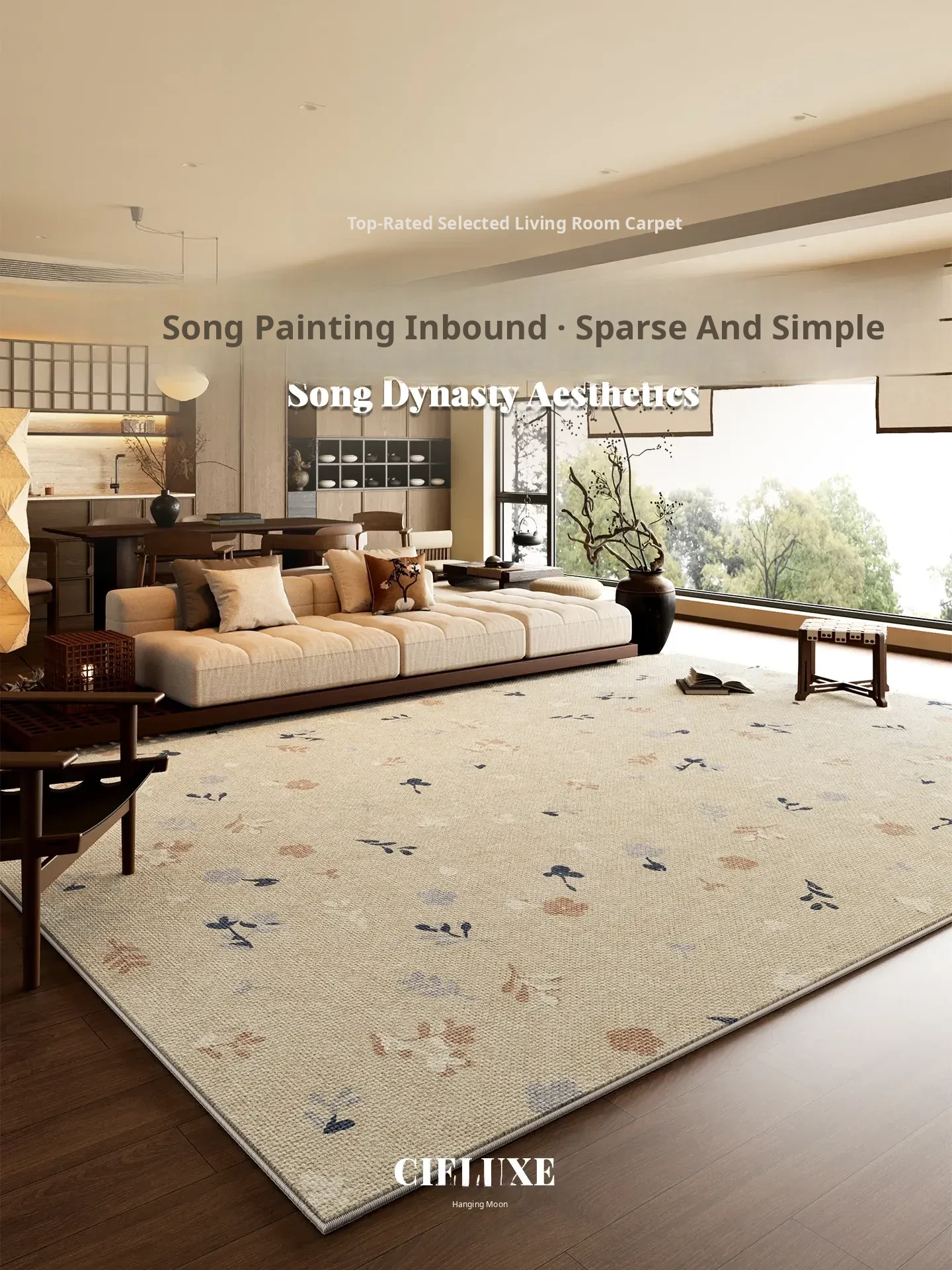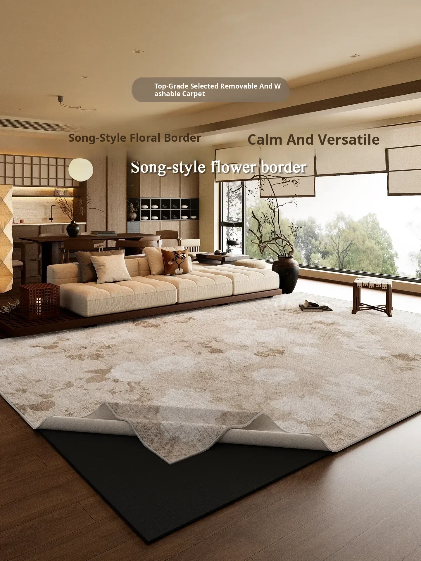 Song Style Aesthetic Removable and Washable Carpet - Vintage Double-Layer Area Rug for Living Room Sofa, Machine Washable, Detachable Home Foot Mat - Perfect for a Cozy and Elegant Home Décor
