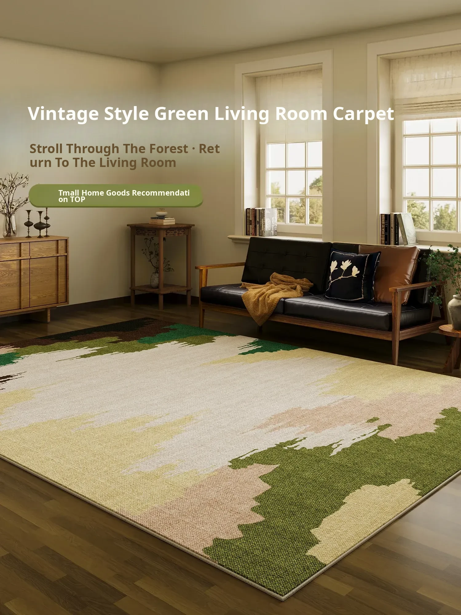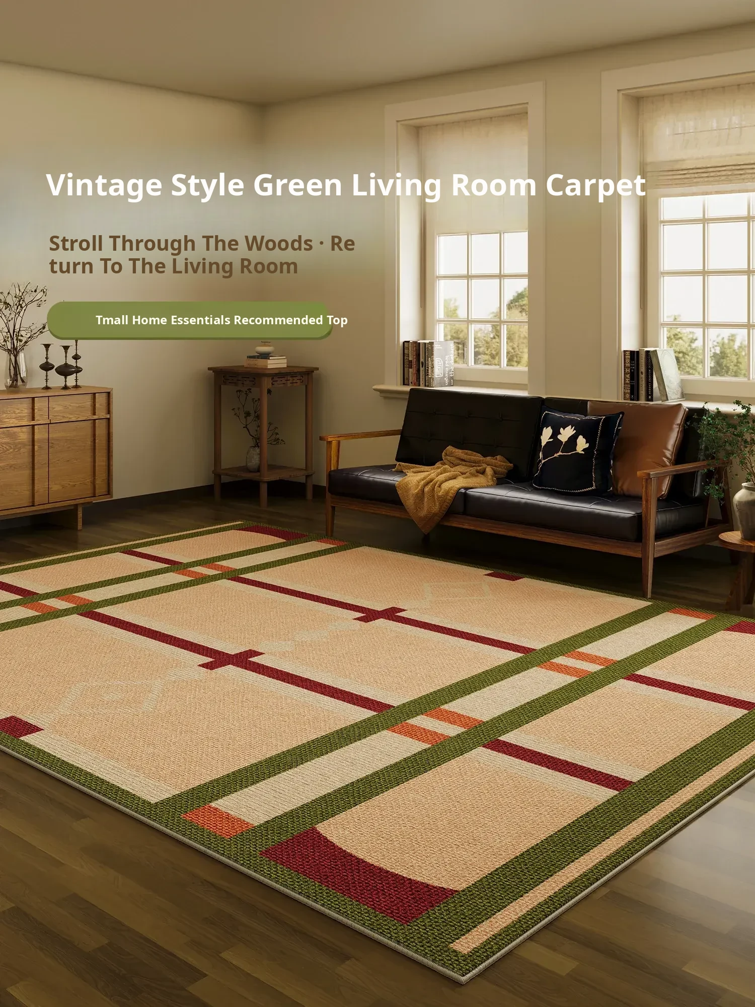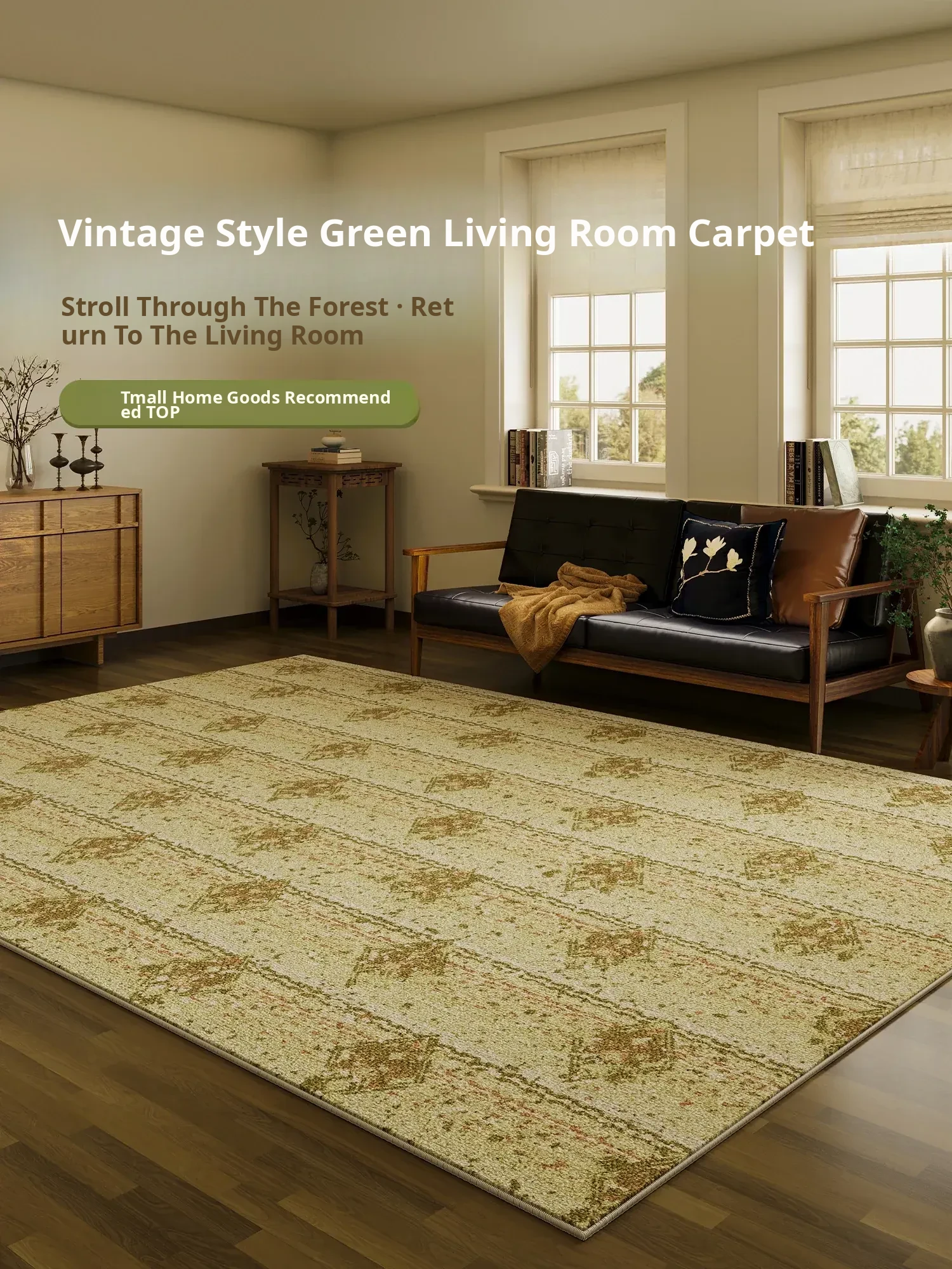 2026 New Vintage Green Carpet - Stylish Sofa Mat for Living Room, Retro Waterproof Area Rug for Bedroom and Bedside, Perfect for a Cozy Atmosphere