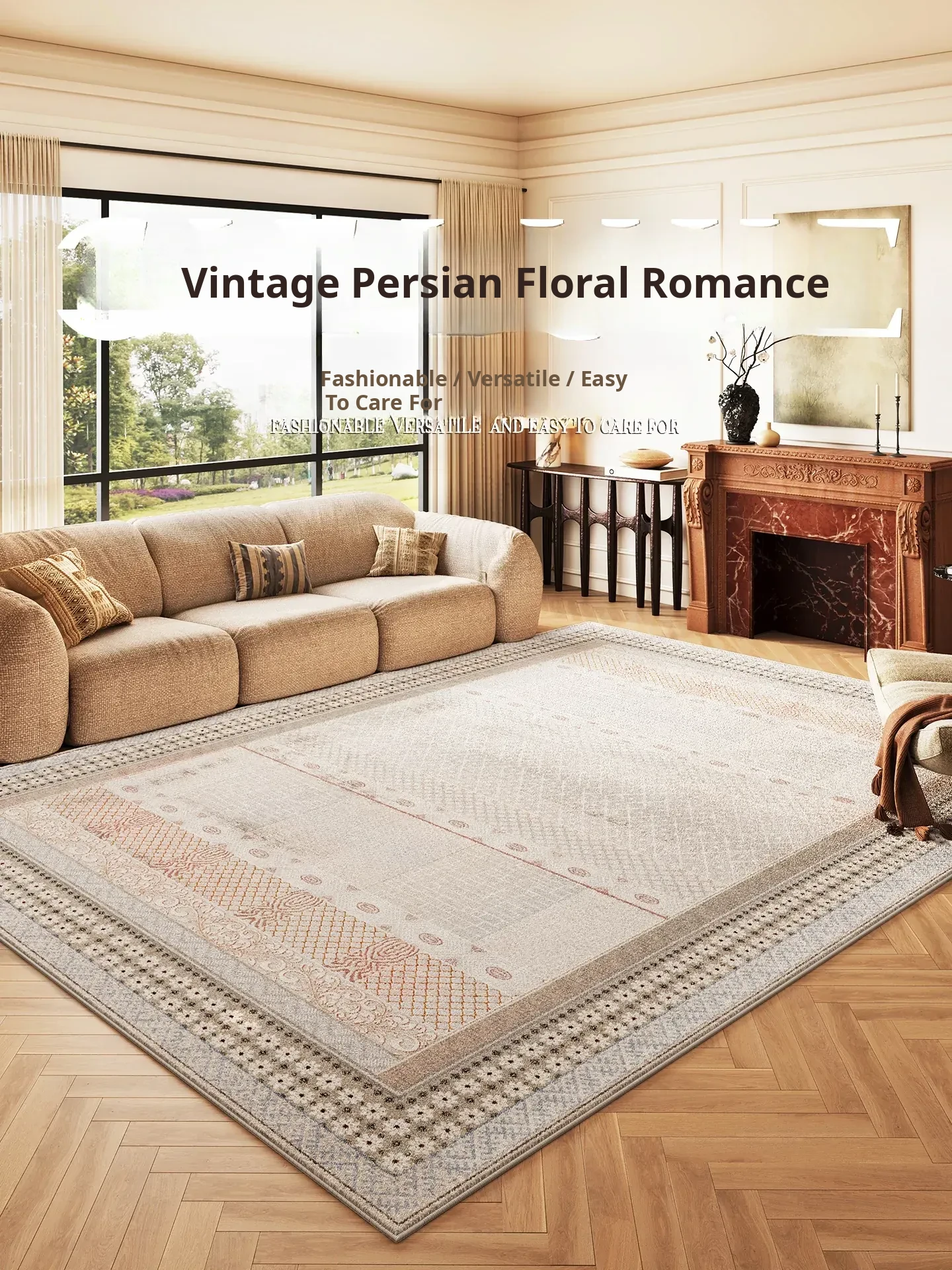 2026 New Luxury Thick Non-Slip Carpet for Living Room - Easy to Clean Vintage Style Area Rug for Sofa, Coffee Table, and Bedside