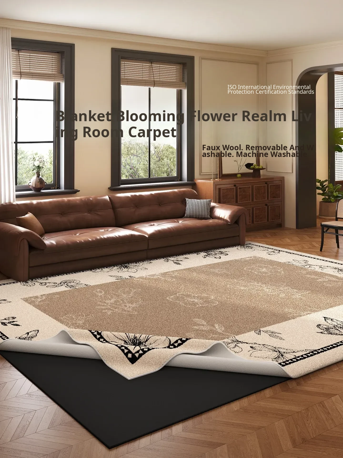 2026 New French Style Brown Vintage Living Room Carpet - Washable & Removable Area Rug for Bedroom, Sofa, and Coffee Table - Perfect for Cozy Spaces!