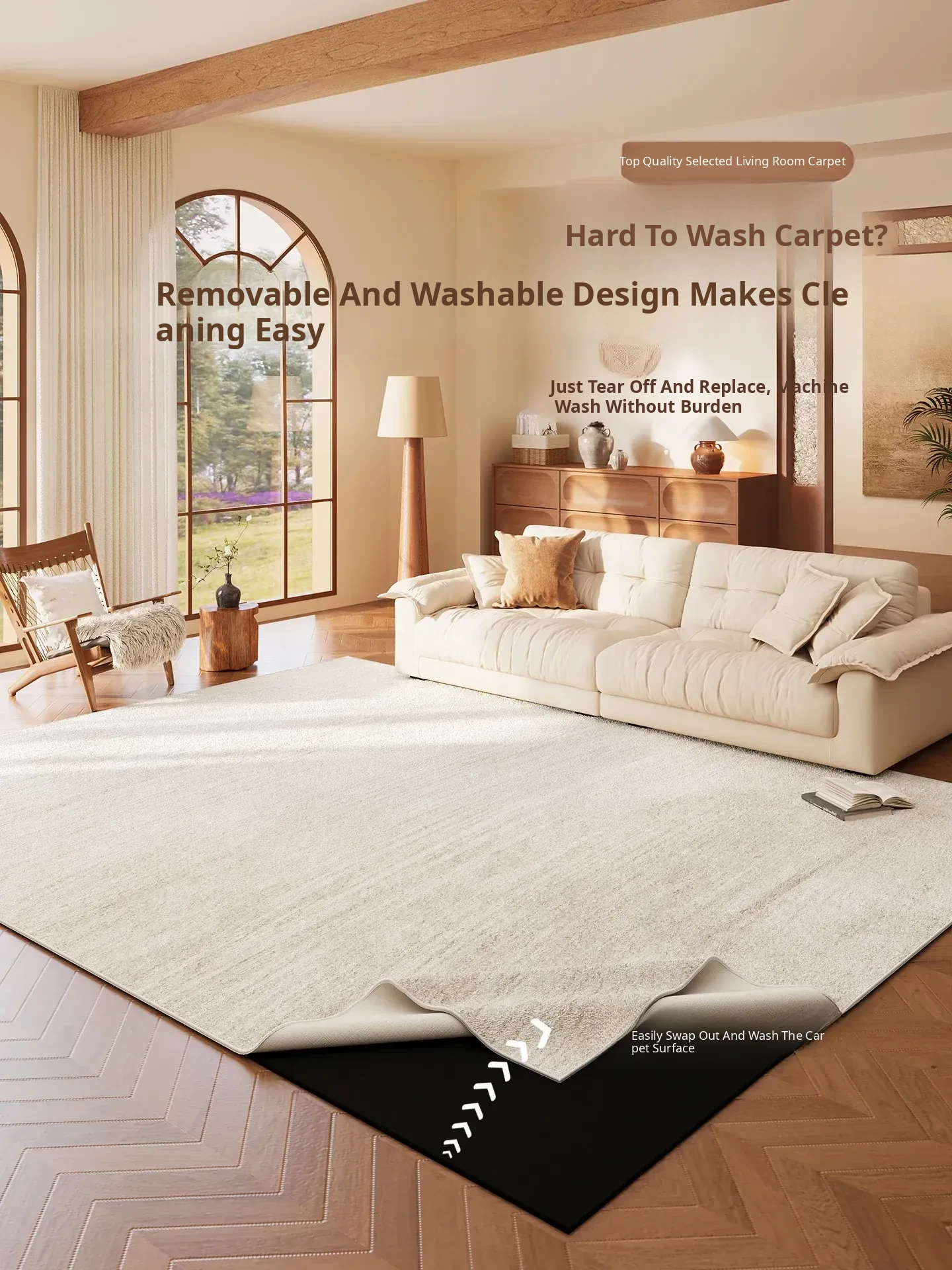 Elegant Removable Washable Carpet for Living Room - French Style Machine Washable Sofa Mat, Chic Bedroom Bedside Rug, Perfect for Modern Décor