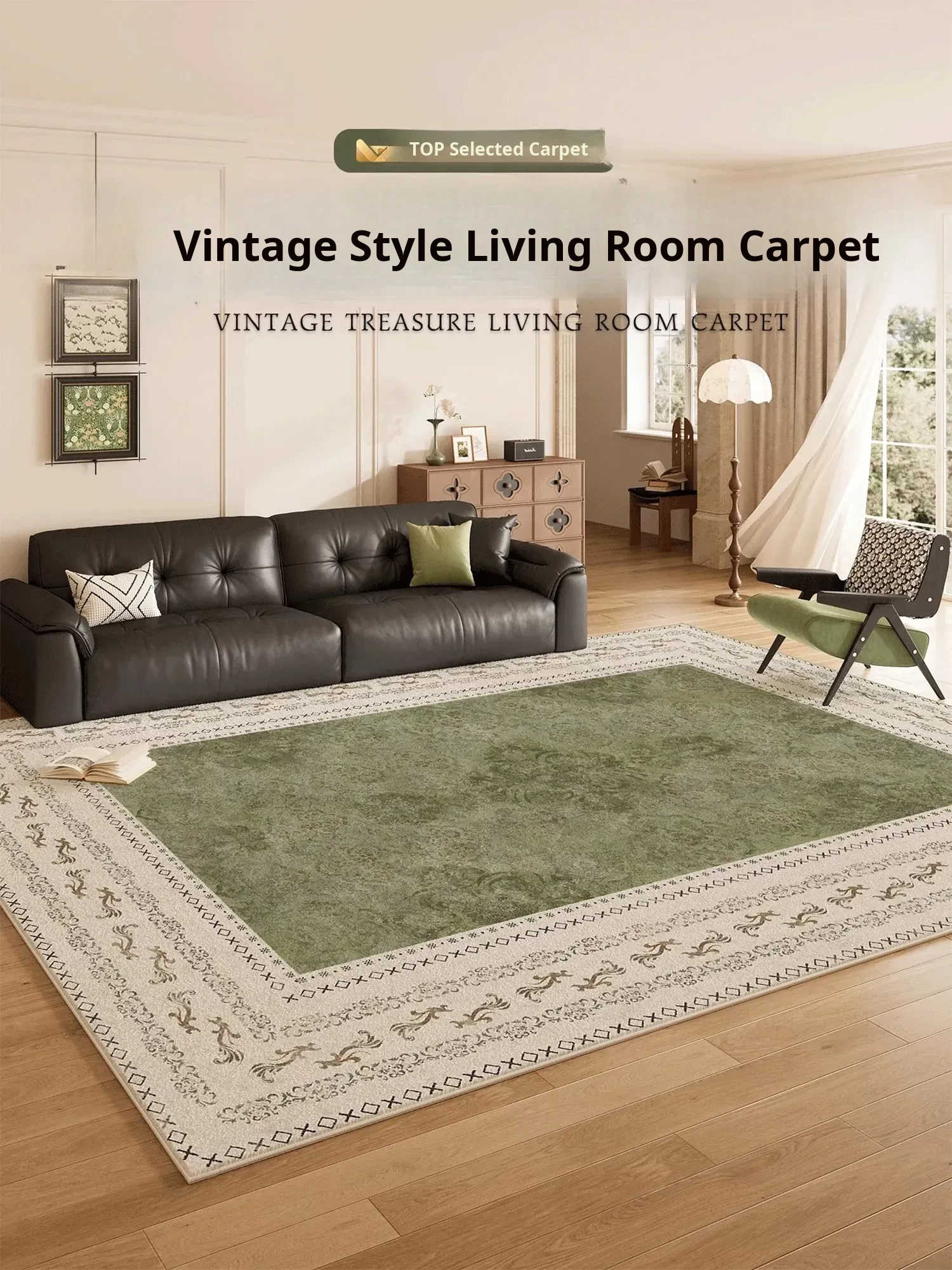 2026 New Vintage-Inspired Green Area Rug for Living Room - Waterproof and Stain-Resistant Sofa Mat, Perfect for Bedroom or Bedside Use