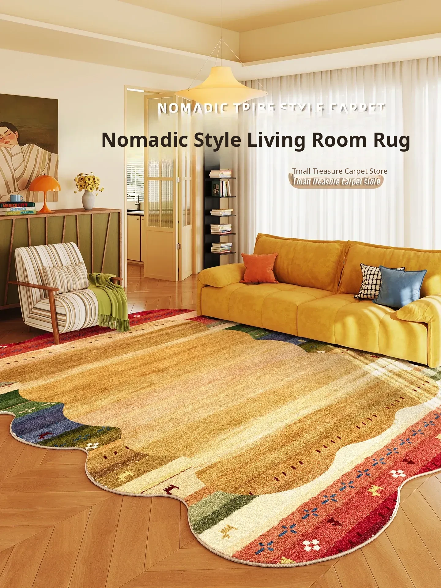 Vintage-Inspired Irregular Shaped Carpet – Bohemian Plush Area Rug for Living Room, Sofa, and Bedroom – Unique Floor Mat Perfect for Cozy Spaces