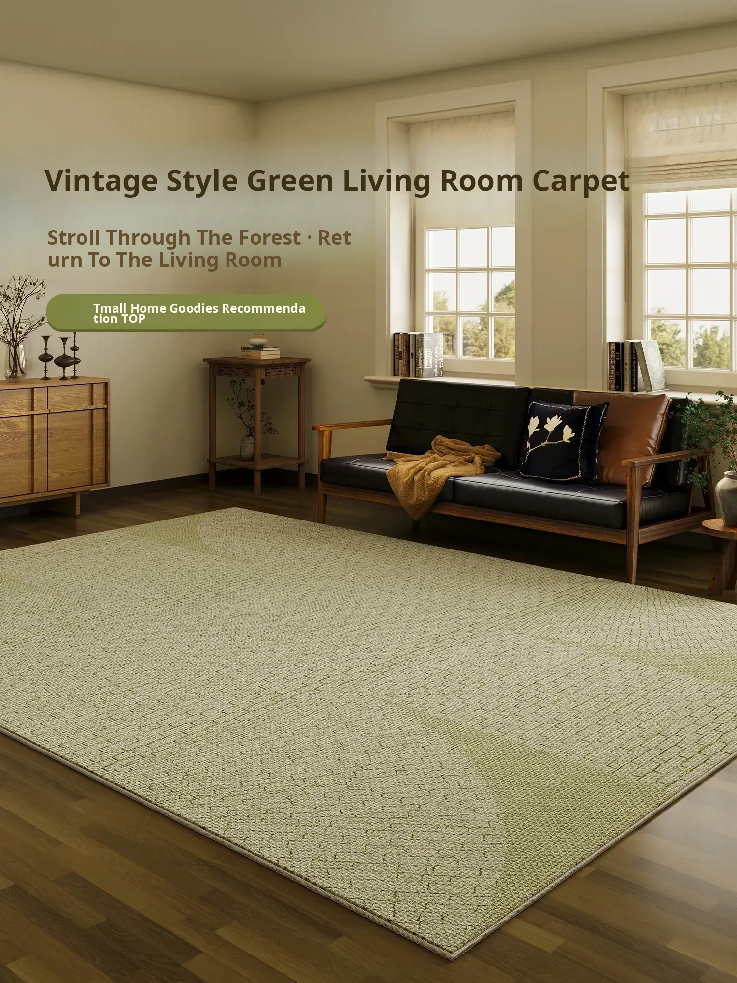 2026 New Green Luxury Living Room Carpet - Stylish Vintage Area Rug for Sofa and Coffee Table, Easy to Clean and Maintenance-Free