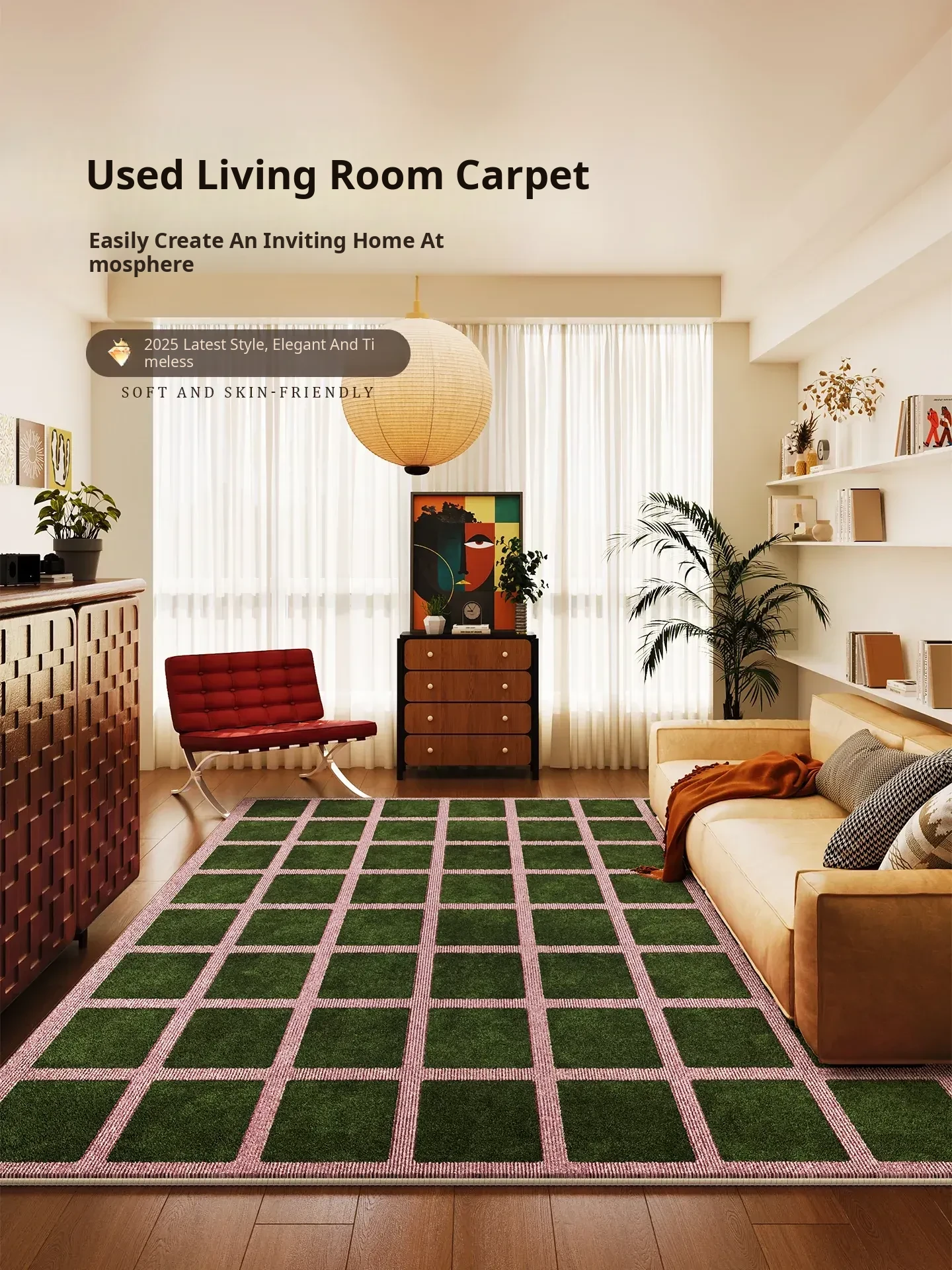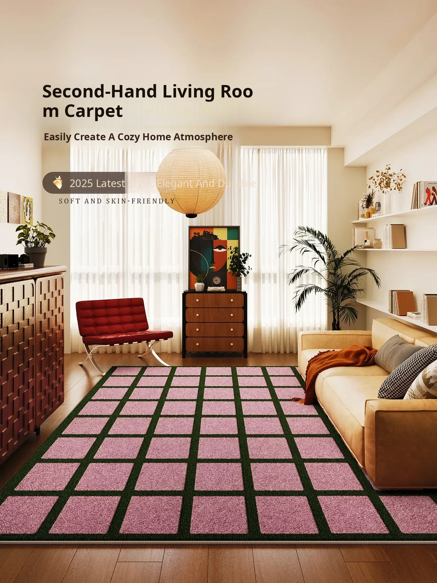Vintage Style Carpet for Living Room - 2026 New Arrival Sofa Mat, Retro Checkered Area Rug, Waterproof and Stain-Resistant Bedroom Bedside Mat