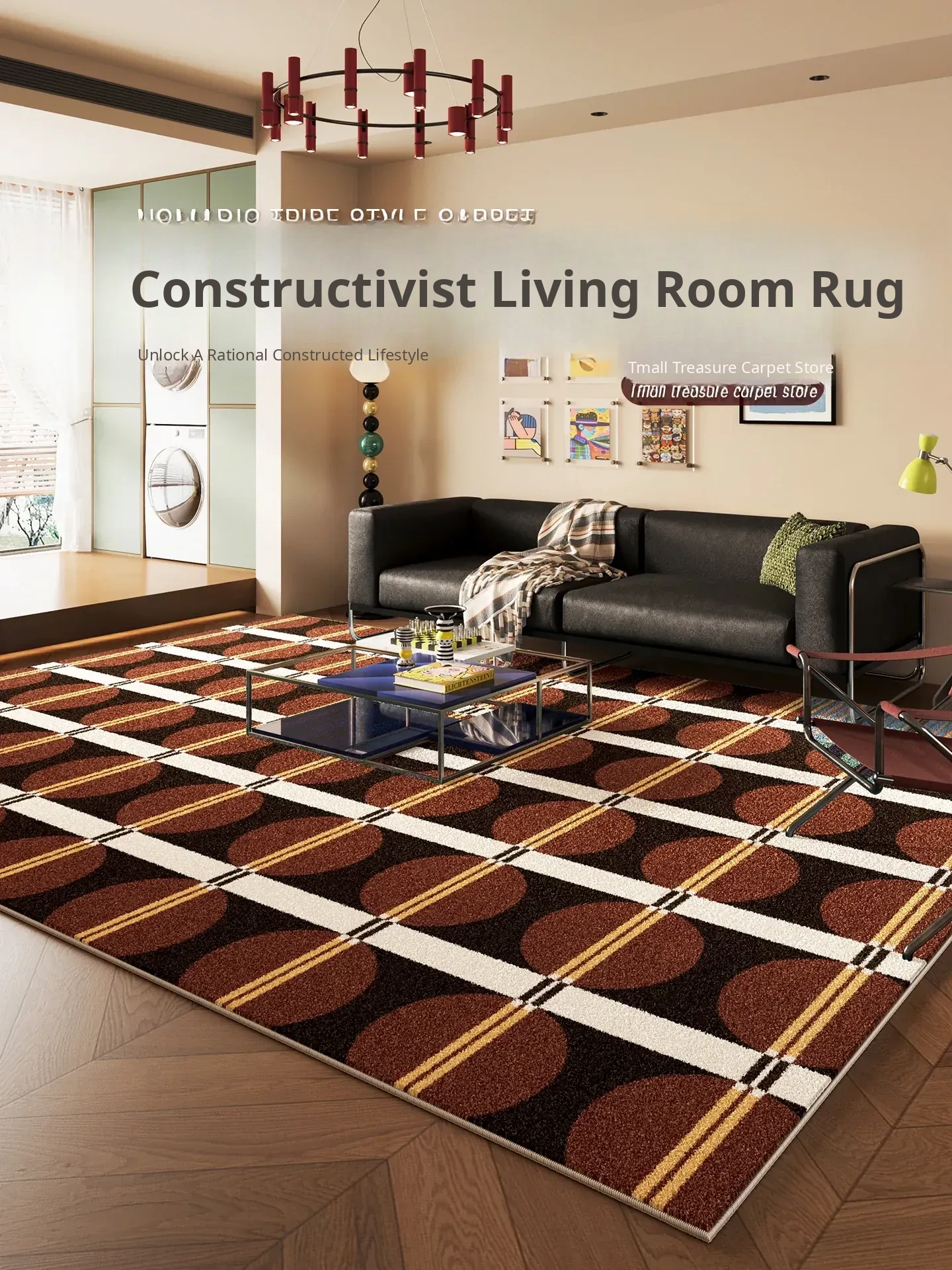 2026 New Vintage Area Rug - Washable and Easy-Clean Living Room Carpet, Mid-Century Bedroom Bedside Mat, Bauhaus Style with Eye-Catching Color Blocking