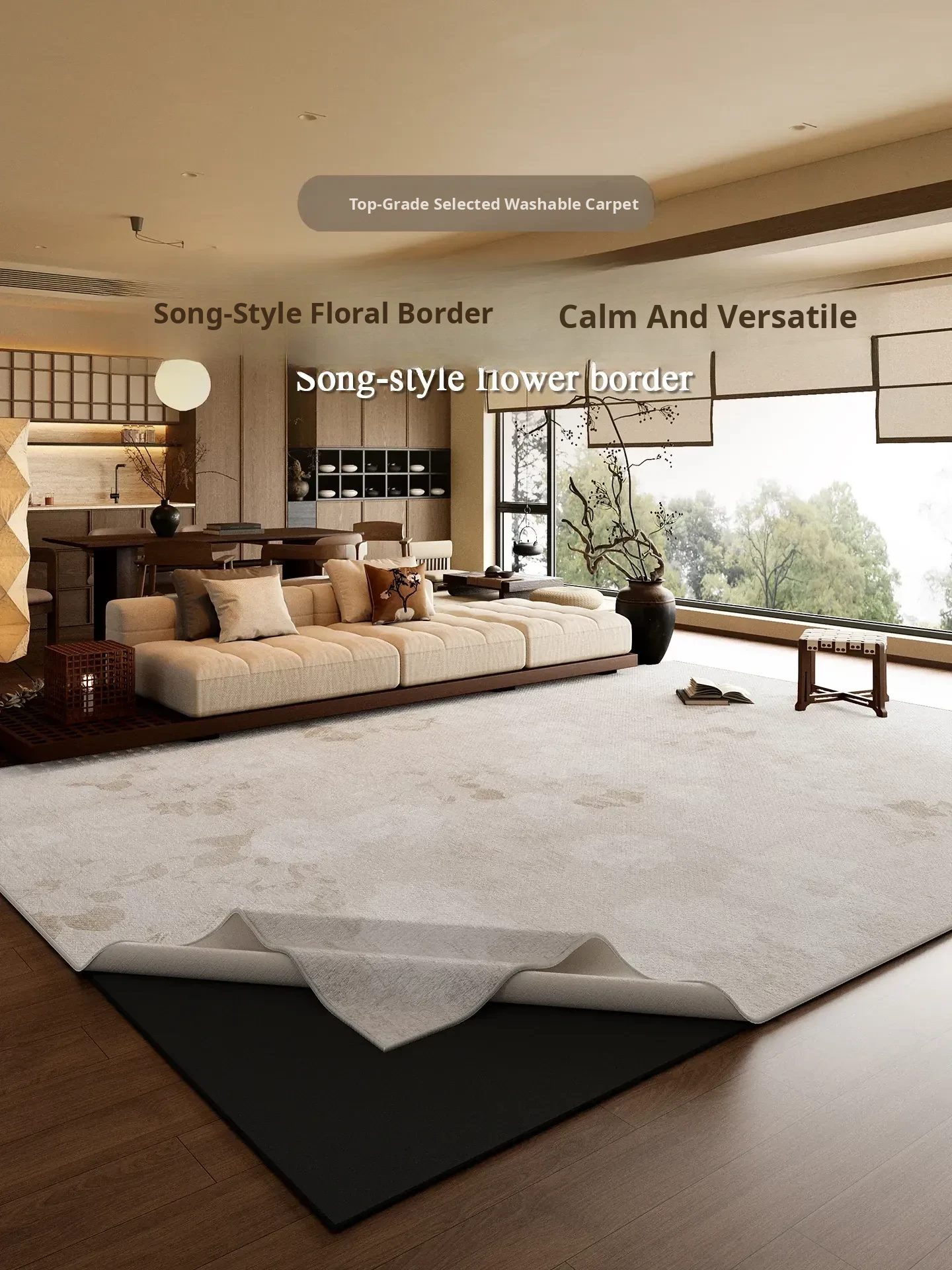 Song Style Aesthetic Washable Living Room Carpet - Removable Vintage Sofa Mat, Machine Washable Retro Bedside Rug, Perfect for Home Décor and Easy Maintenance