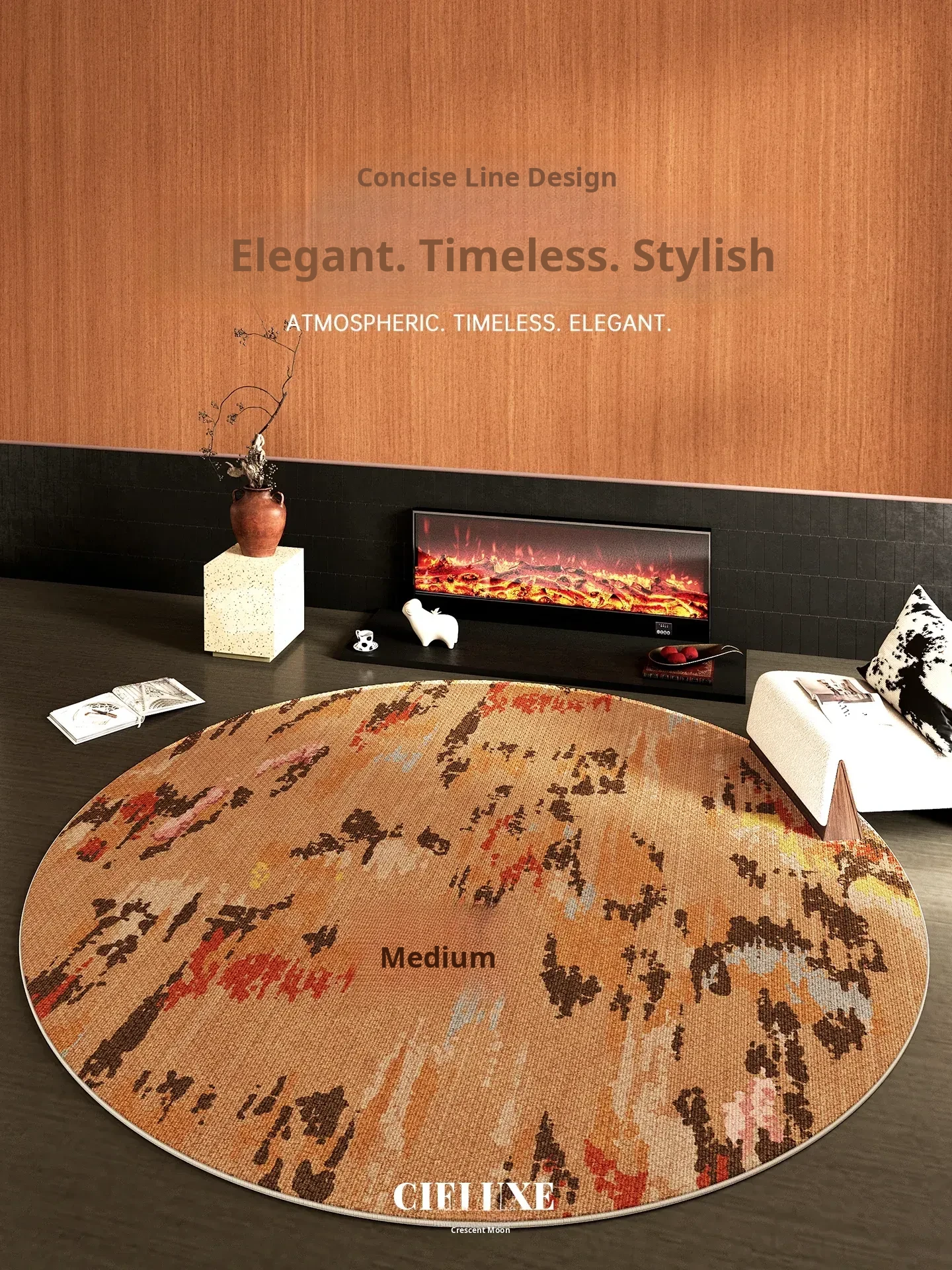 Elegant Moon Phase Brown Carpet for Living Room - Vintage Style, Removable & Washable Sofa Mat, Machine-Washable Detachable Foot Pad for Bedroom Bedside.