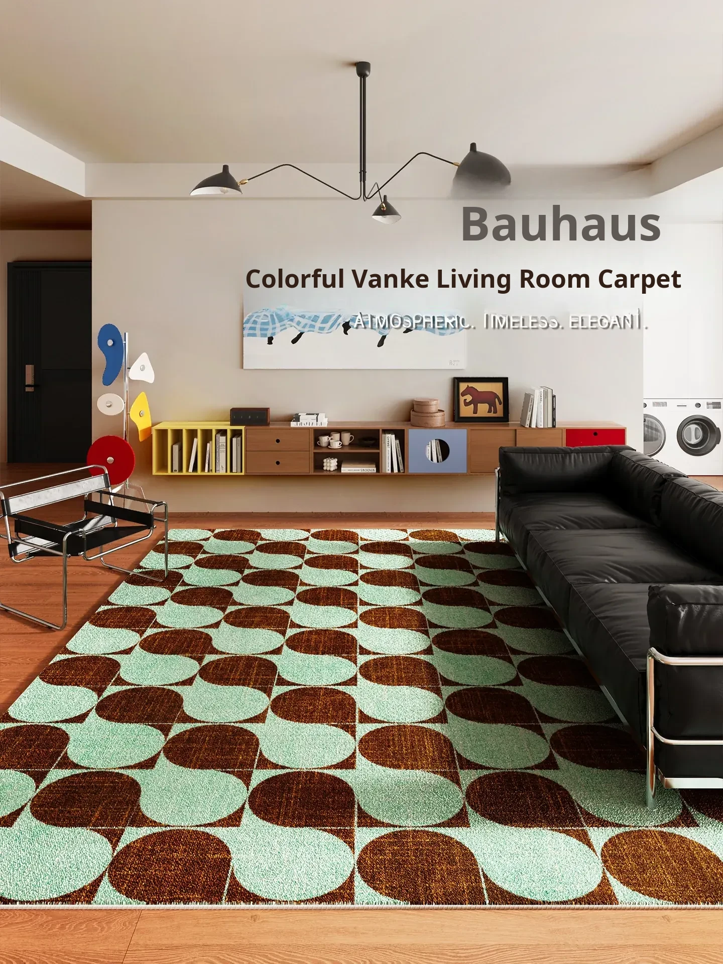 Bauhaus Style Area Rug - Vintage Mint Green Living Room Sofa Mat, Retro Bedroom Bedside Carpet, Easy-Clean, Non-Slip, Perfect for Effortless Elegance!