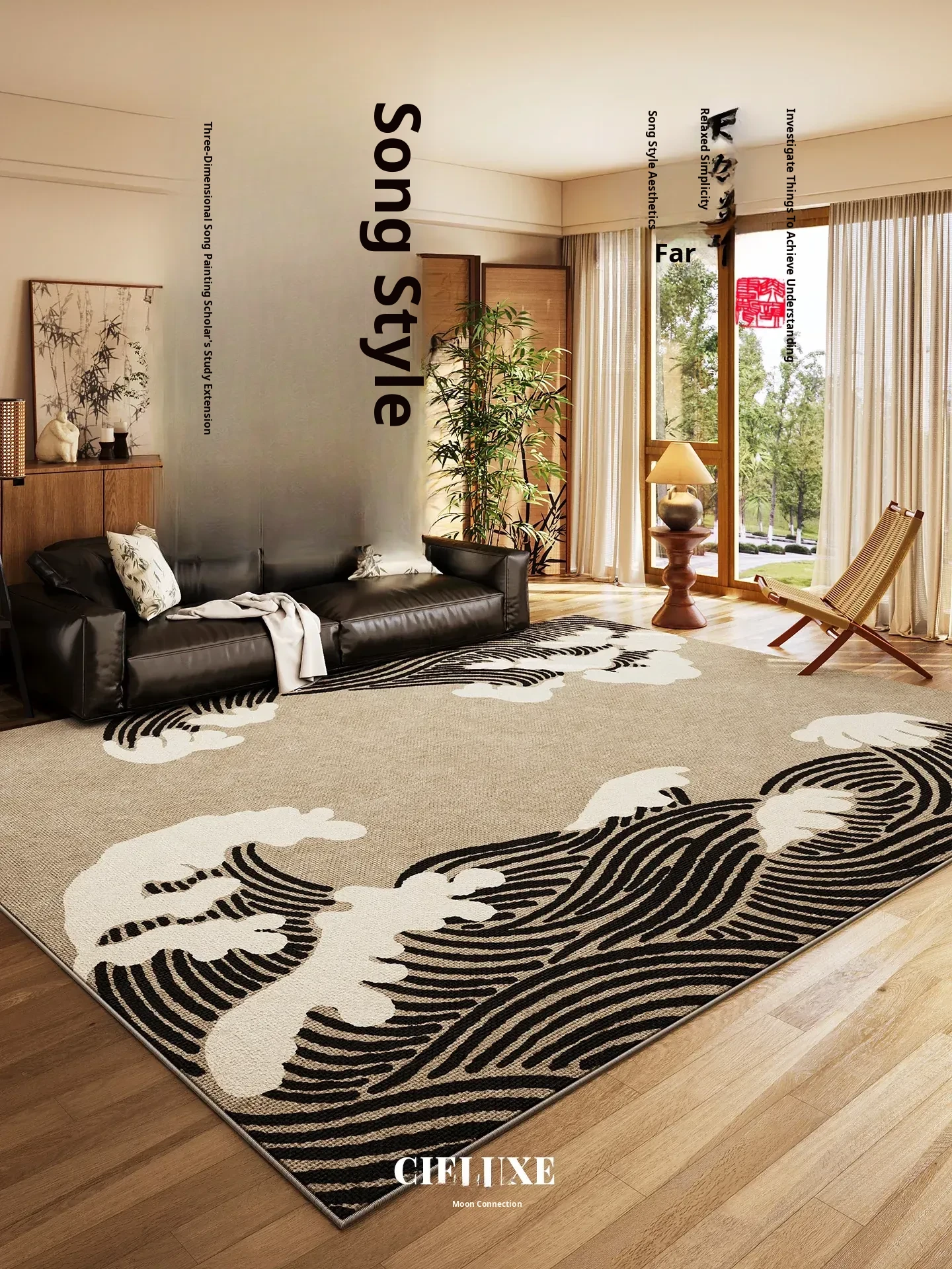Vintage Area Rug for Living Room - Washable, Non-Slip Sofa Mat with Song Dynasty Aesthetic - Perfect for Bedroom or Bedside Use, Easy to Clean