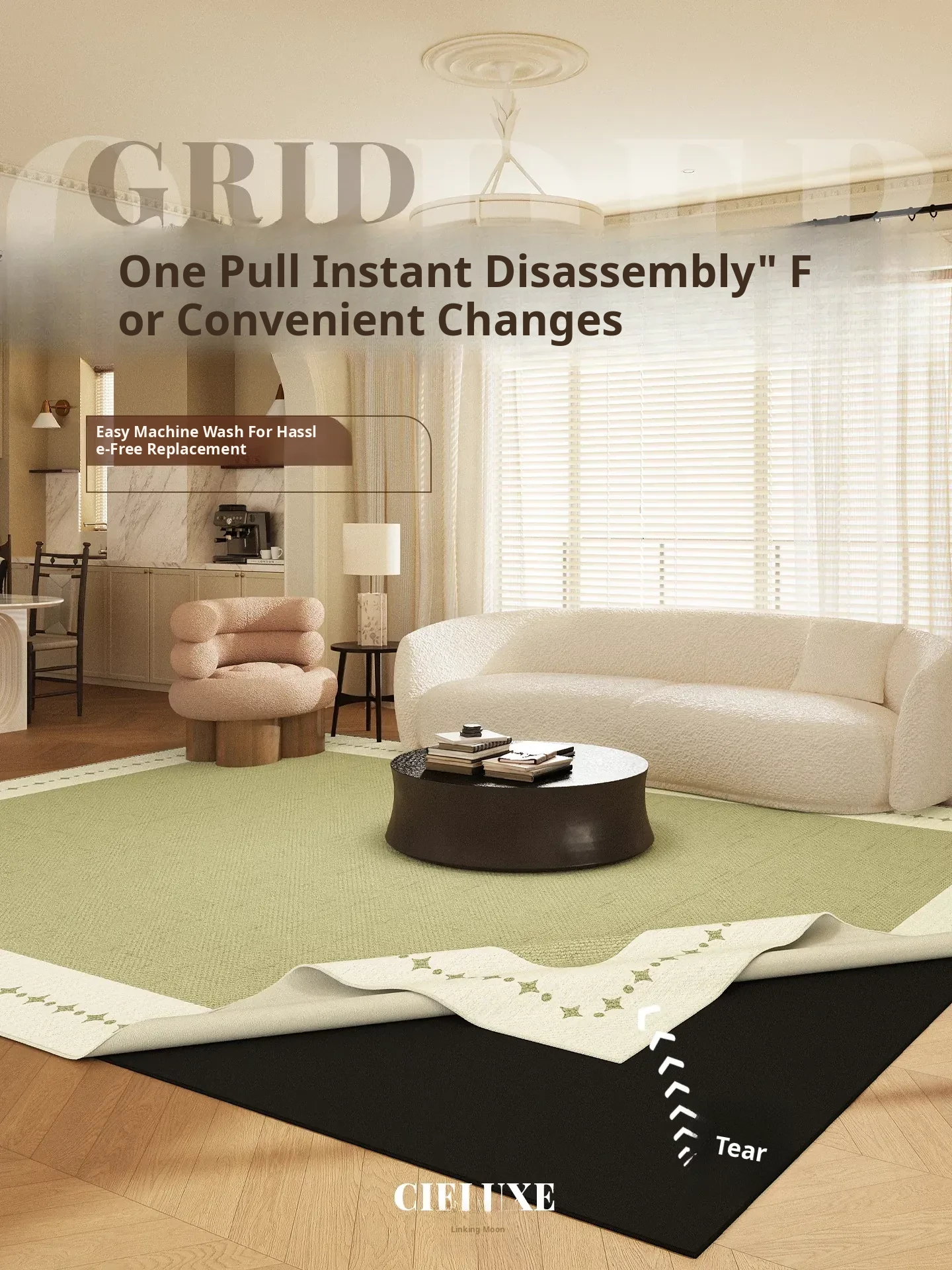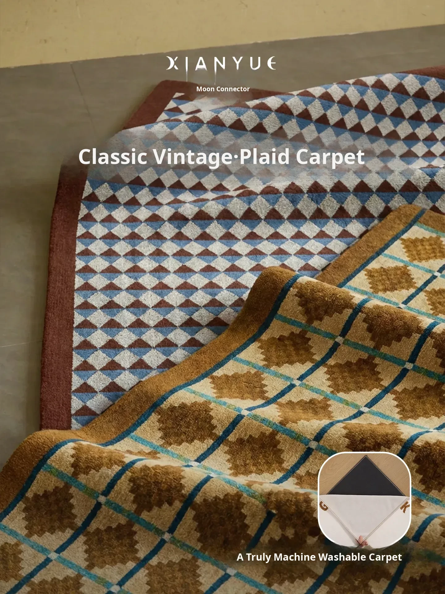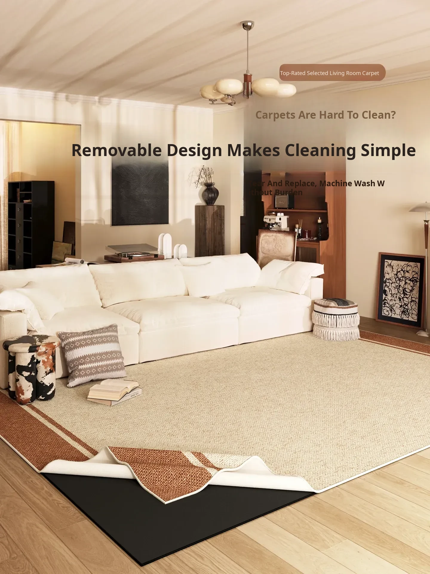 Vintage Plush Area Rug for Living Room - Double-layer, Removable, Machine Washable, Easy-care Sofa Mat, Retro Style, Perfect for Effortless Home Décor