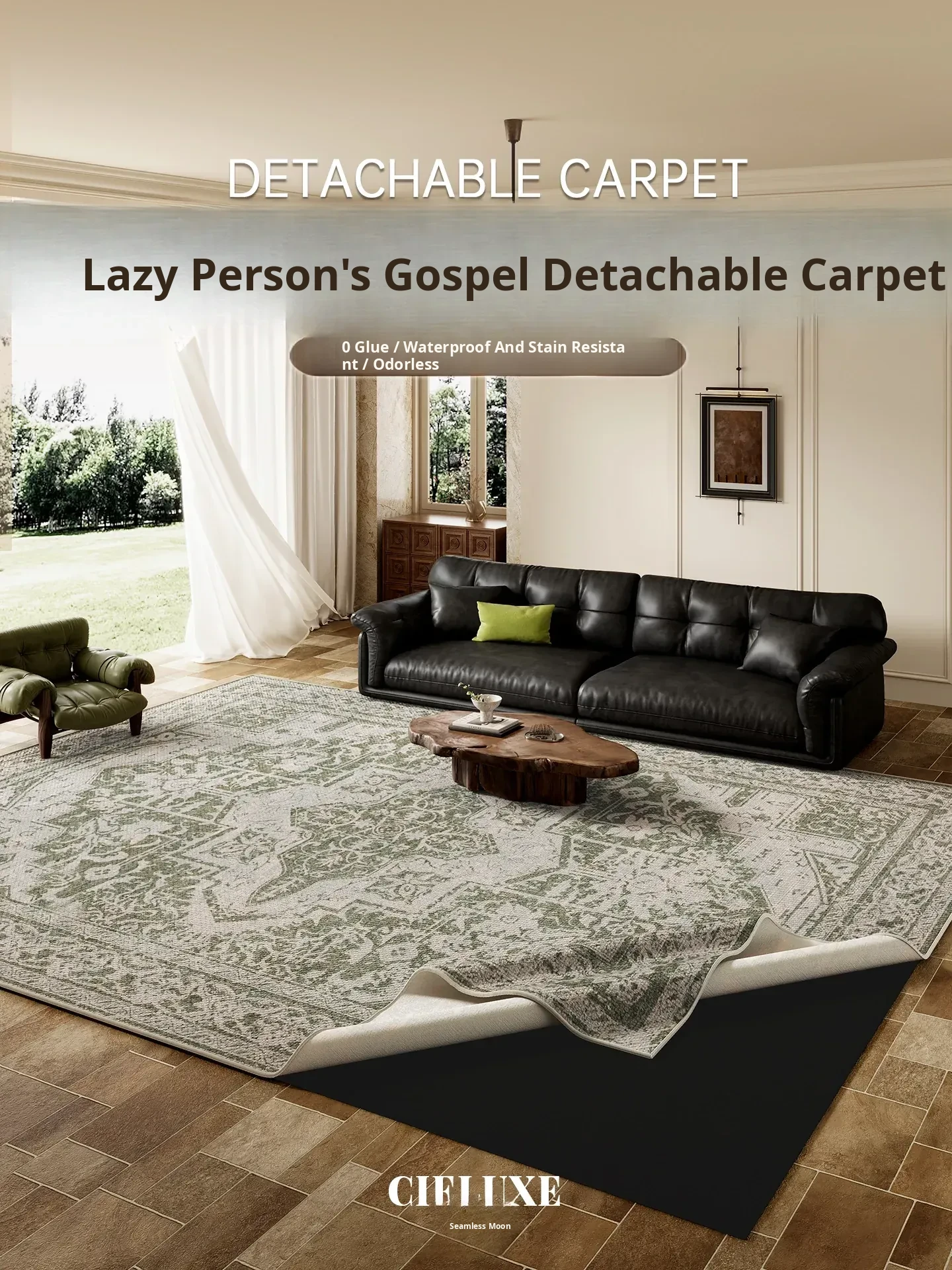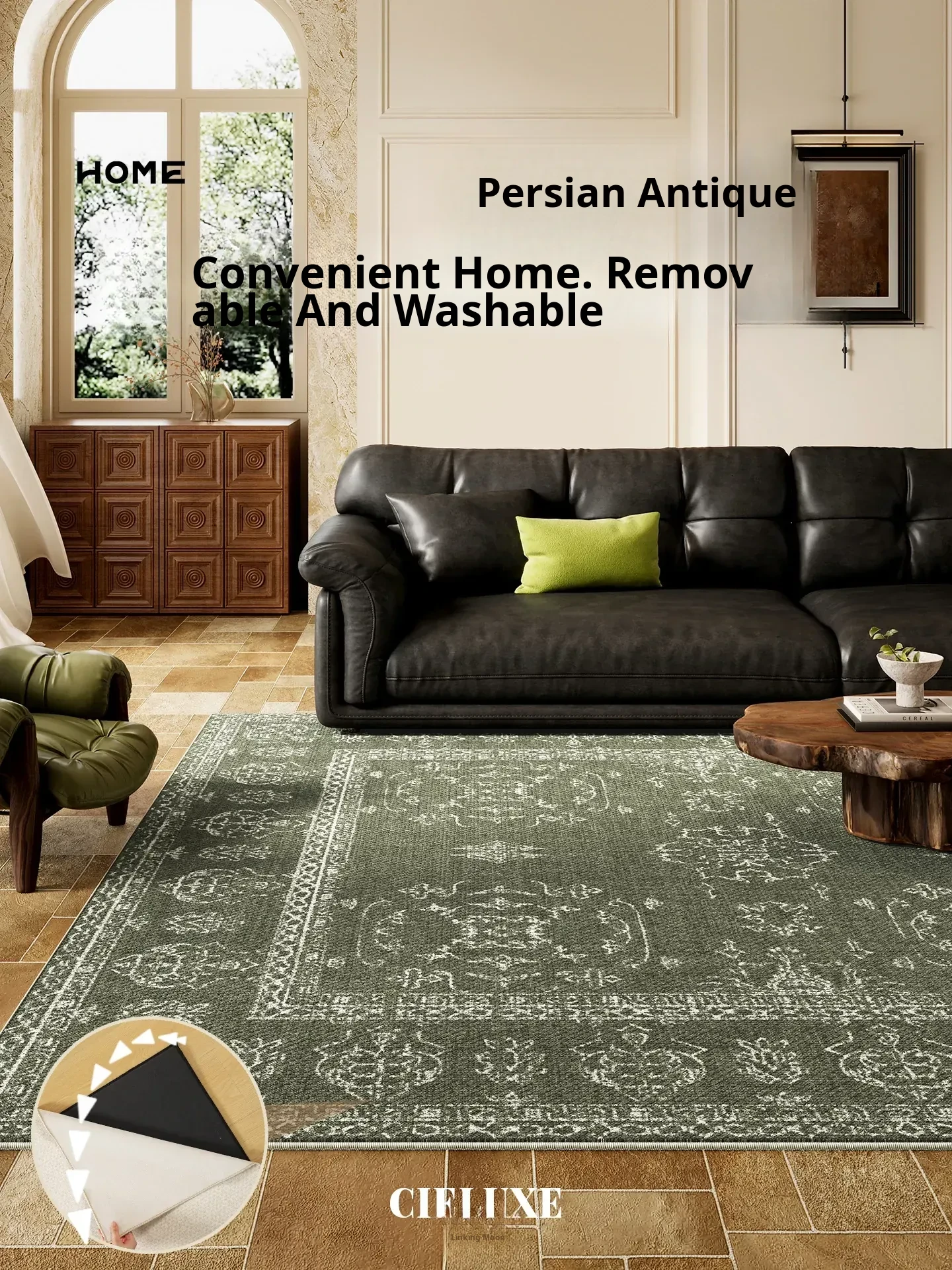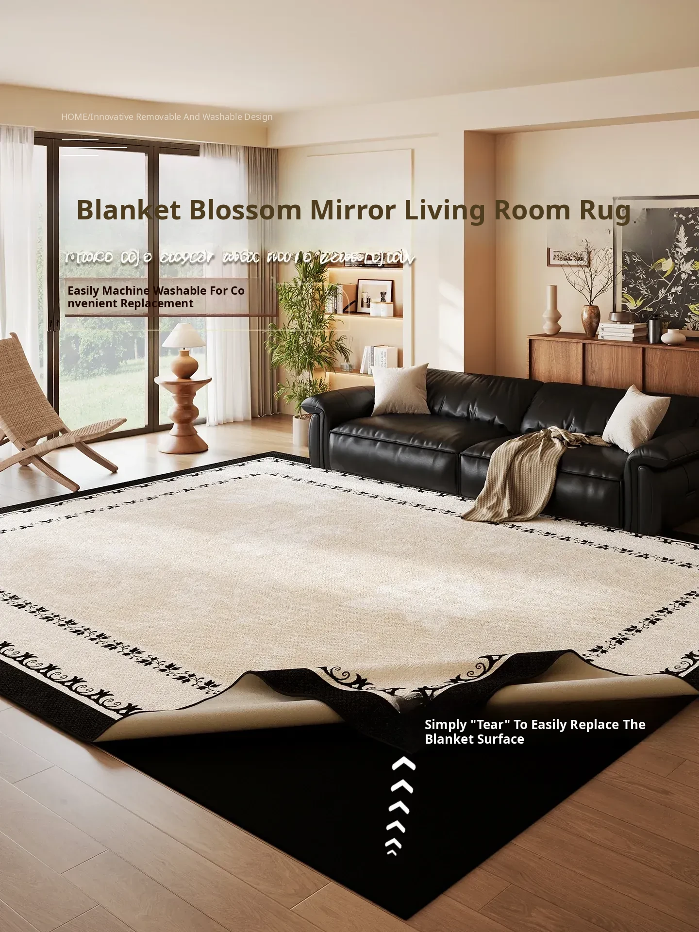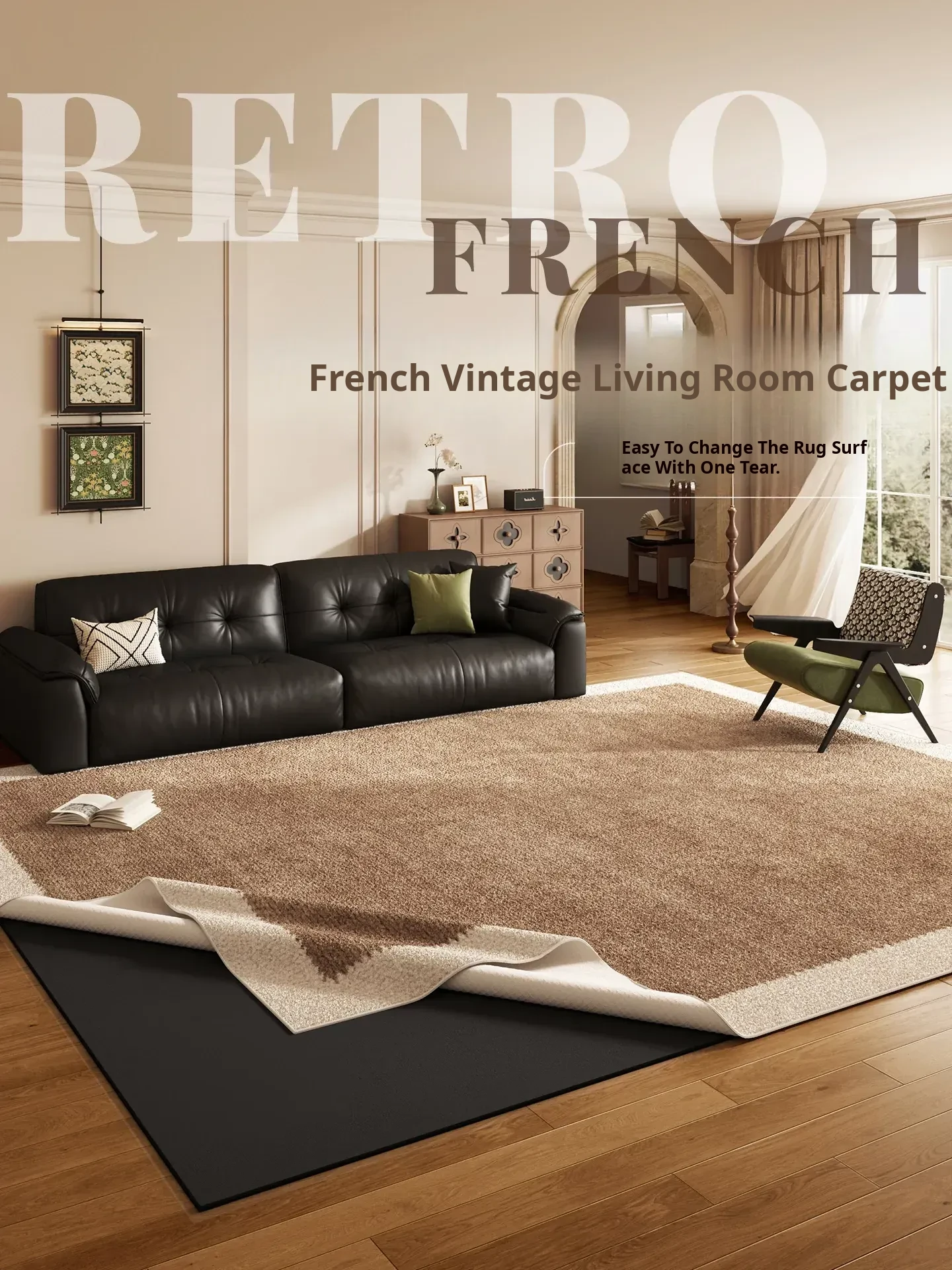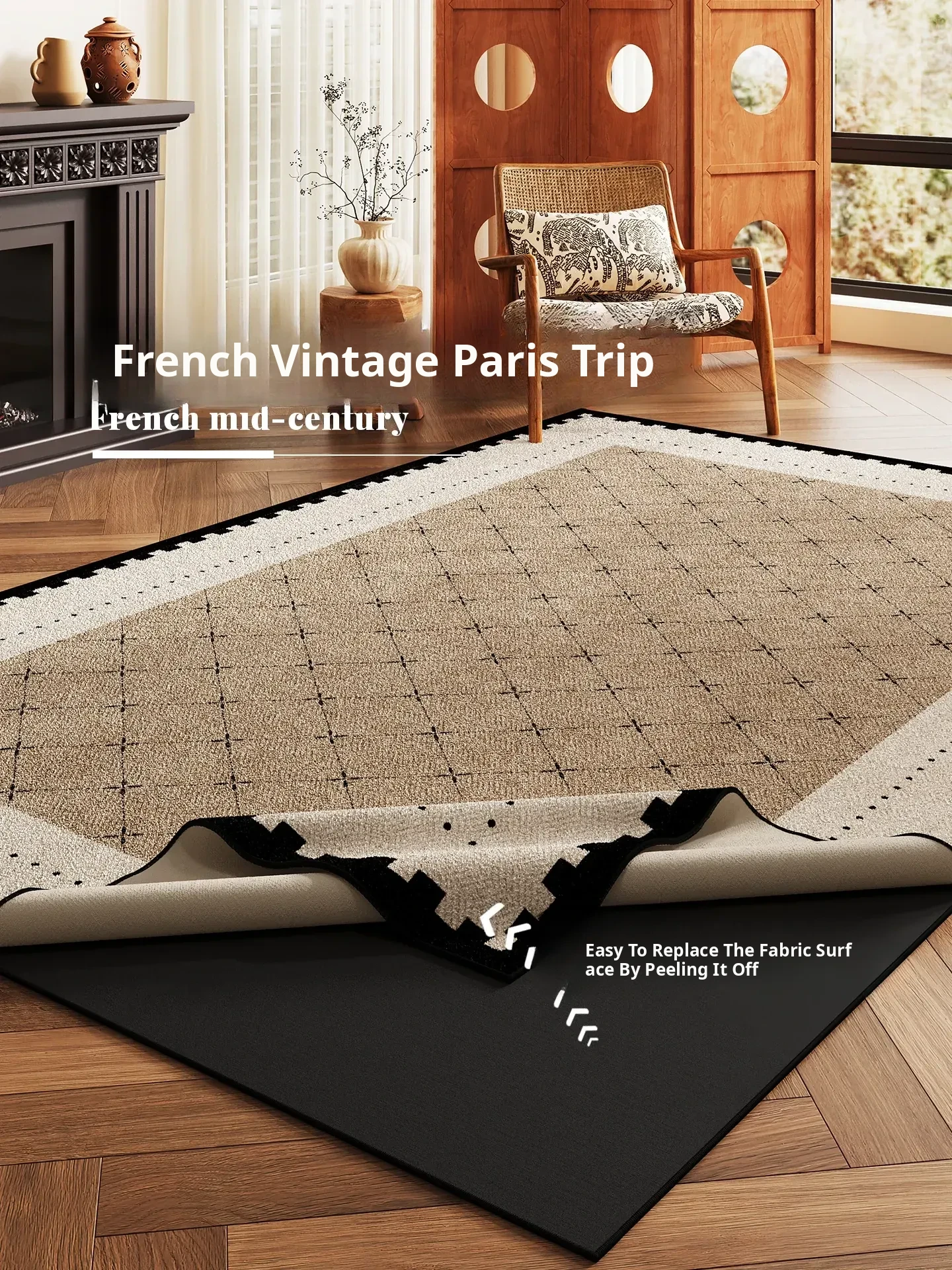 Vintage Style Washable Carpet for Living Room – Removable Double Layer Sofa Mat, French Design, Machine Washable and Easy to Clean! Perfect for Enhancing Your Home Décor.