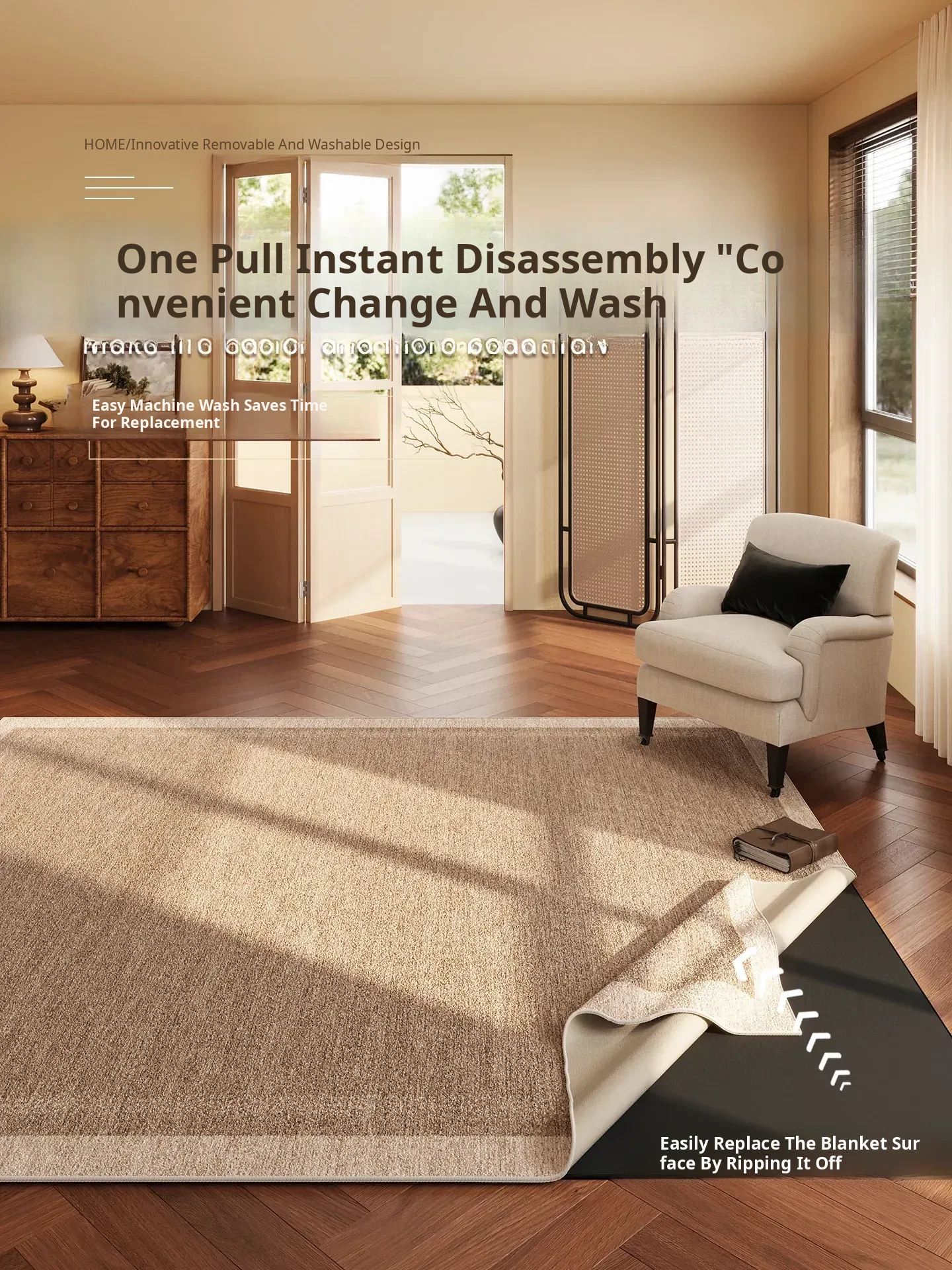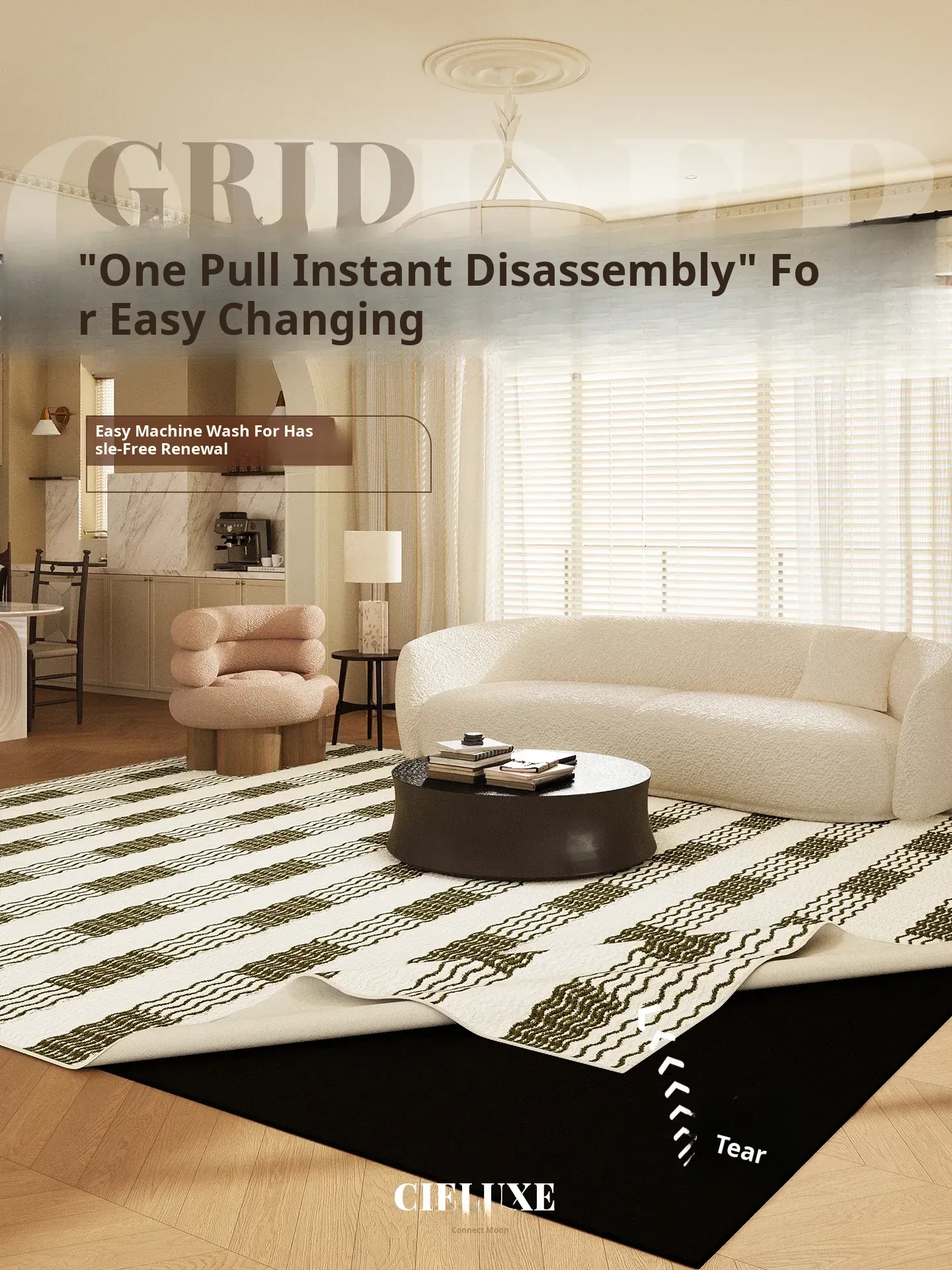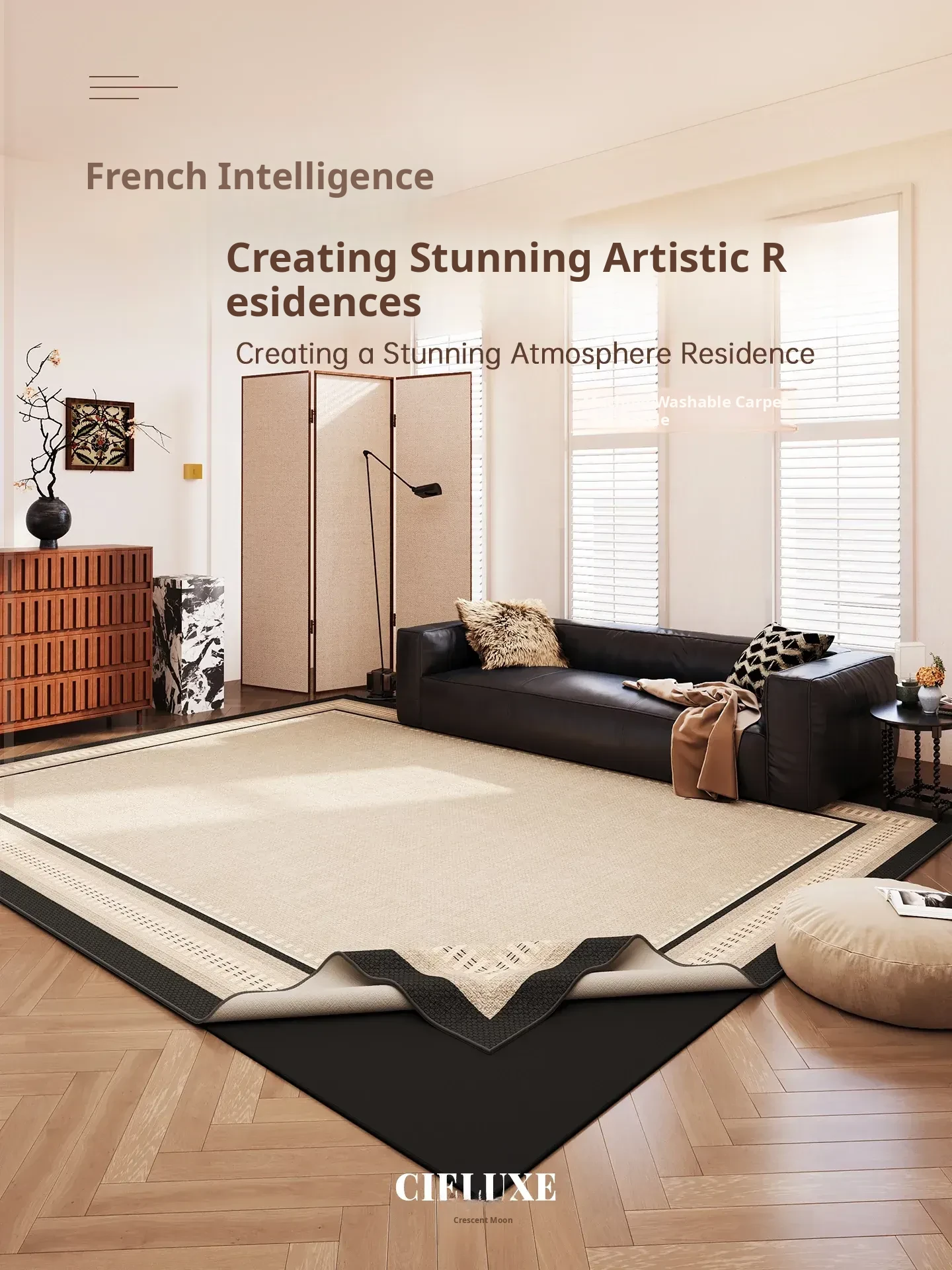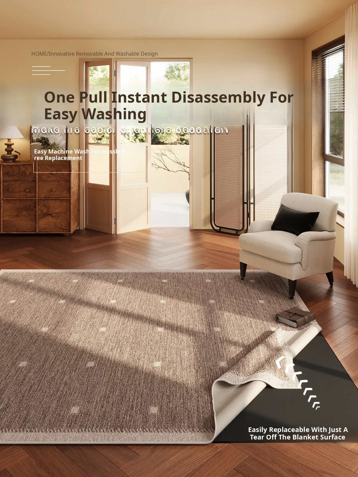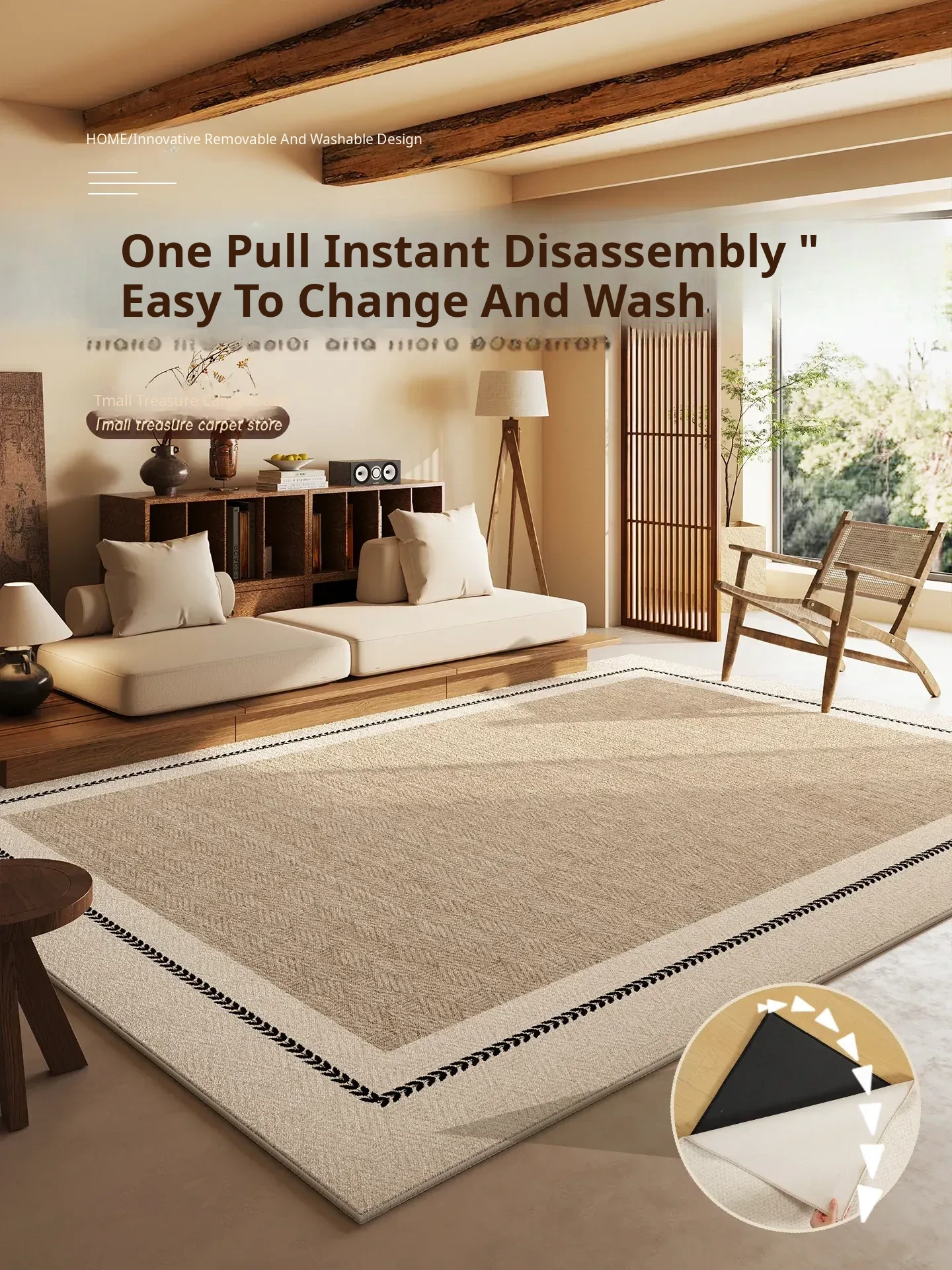 Vintage Style Washable Carpet for Living Room – Removable Double Layer Sofa Mat, French Design, Machine Washable and Easy to Clean! Perfect for Enhancing Your Home Décor.
