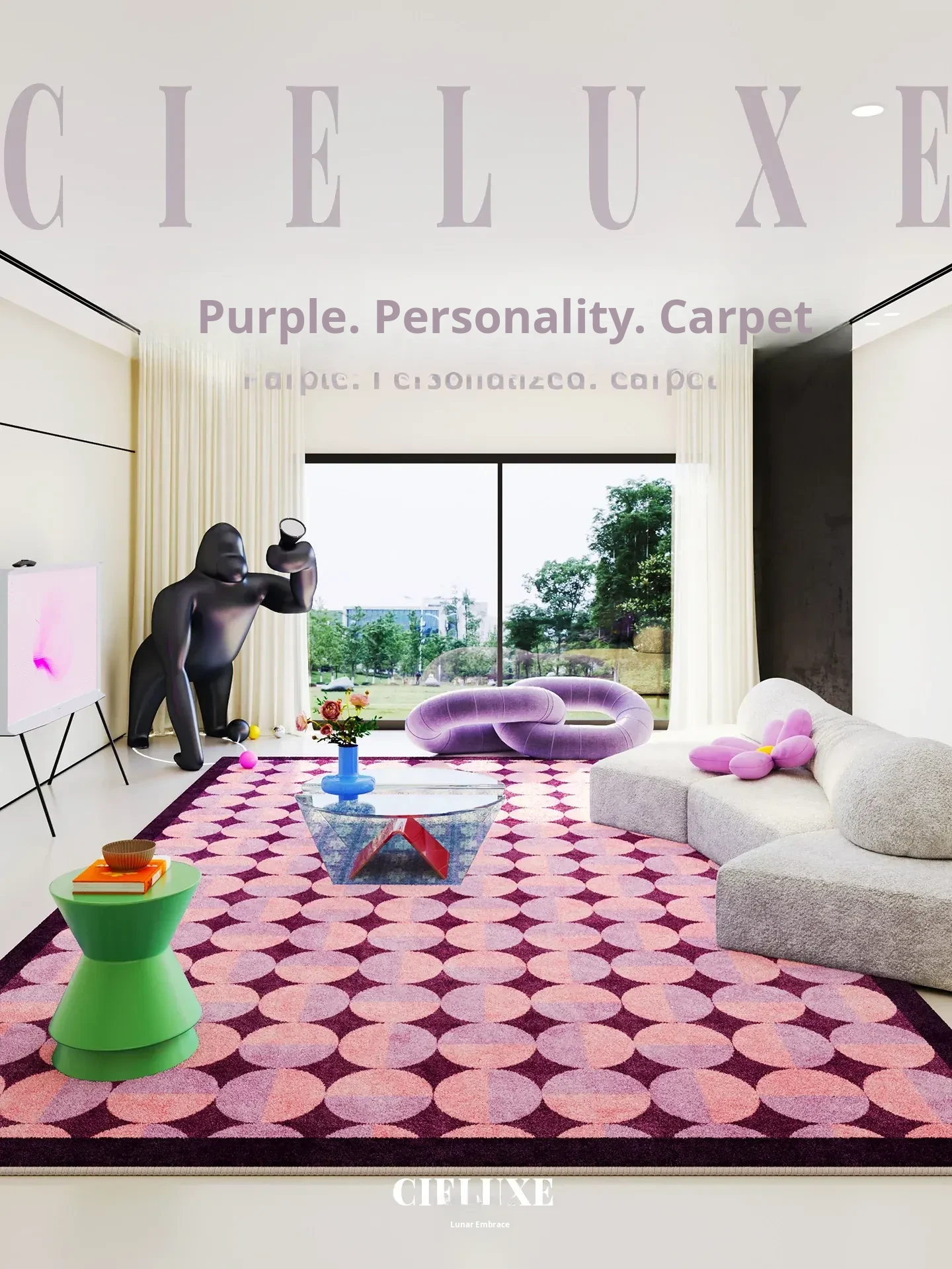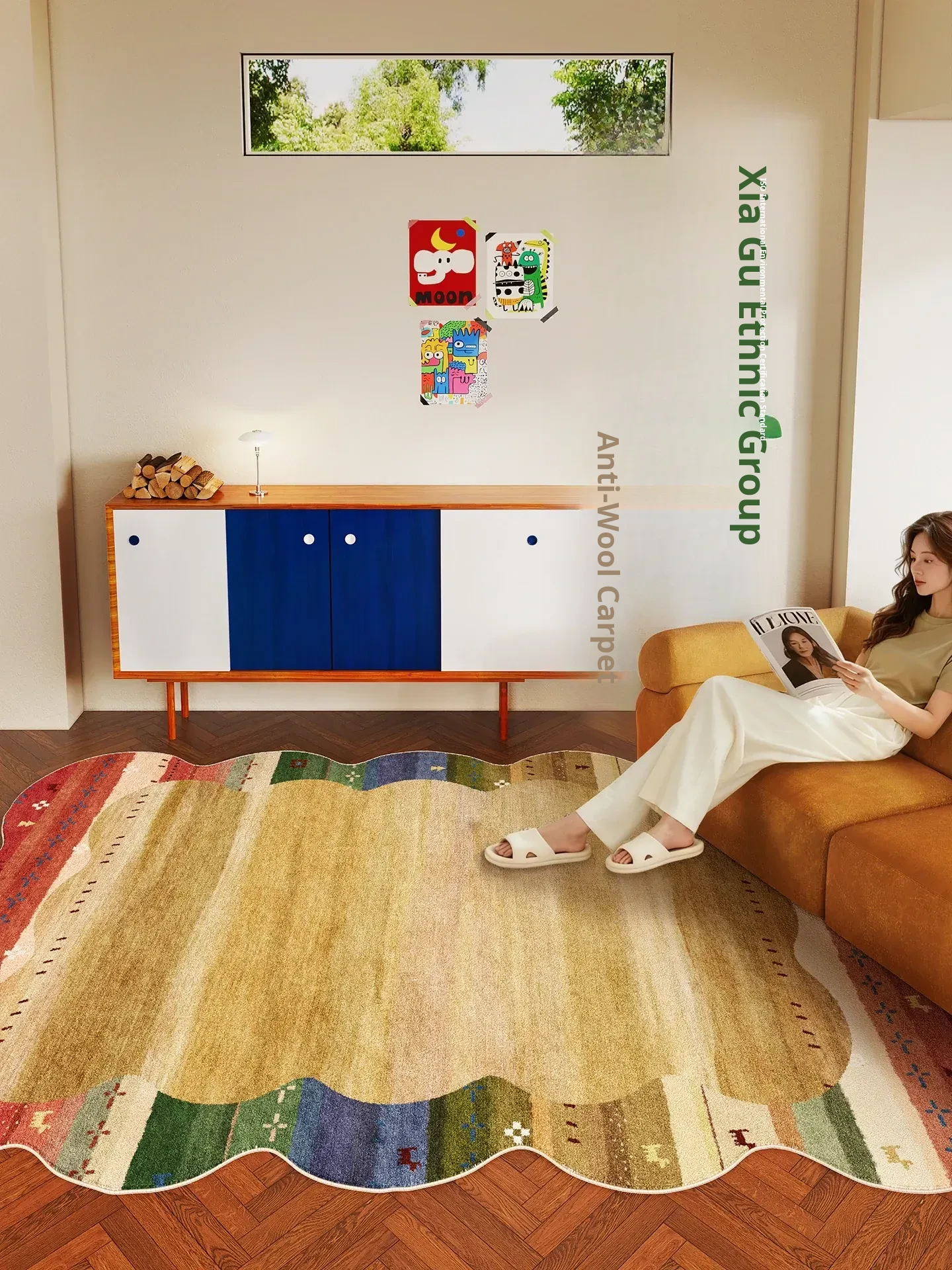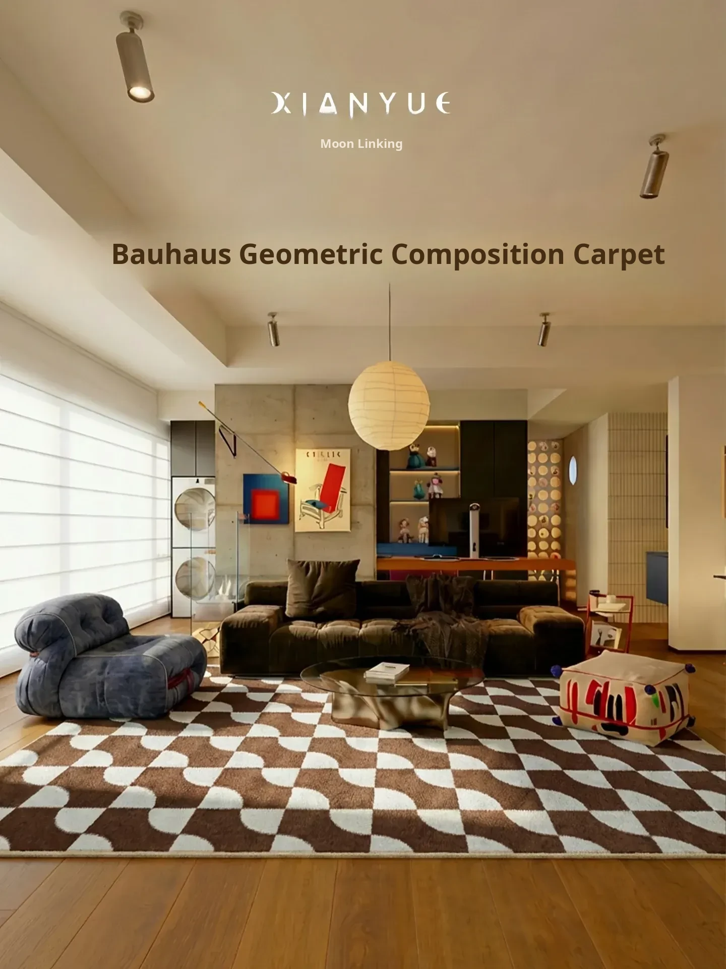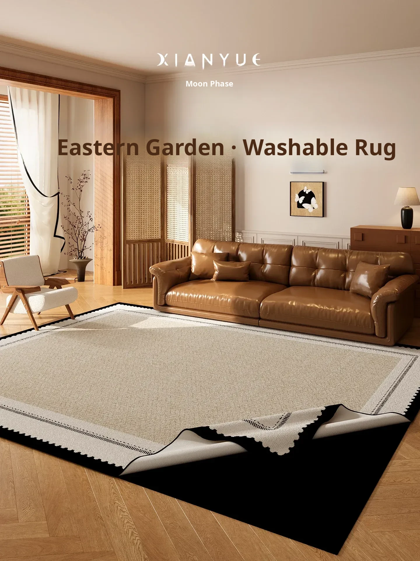 2026 New Moon Phase Carpet for Living Room - Washable Sofa Mat with Vintage Design, Removable and Machine Washable, Ideal for Cozy Spaces