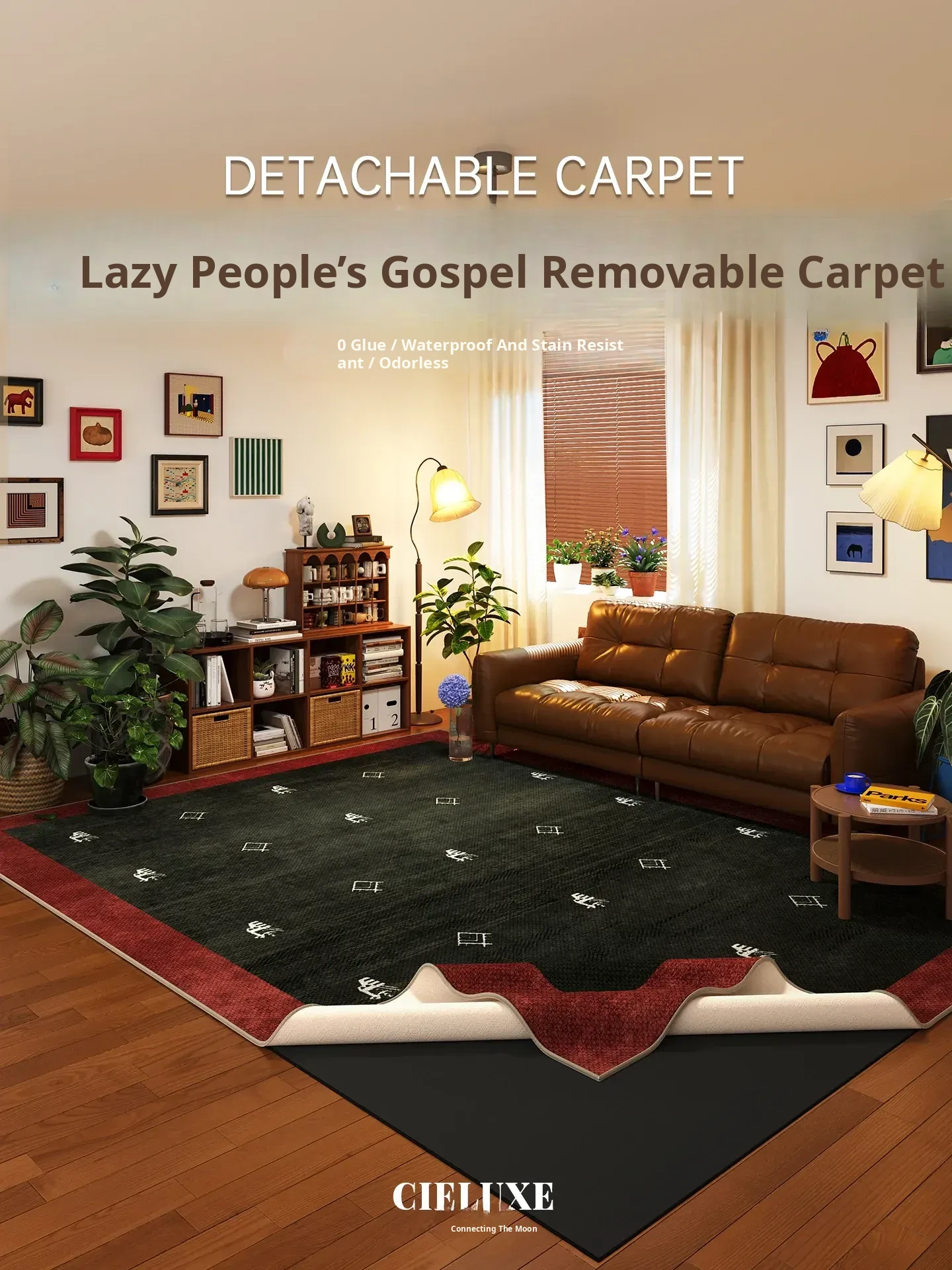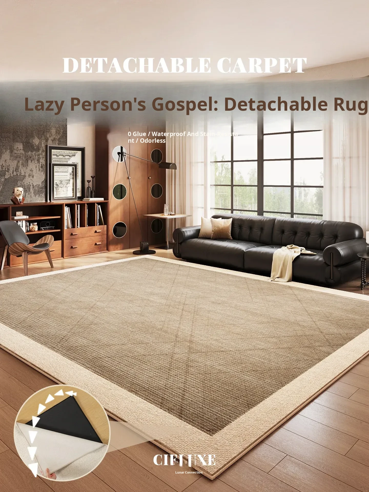 2026 New Brown Living Room Carpet - Machine Washable Sofa Mat, Vintage Double-Layer Removable and Washable Area Rug, Perfect for Home Décor