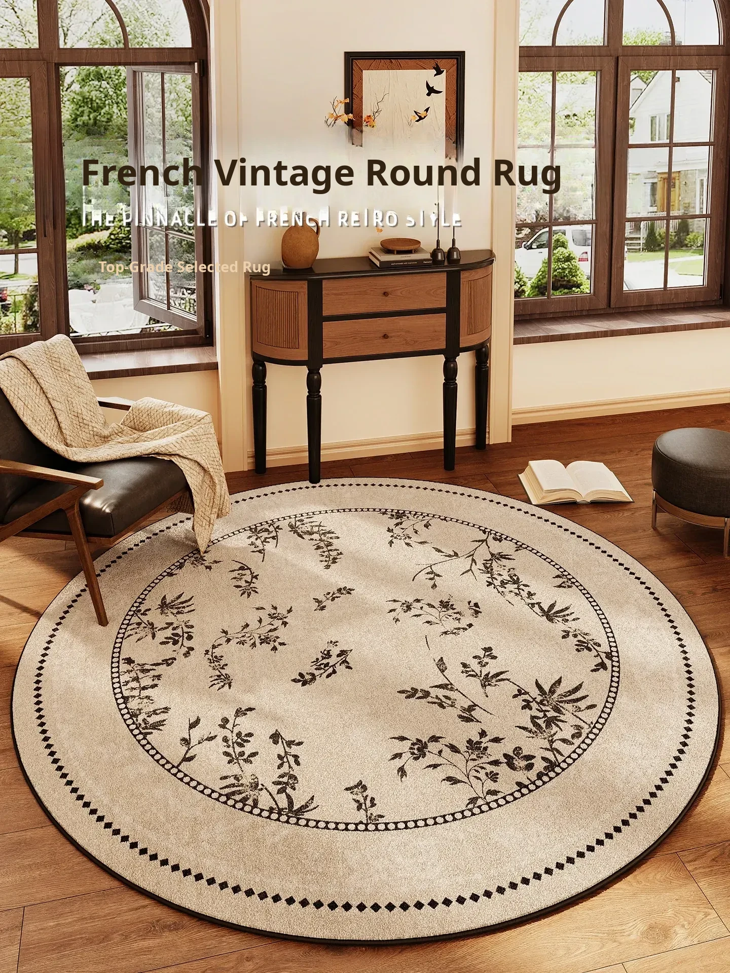 Vintage Round Carpet Chair Cushion - Retro Living Room Sofa Mat, French Waterproof and Stain-Resistant Floor Mat for Bedroom - Stylish and Functional Home Decor