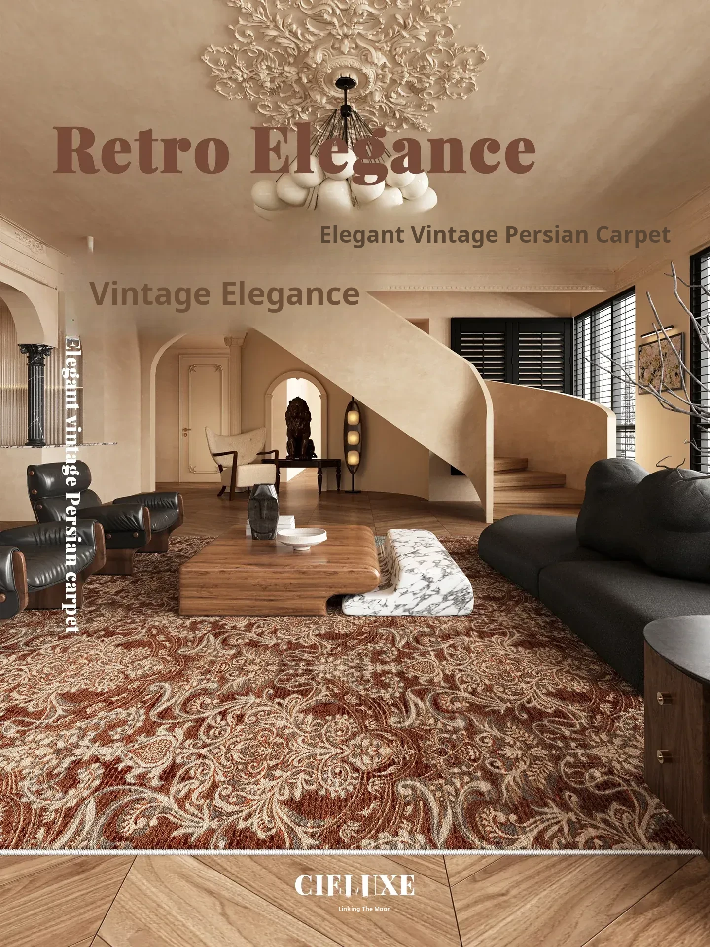Milad Luxury Living Room Carpet 2026 Collection - Elegant Retro French Persian Area Rug for Bedroom and Living Space
