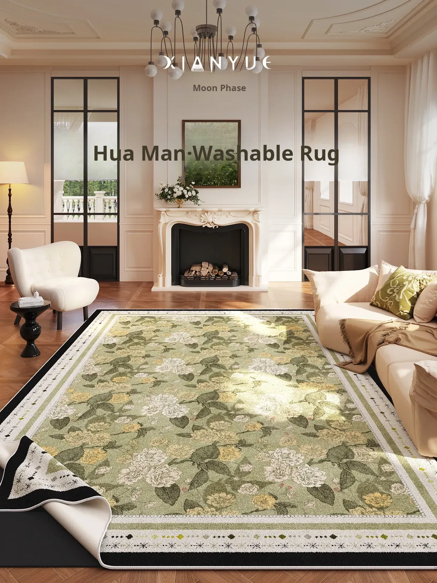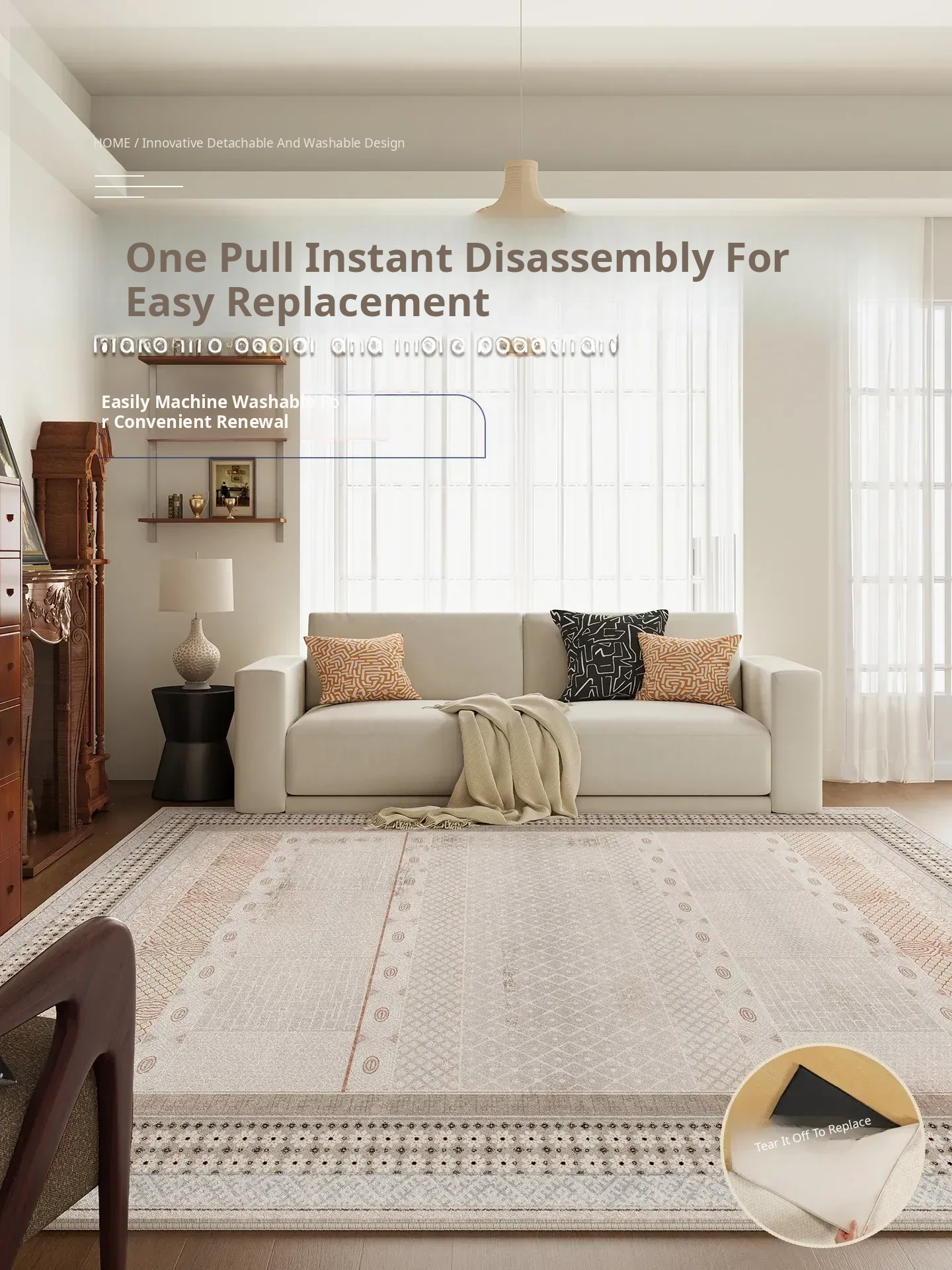 Elegant Removable Washable Carpet for Living Room - French Style Machine Washable Sofa Mat, Chic Bedroom Bedside Rug, Perfect for Modern Décor