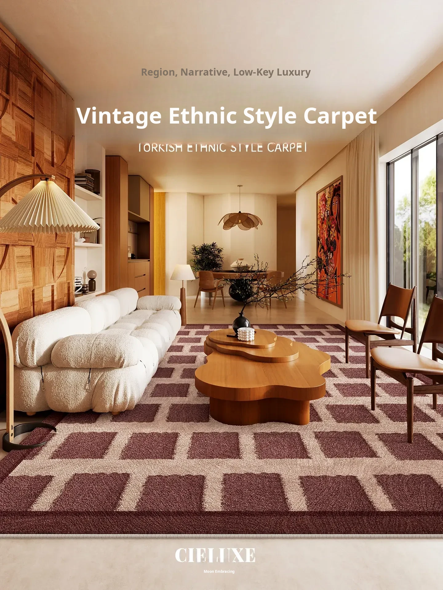 Vintage-Inspired Plush Carpet for Living Room - Retro Winter Sofa Mat, Easy-Care Bedroom Bedside Rug in Classic Old Money Style