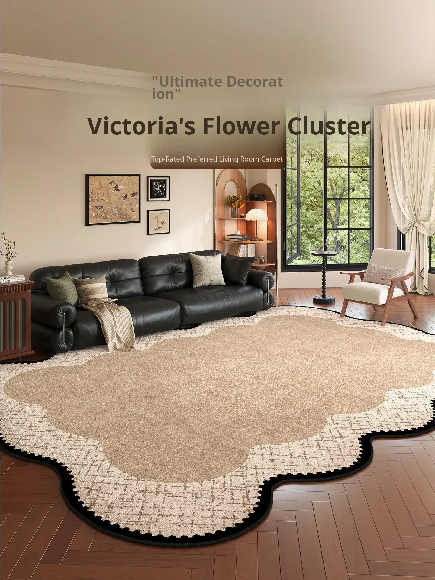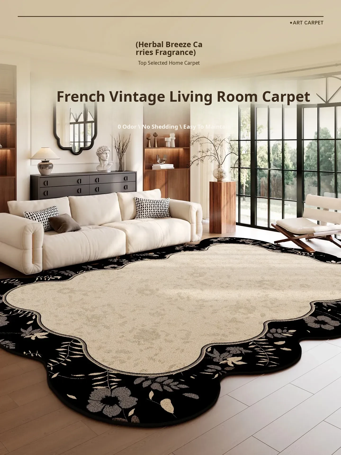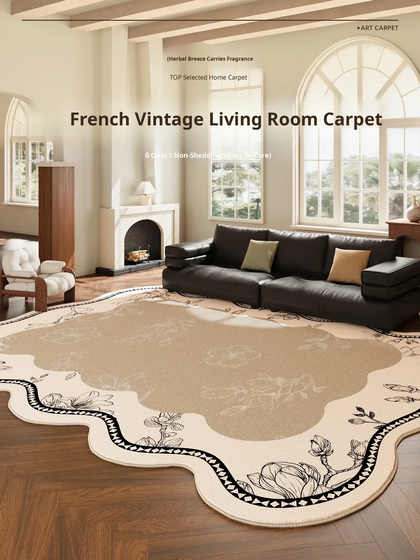 Vintage Plush Area Rug Cushion – French Style Waterproof and Stain-Resistant Irregular Sofa Mat for a Cozy Living Room