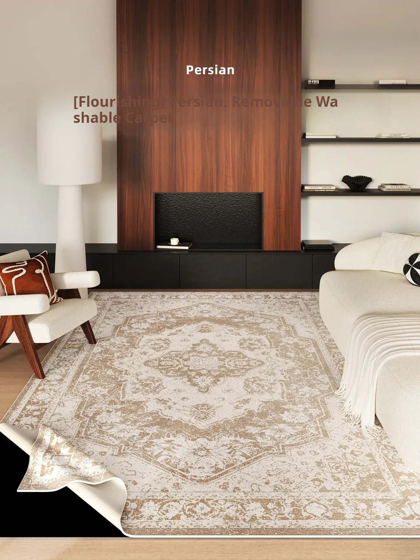 Vintage Double-Layer Removable Carpet - Washable Persian Style Area Rug for Living Room and Bedroom, Perfect for Sofa and Bedside Decor