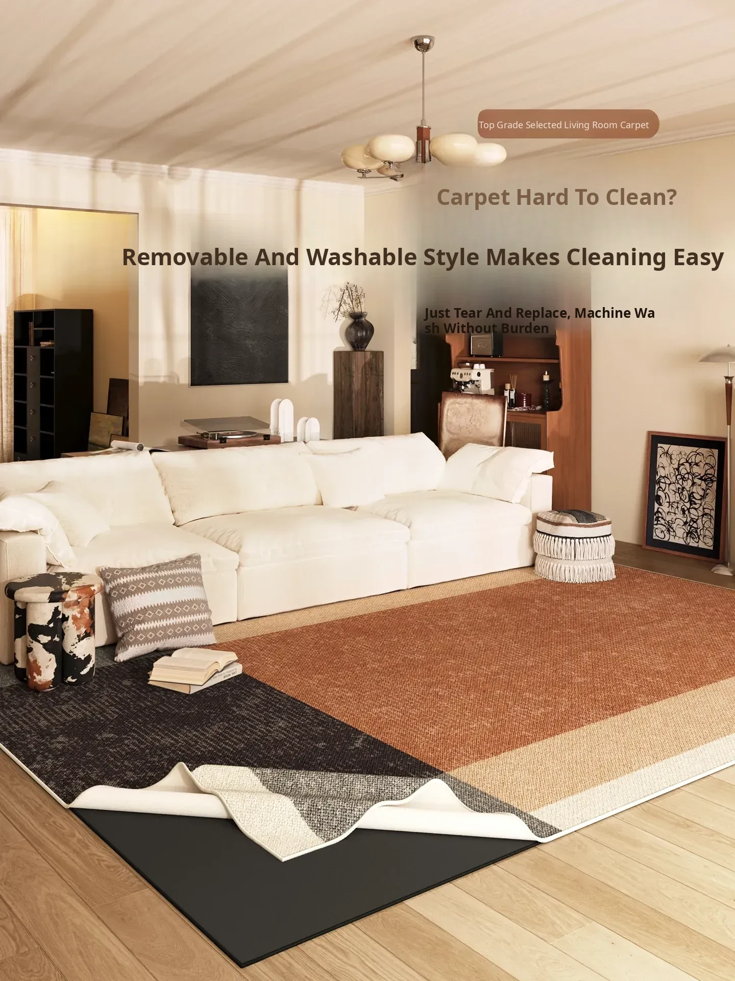 2026 New Double-Layer Washable Area Rug - Removable Carpet for Living Room and Bedroom, Machine-Washable Sofa Mat and Side Bed Mat, Easy to Clean and Maintain