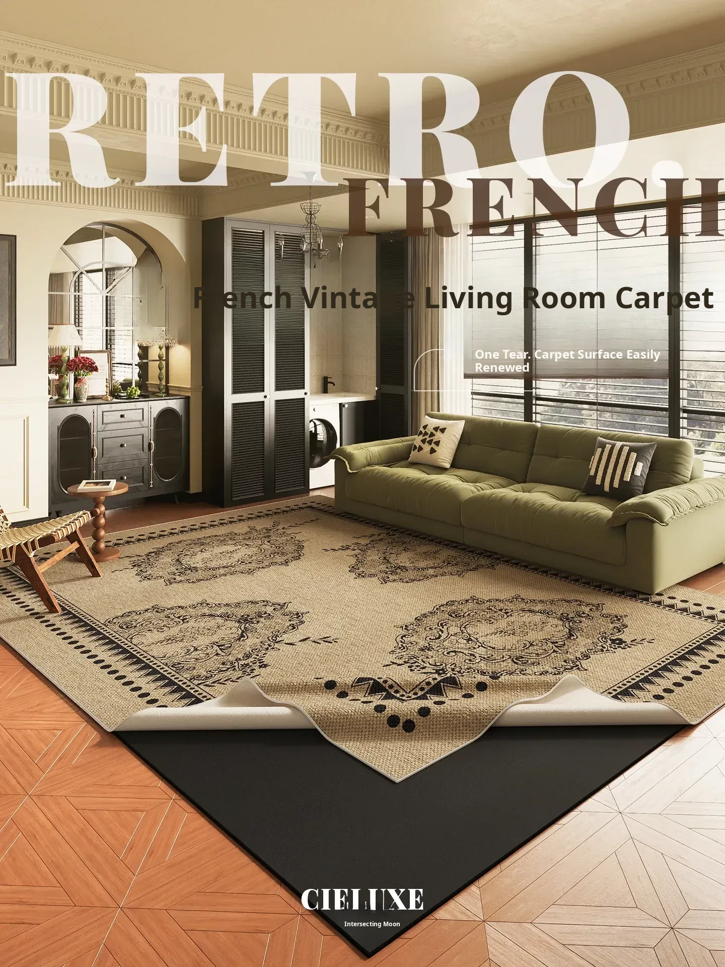 French Vintage Area Rug for Living Room - 2026 New Waterproof and Stain-Resistant Indoor Mat, Chic Retro Style, Luxury Quality, Cat Scratch Resistant