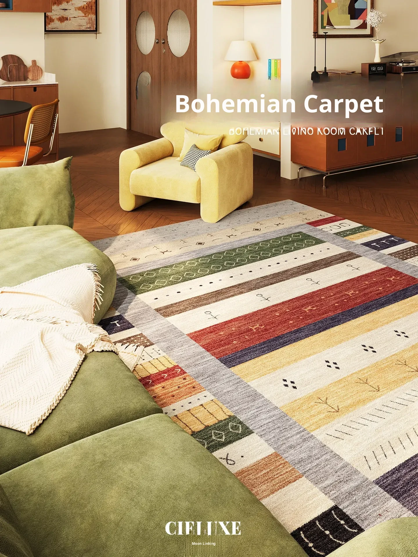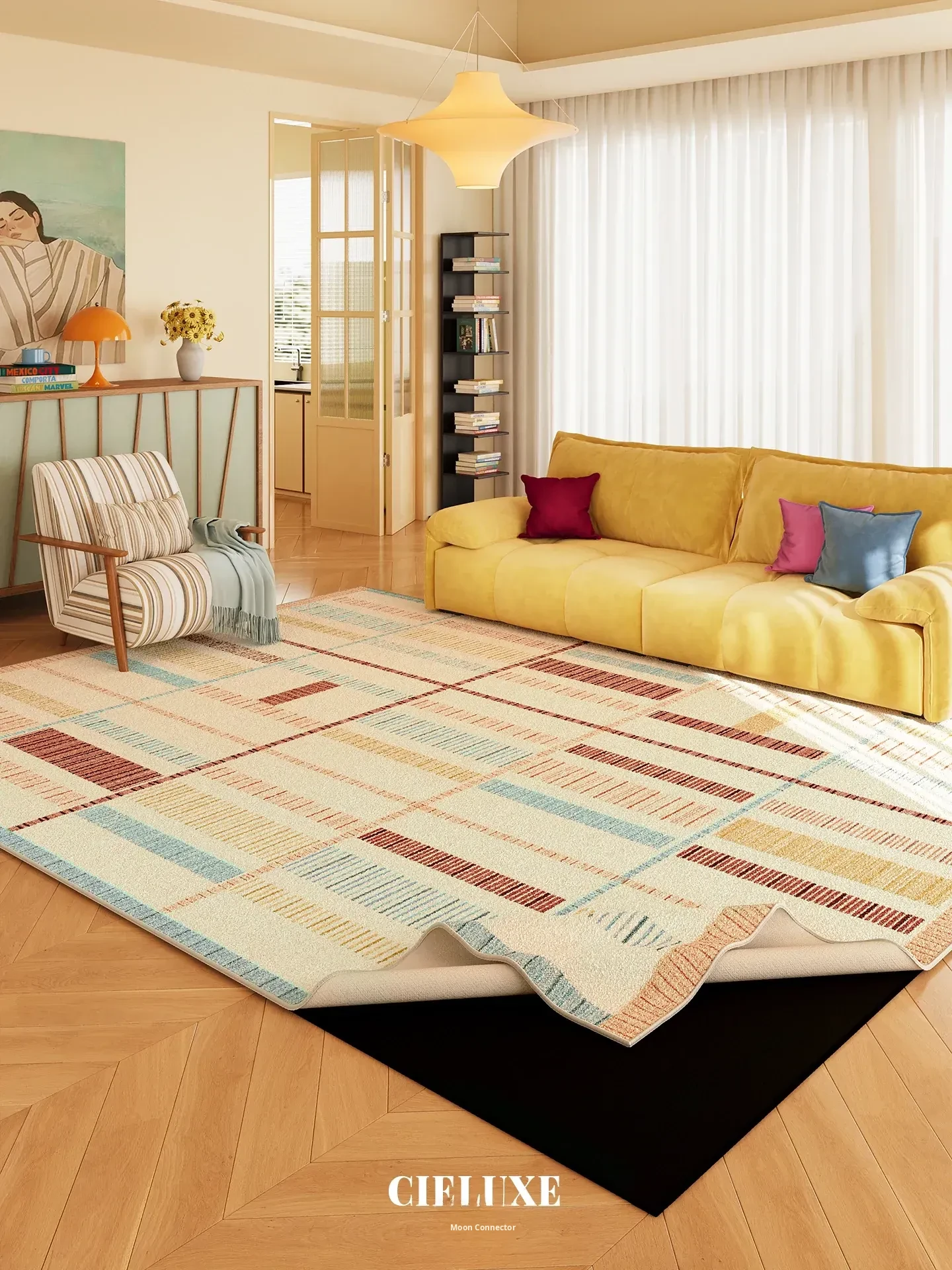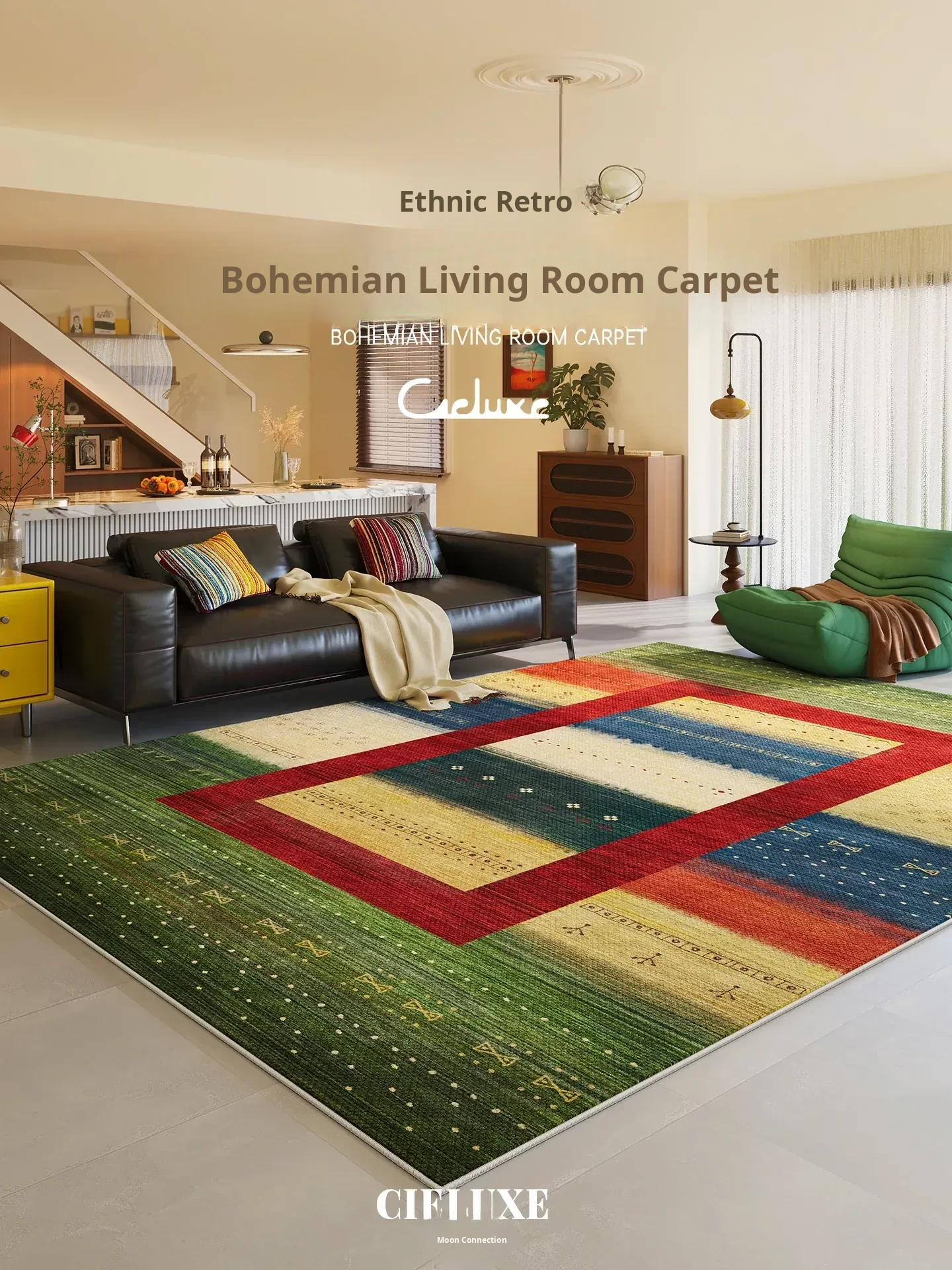 Vintage Style Carpet for Living Room - Easy Clean, No Wash Required! Perfect Retro Sofa Mat for Home Décor, Ideal for Study and Bedroom as a Cozy Bedside Rug.