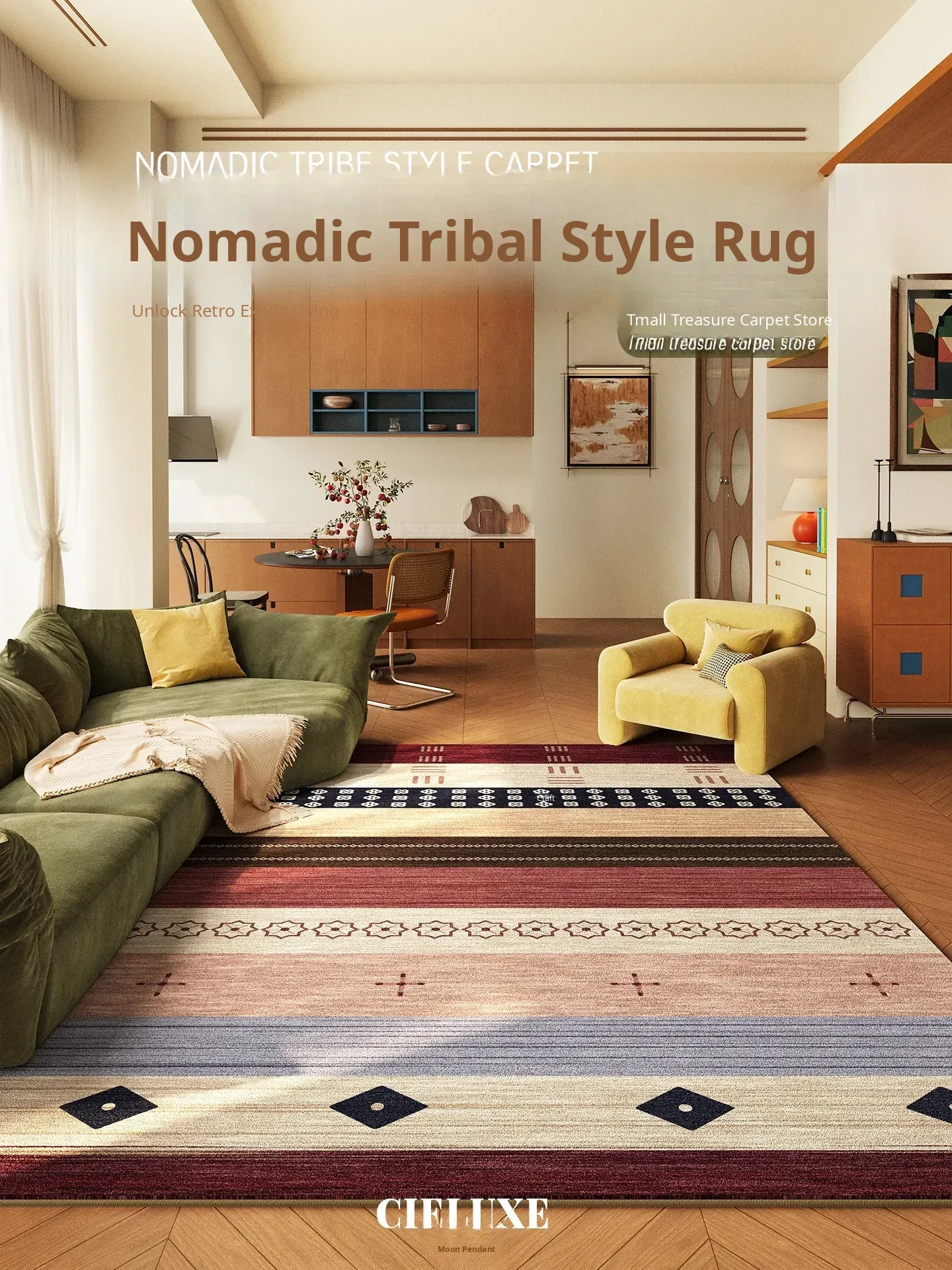 Vintage Ethnic Style Area Rug - Non-Washable, Easy-Clean Sofa Mat for Living Room, Chic Luxury Bedroom Carpet, Perfect for Bedside Use