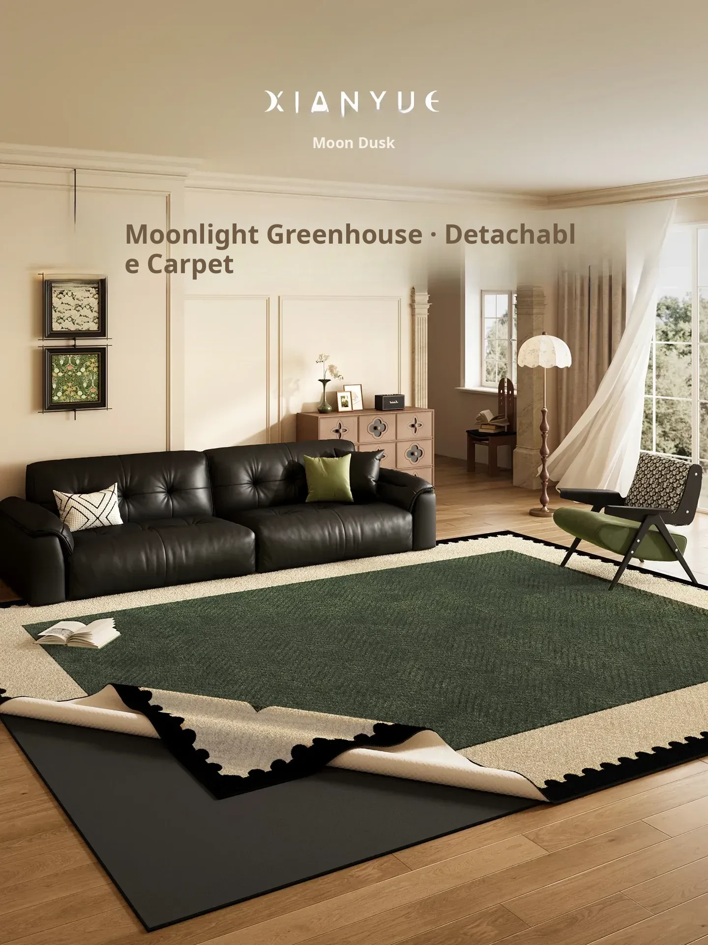 French Green Carpet Sofa Mat - Vintage Chic Luxury Area Rug for Living Room, Retro Style Bedroom Bedside Carpet