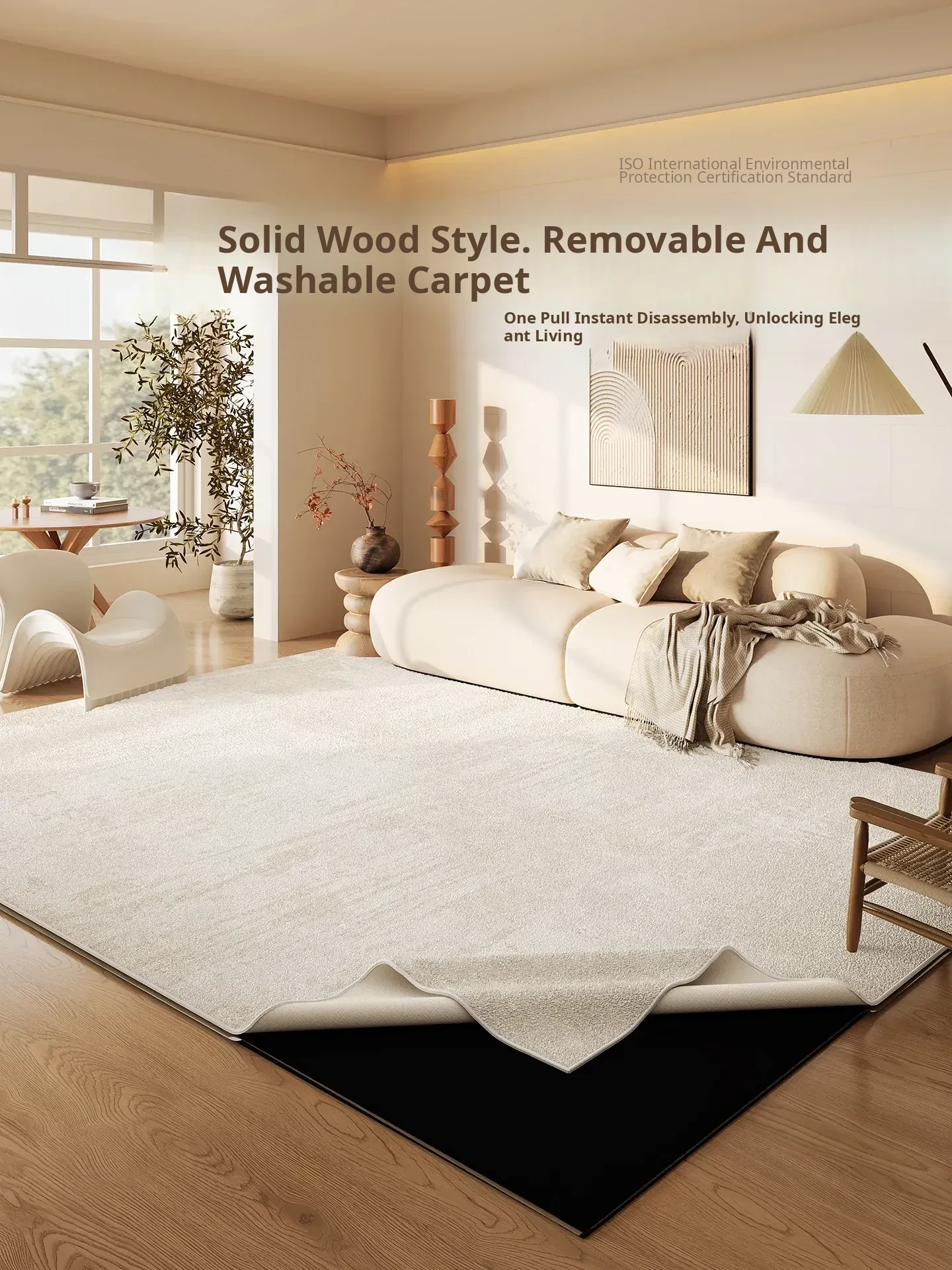 Dopamine Cream Color Living Room Carpet - Double-layer Removable and Washable Area Rug, Ideal for Bedroom and Bedside Use, Machine Washable for Easy Care