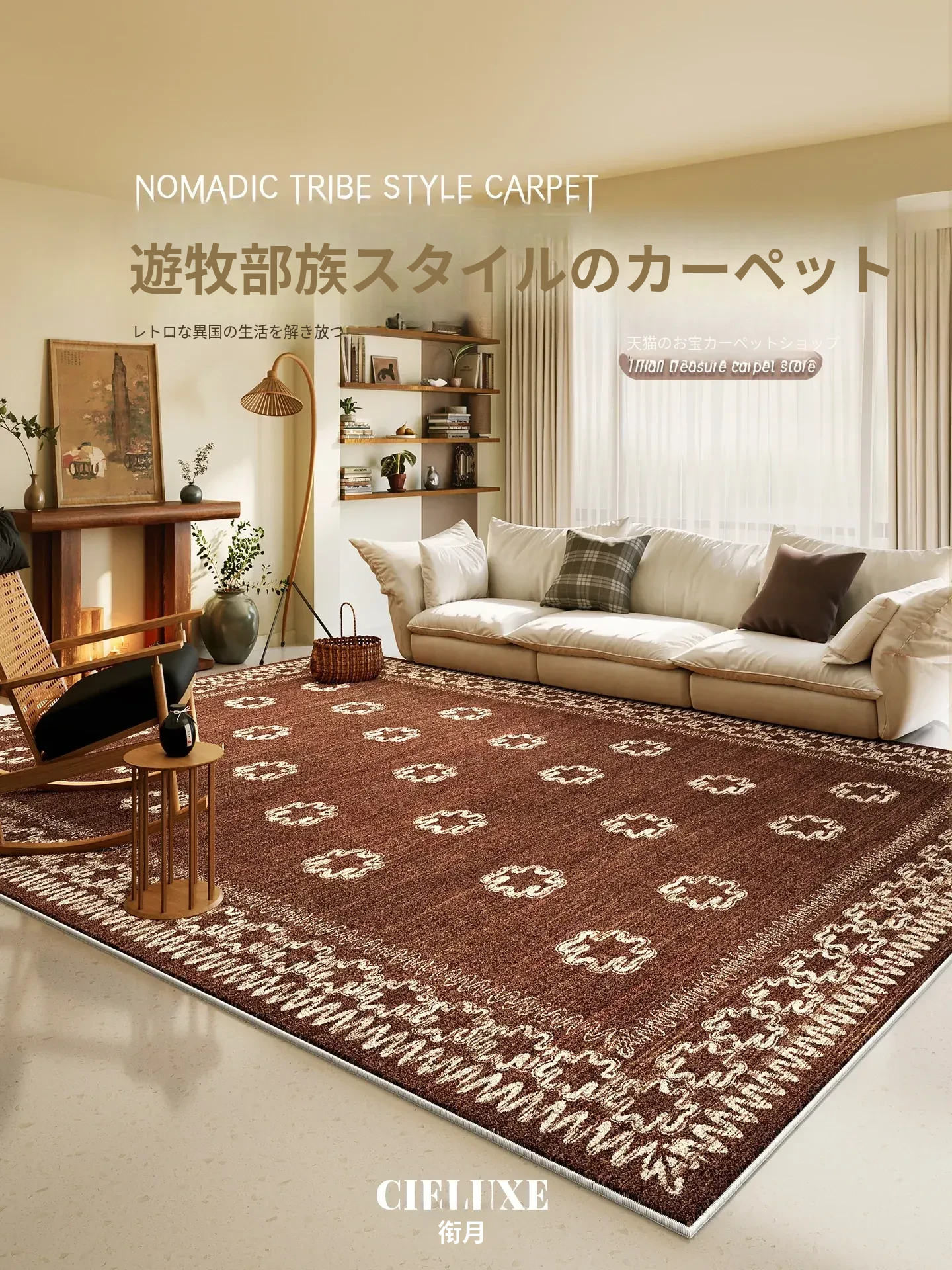 フレンチスタイルのカーペット!リビング用ソファやテーブルに最適なアンティーク風デザイン。洗濯機で洗える&取り外し可能、2026年新作ベッドサイドマット。お部屋をおしゃれに演出!