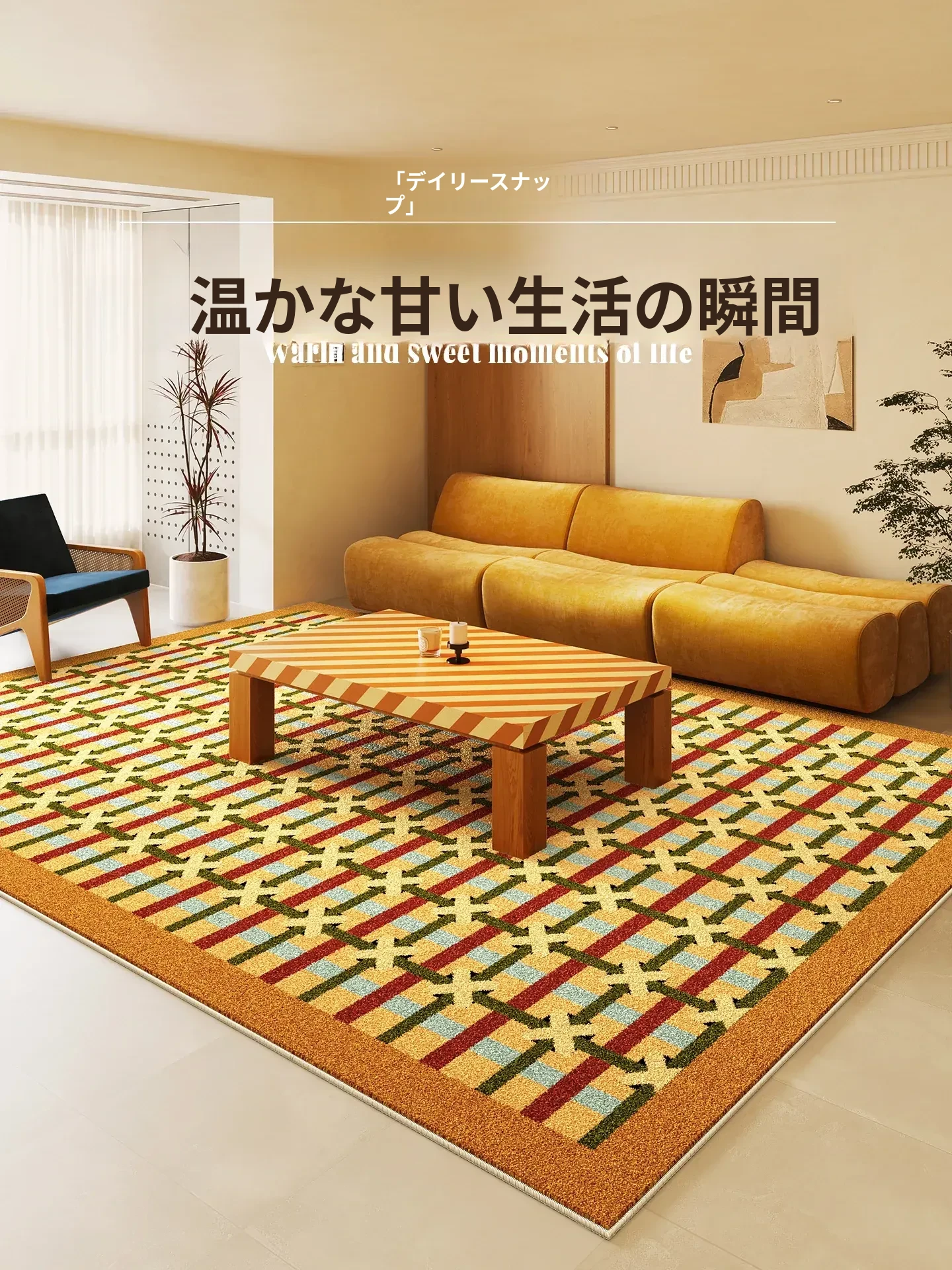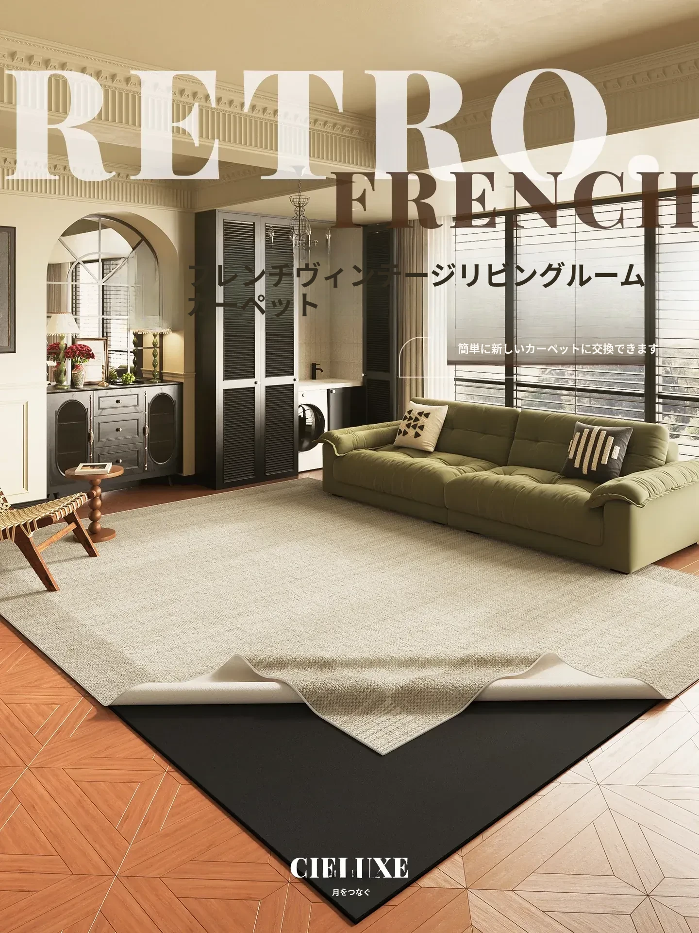 ヴィンテージ風リビング専用カーペット ソファやテーブルにぴったり!レトロなベッドサイドマット 軽やかな高級感が漂う防水・防汚フットマット