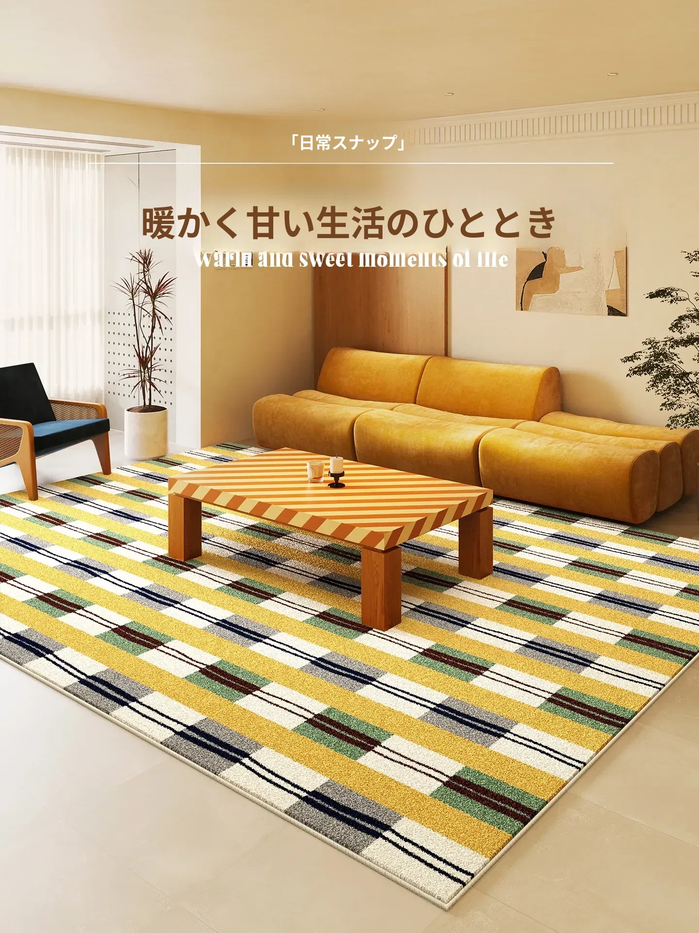ダイナミックなドーパミンカーペット!レトロなチェック柄のリビングソファマット、ヴィンテージ風のふわふわベッドサイドラグ。心地よい居心地を演出し、あなたの空間をおしゃれに彩ります。バウハウスデザインで洗練された印象を。