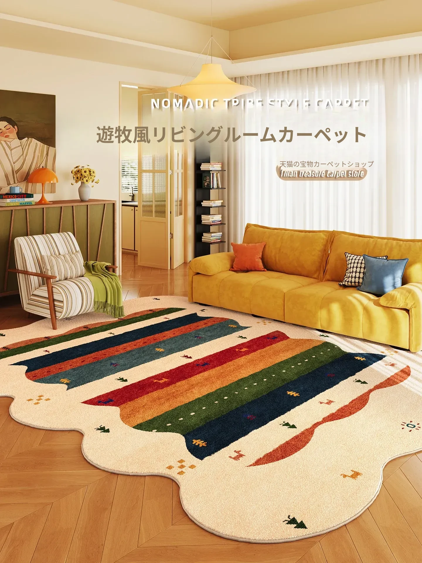 レトロスタイルのユニークな形状のカーペット - 不規則なソファマット、手入れ不要のふわふわフットマット、寝室やベッドサイドに最適なヴィンテージ風デザイン!おしゃれで快適な空間作りに最適です!