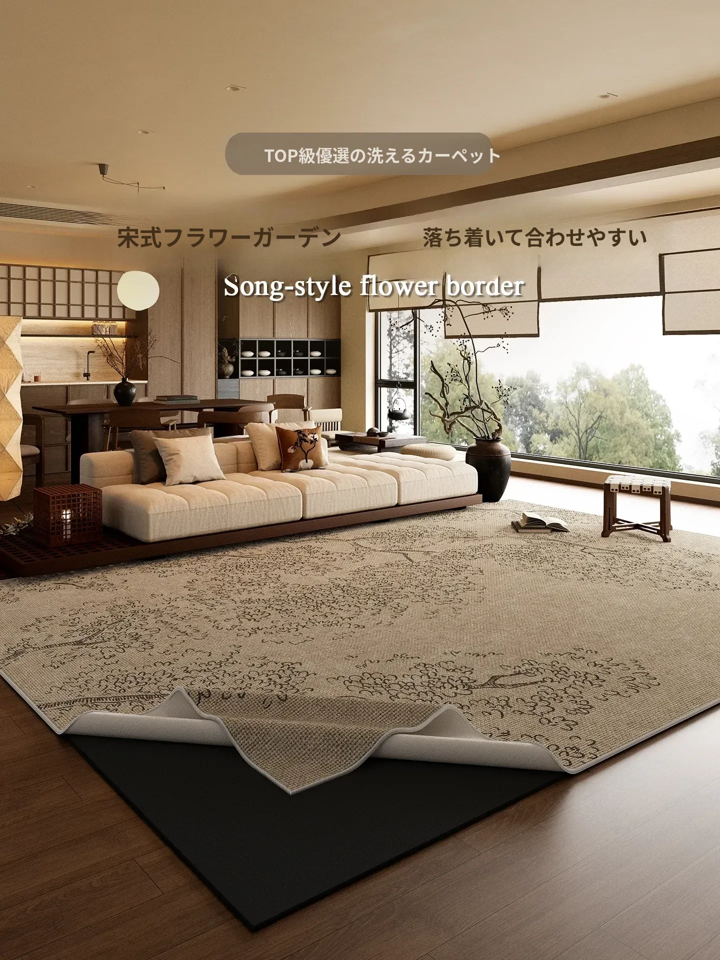 レトロなラウンドカーペット|リビングソファ用洗えるクッションマット|和風デザインの取り外し可能なベッドサイドマット|おしゃれで実用的な足元のアクセント!