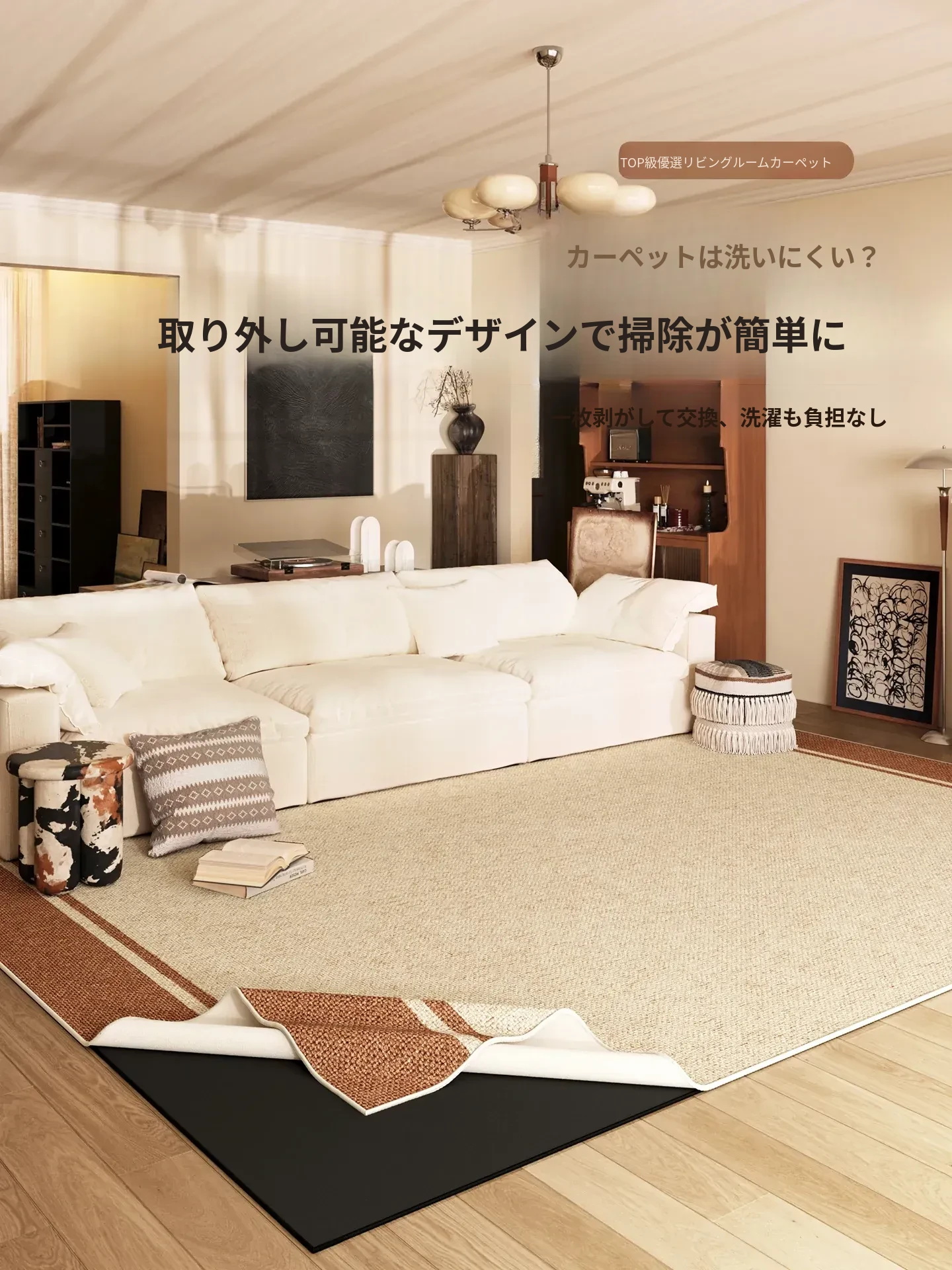 ヴィンテージ風のふわふわラグマット - リビングソファにぴったり!二重構造で取り外し可能、洗濯機で簡単お手入れ。レトロなデザインでお部屋をおしゃれに演出!