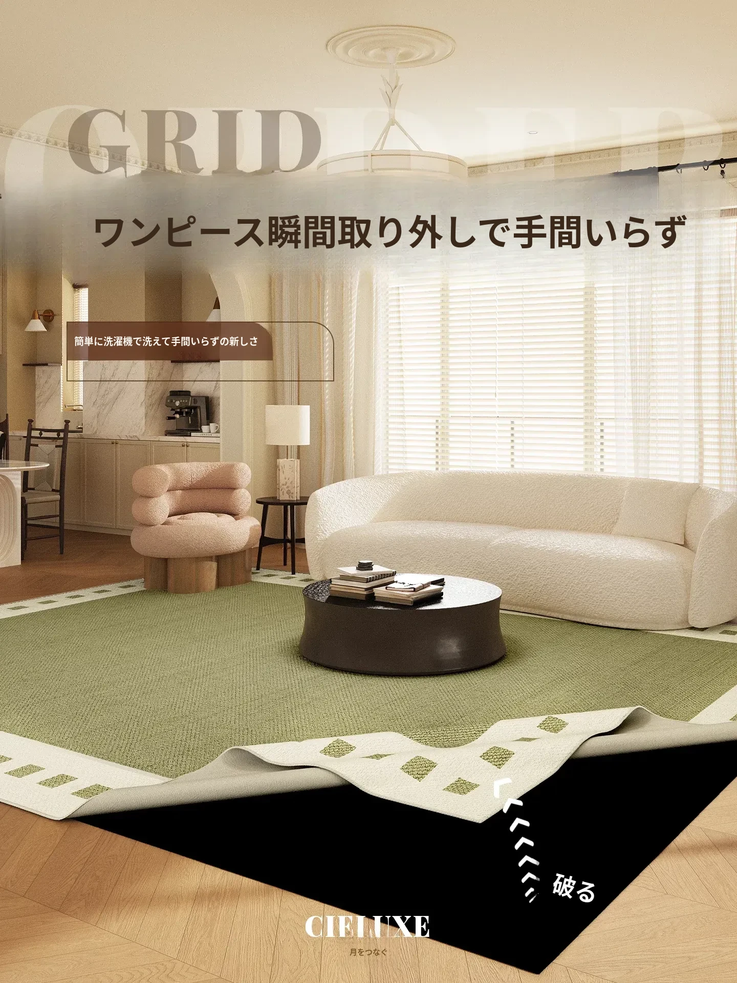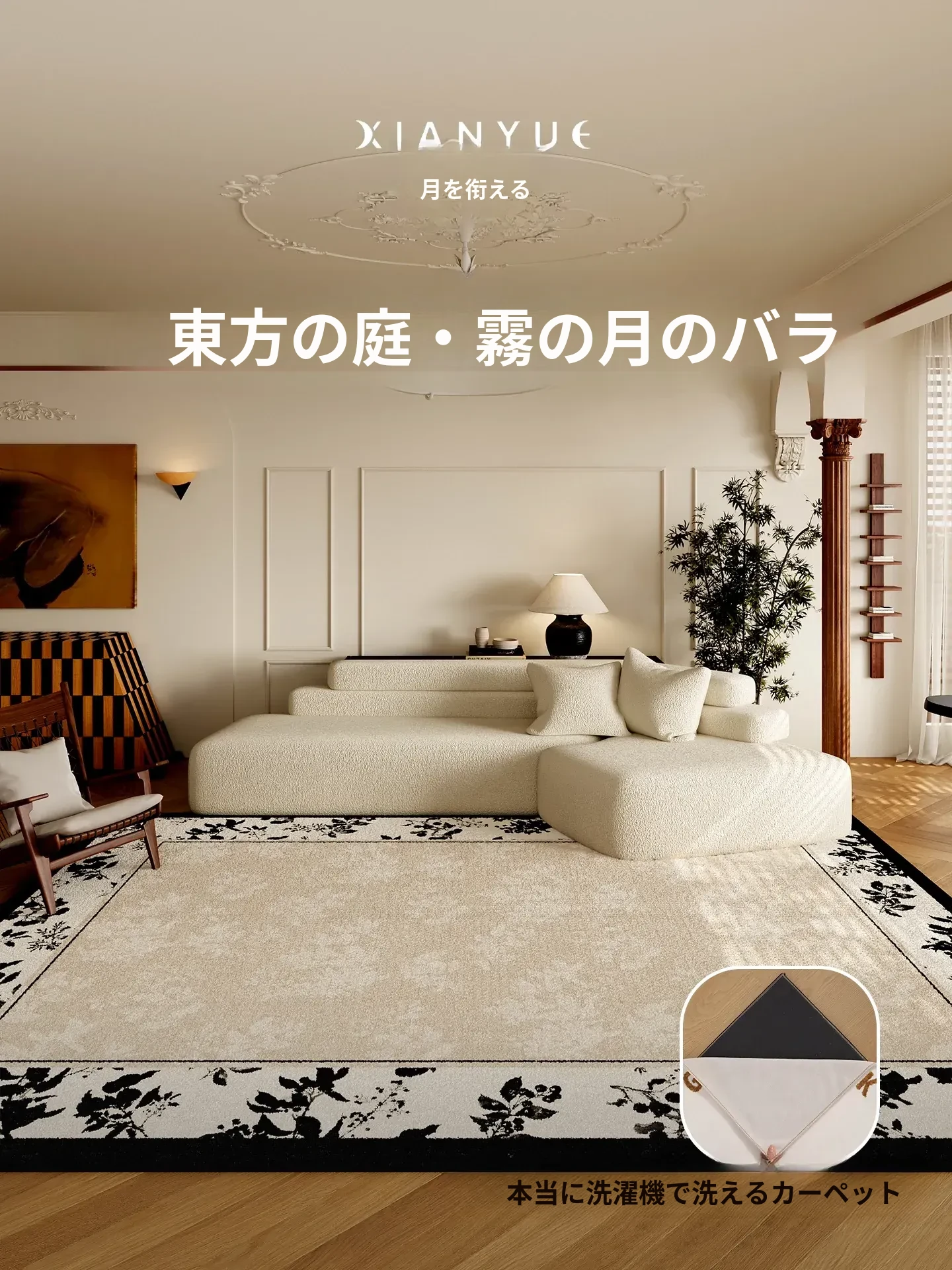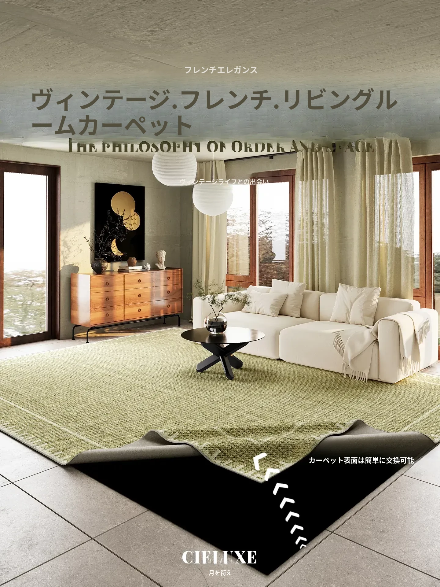 フレンチスタイルの取り外し可能なカーペット|ヴィンテージ風のリビングソファ用マット|洗えるふわふわラグ|お手入れ簡単な機械洗い対応!快適な足元を演出します!