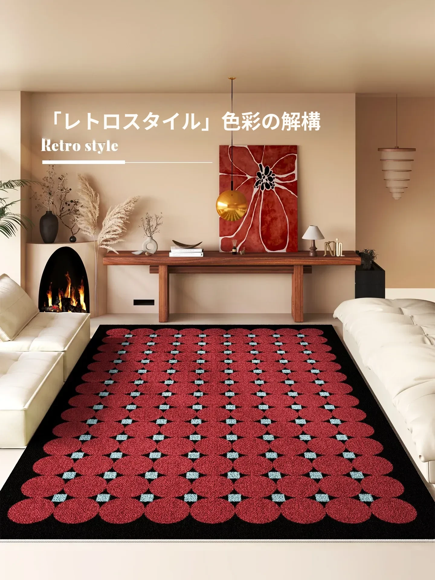 レトロなリビングスタイルのカーペット|バウハウスソファにぴったりなモダンデザインのベッドサイドマット|赤い幾何学模様の家庭用フットマットでお部屋を彩る!