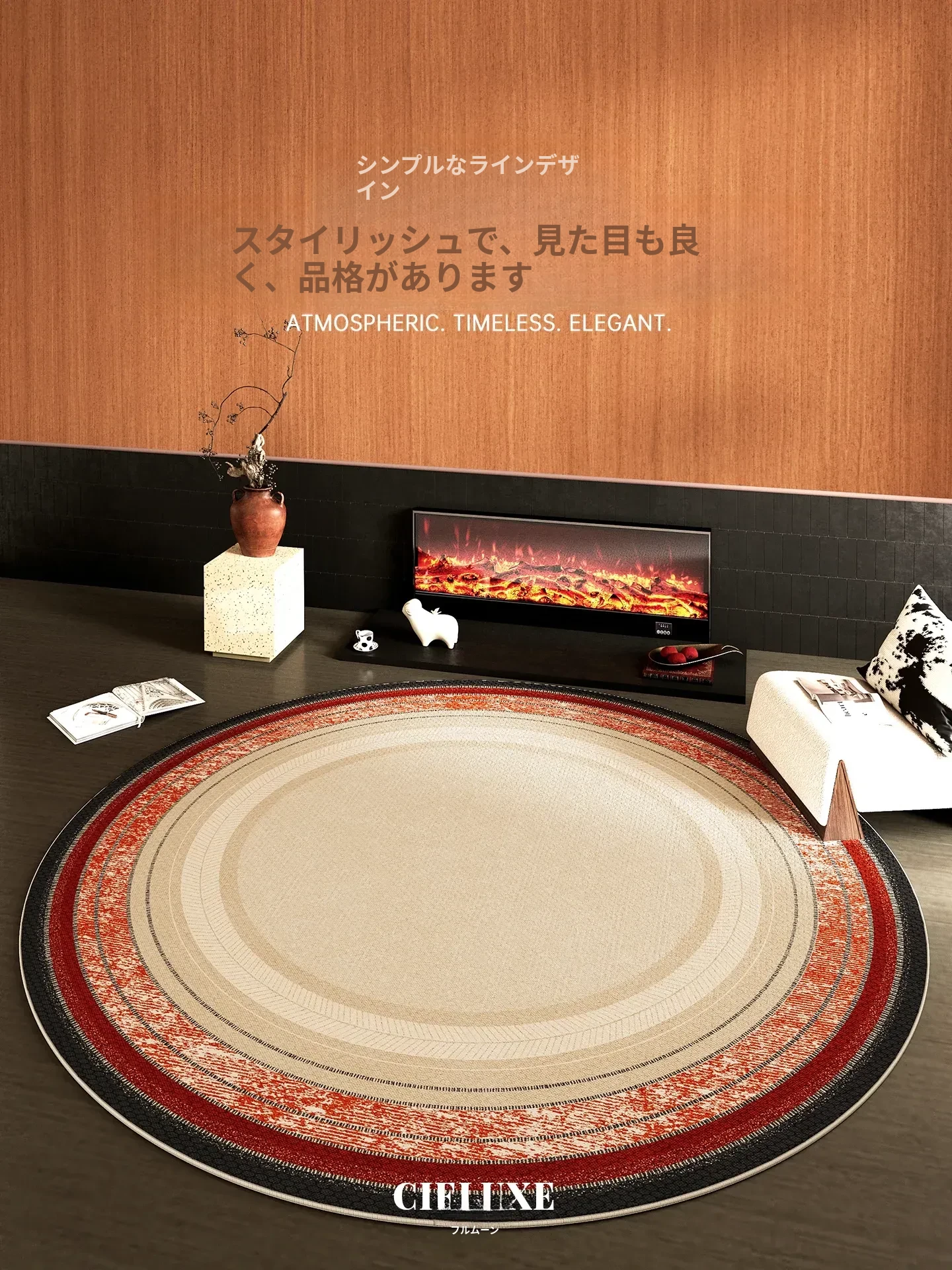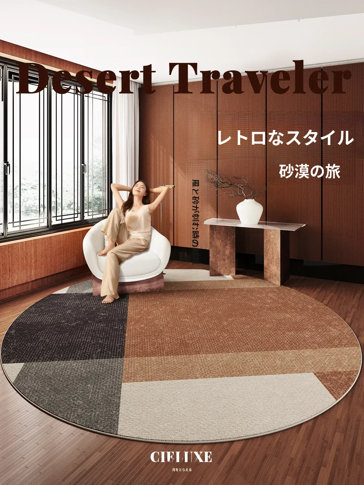 2026年新作!お手入れ簡単な防水ラウンドカーペット - 美しいレトロデザインで、リビングルームのソファやテーブルの足元を彩ります。これ一枚で、空間をスタイリッシュに演出!