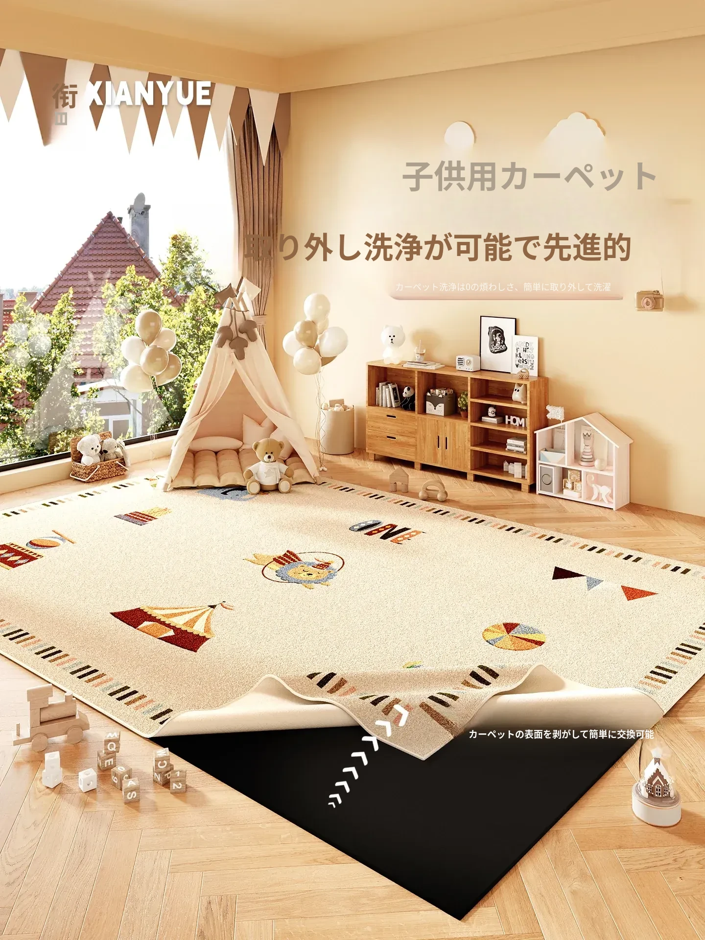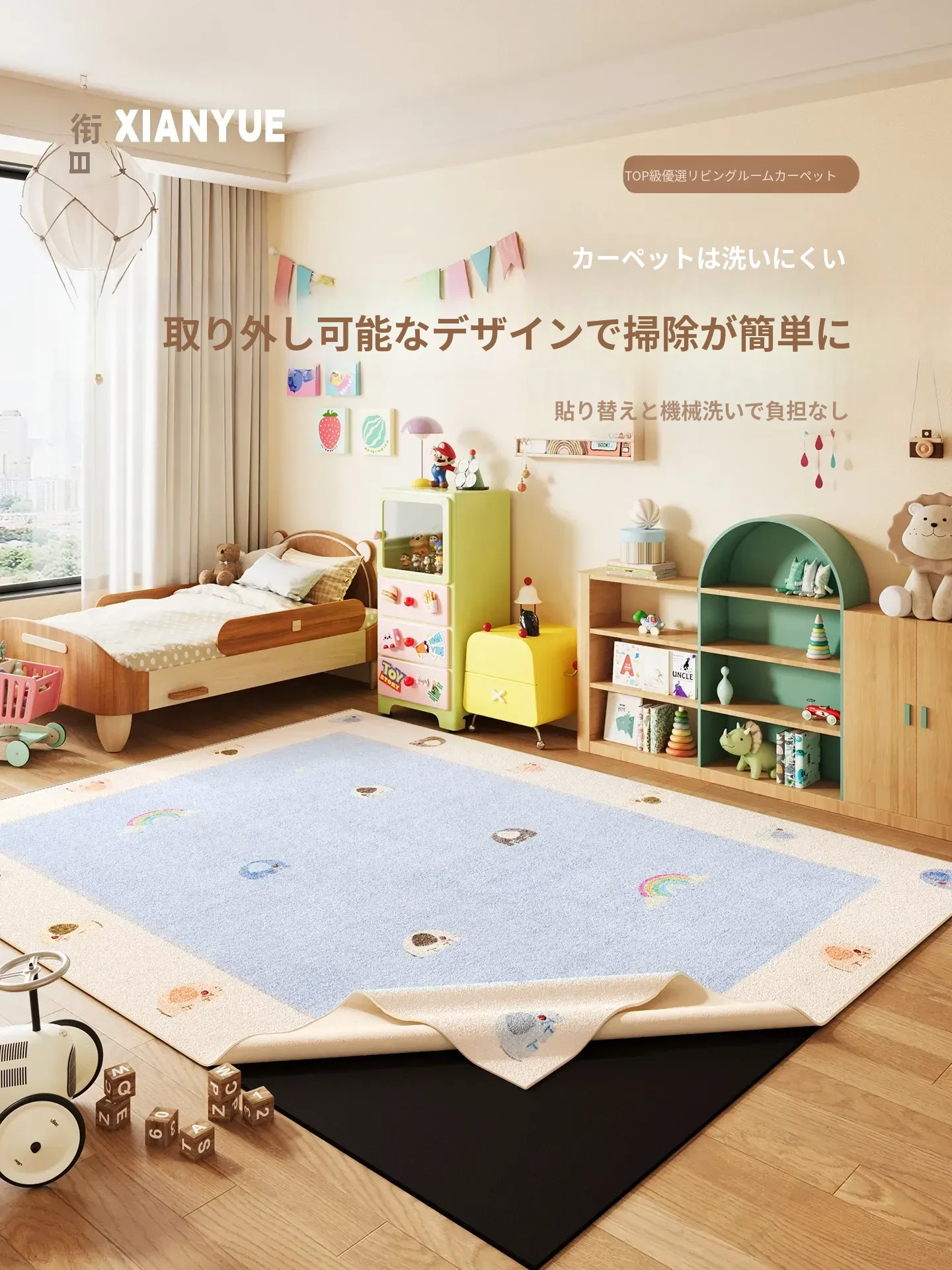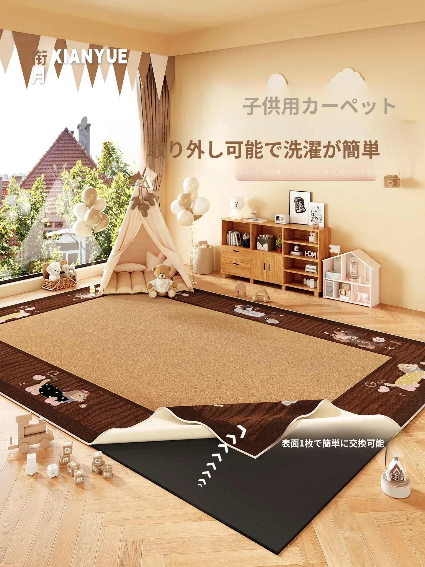 月の衝撃を受けた子供部屋用のダブルレイヤー洗えるカーペット!かわいいキャラクター付きのクッション性マットで、安心してハイハイできる!お手入れ簡単で、楽しい空間を演出します!