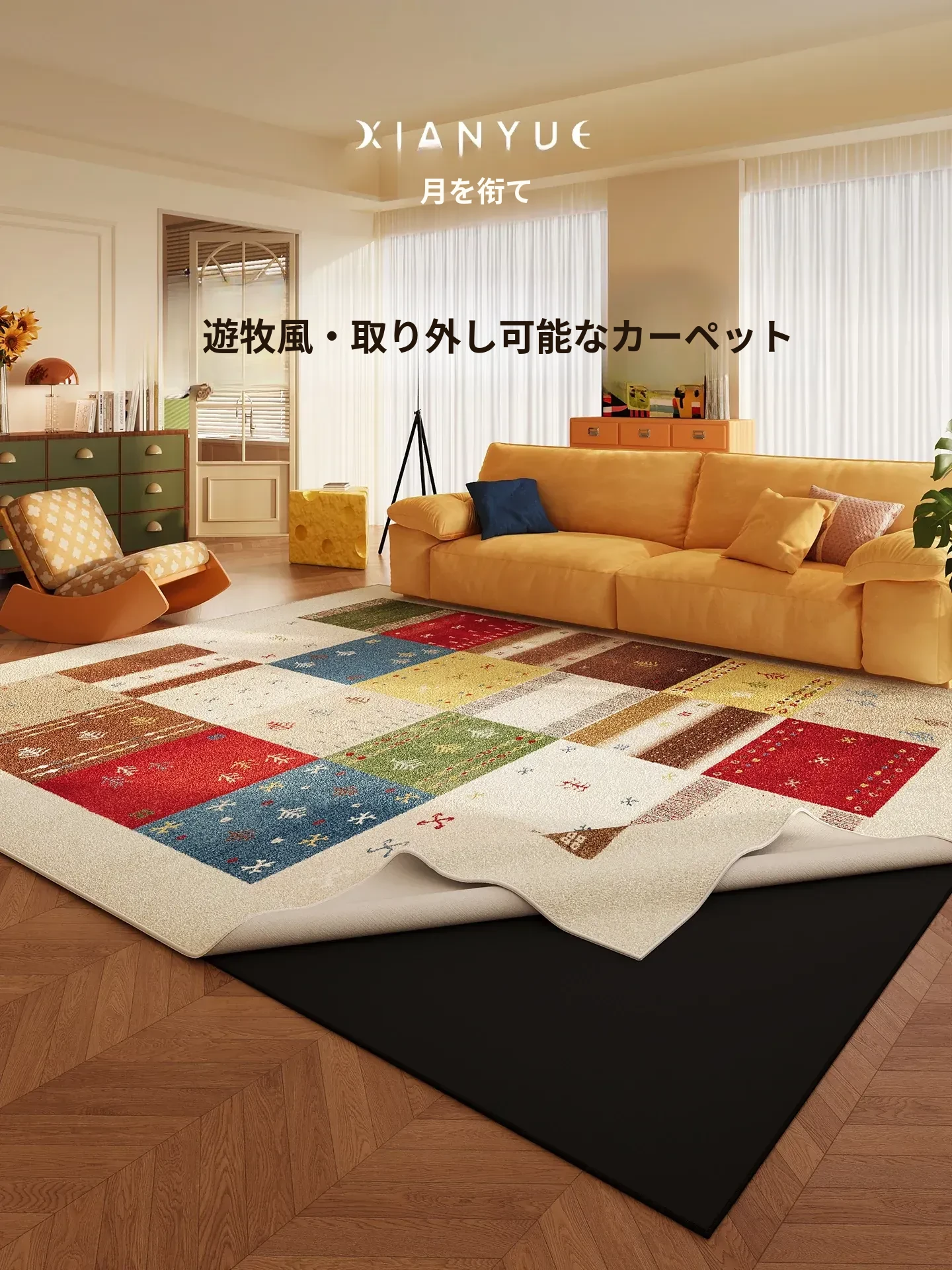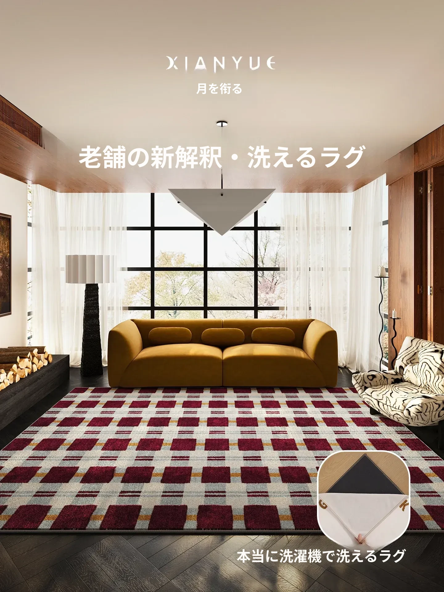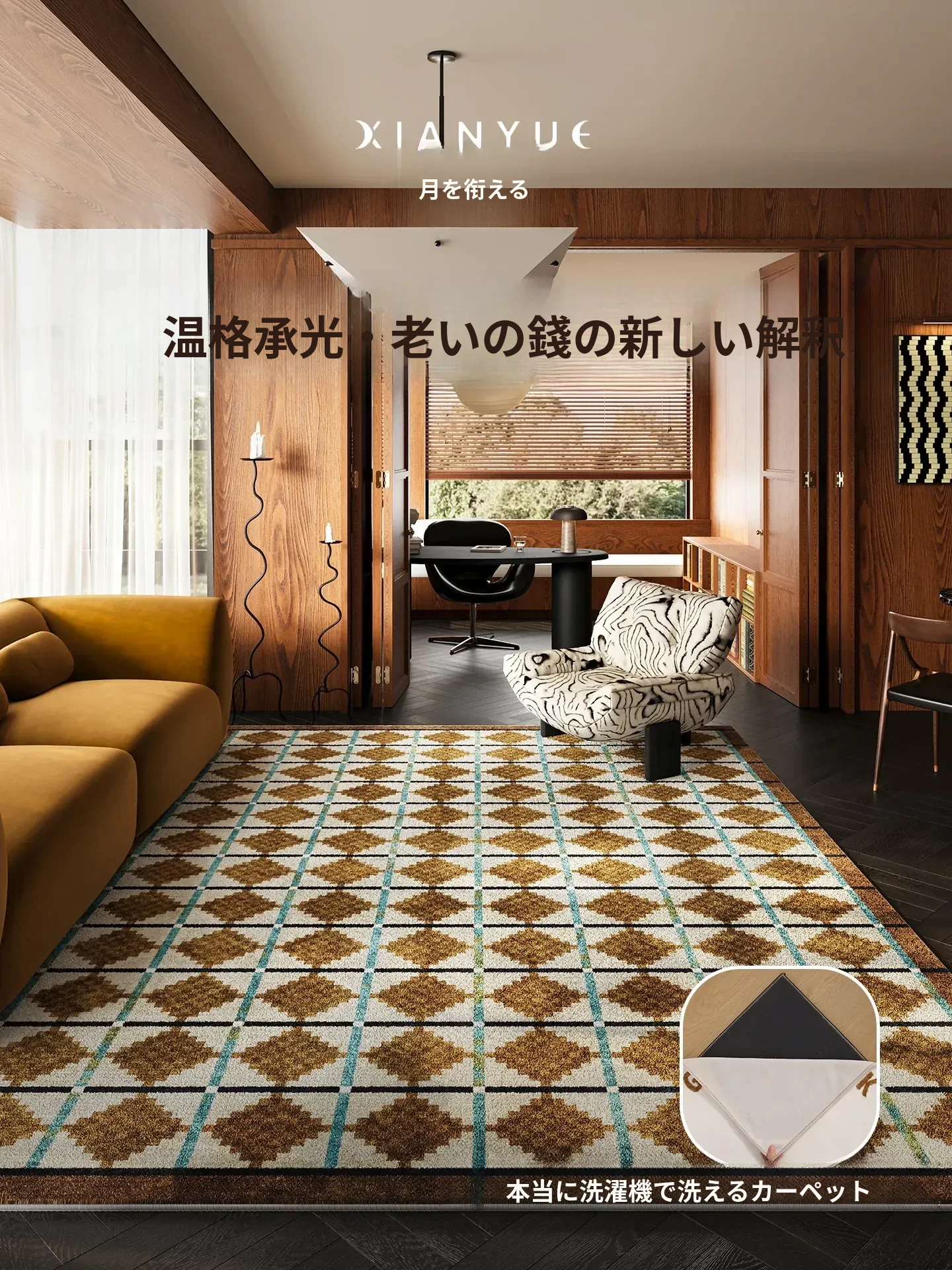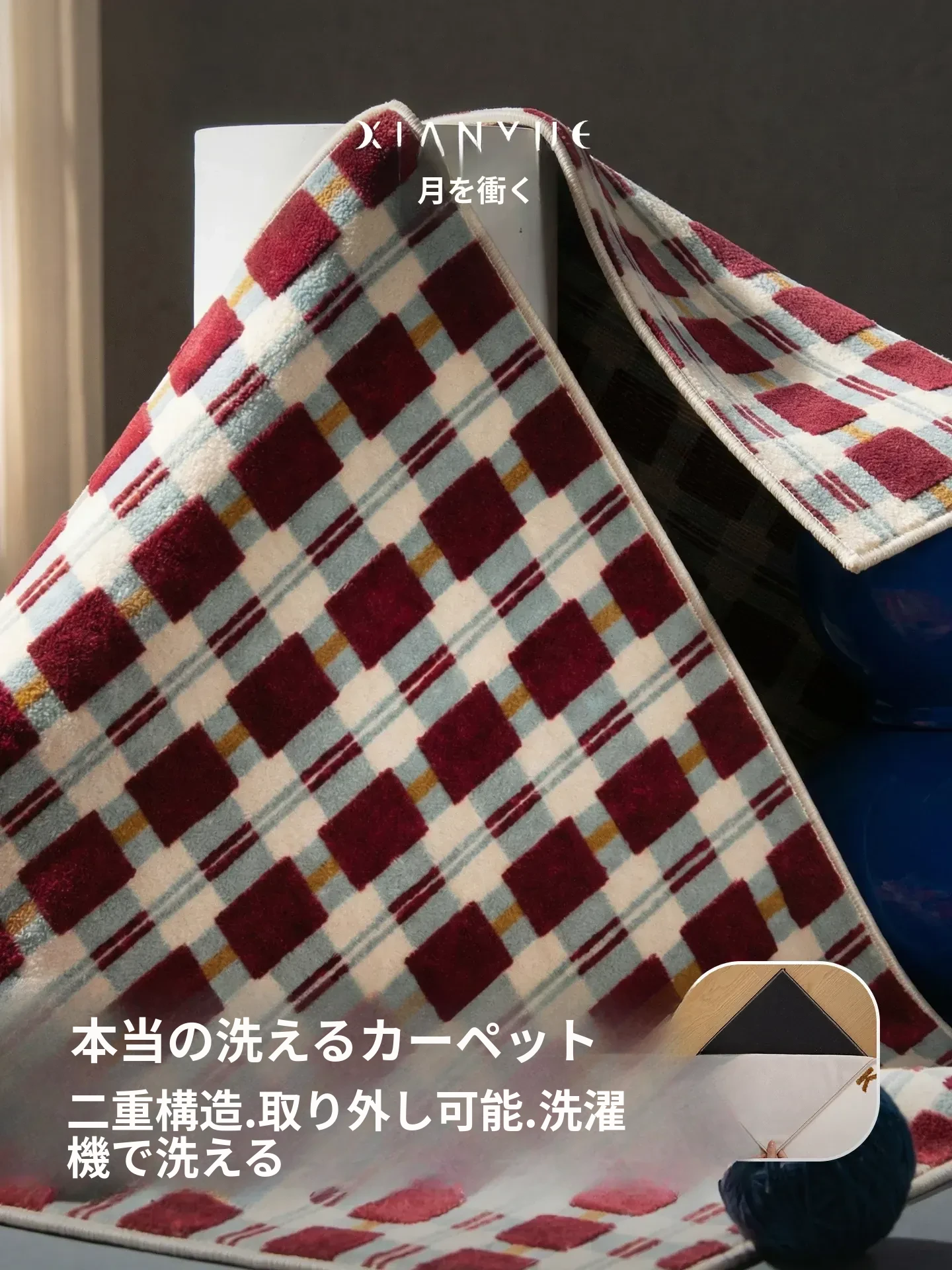 レトロデザインの洗えるカーペット!リビングや寝室にぴったりの取り外し可能なフロアマット。ふわふわの質感で快適な足元を実現。おしゃれで機能的なインテリアアイテムをぜひご体験ください!