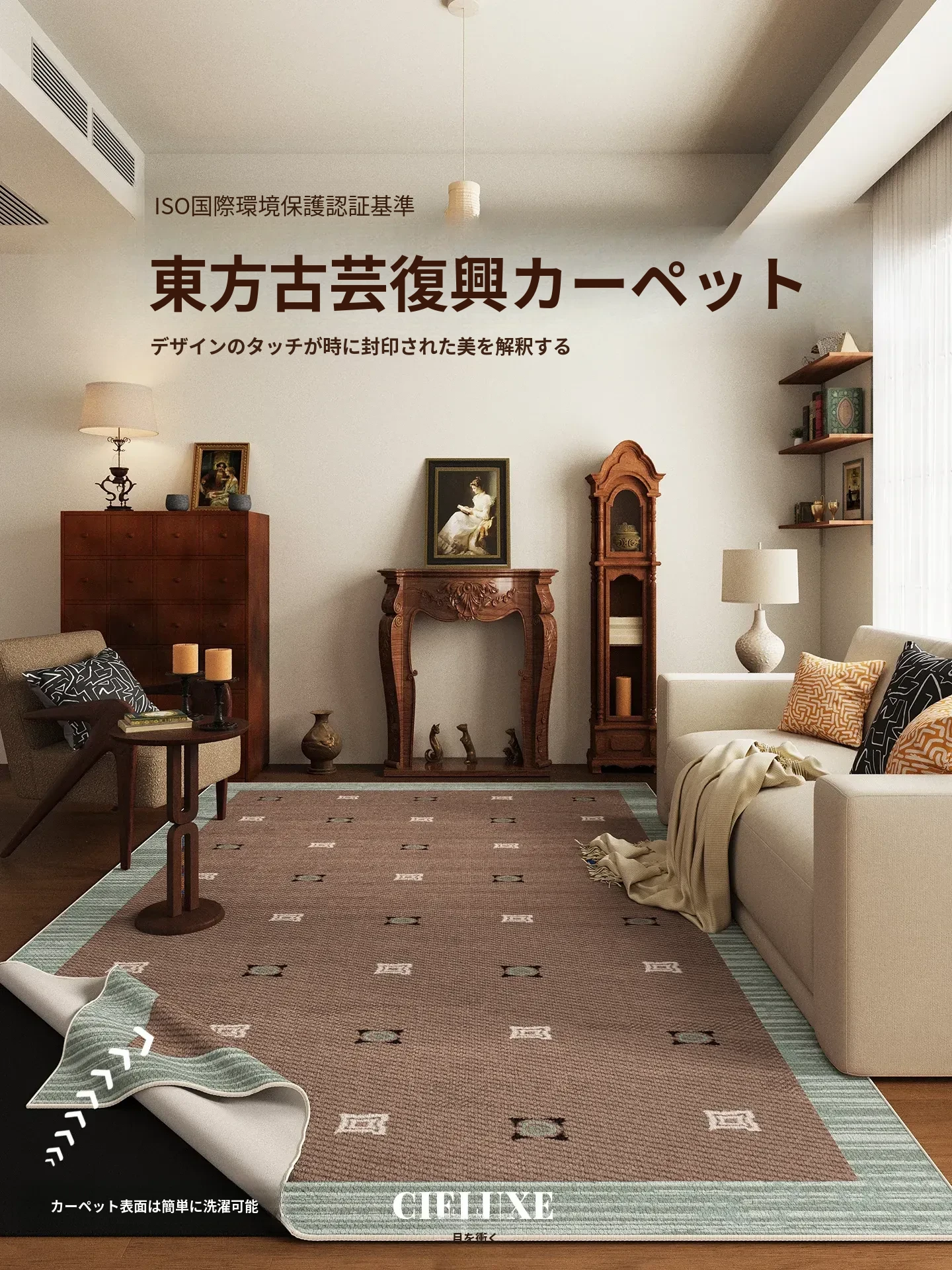 レトロ洗えるカーペット - ソファ用リビングマット、アンティークスタイルの取り外し可能なフットマット、ベッドサイドマット、撥水加工でお手入れ簡単!おしゃれで機能的なインテリアアイテムです。