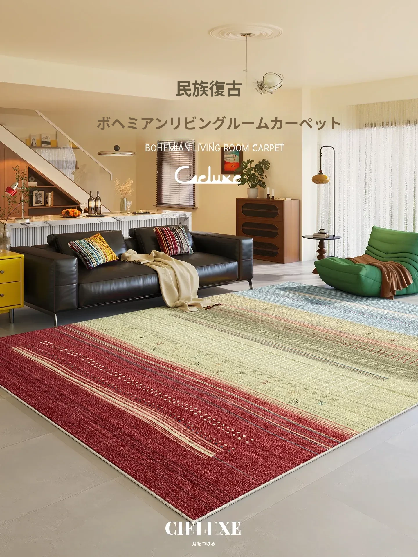 2026年新作!お手入れ簡単な中古風カーペット - リビングルームにぴったりのヴィンテージソファマット。民族風デザインで防水・防汚機能付き、どんなインテリアにもマッチします!