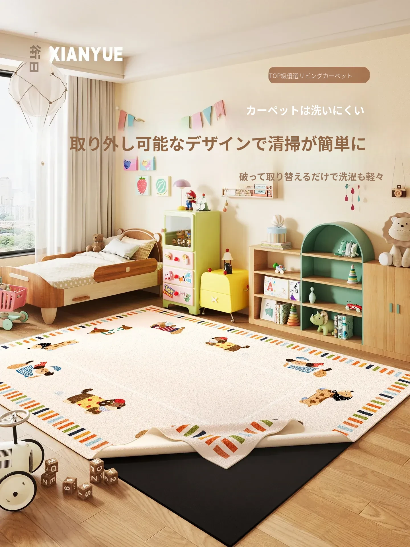 月の形のカートゥーン子供用洗えるラグ - 取り外し可能なソファマット、二重構造で洗濯も簡単!クッション性抜群で転倒防止、厚手のふわふわ素材でお子様の快適な遊び空間を提供します。