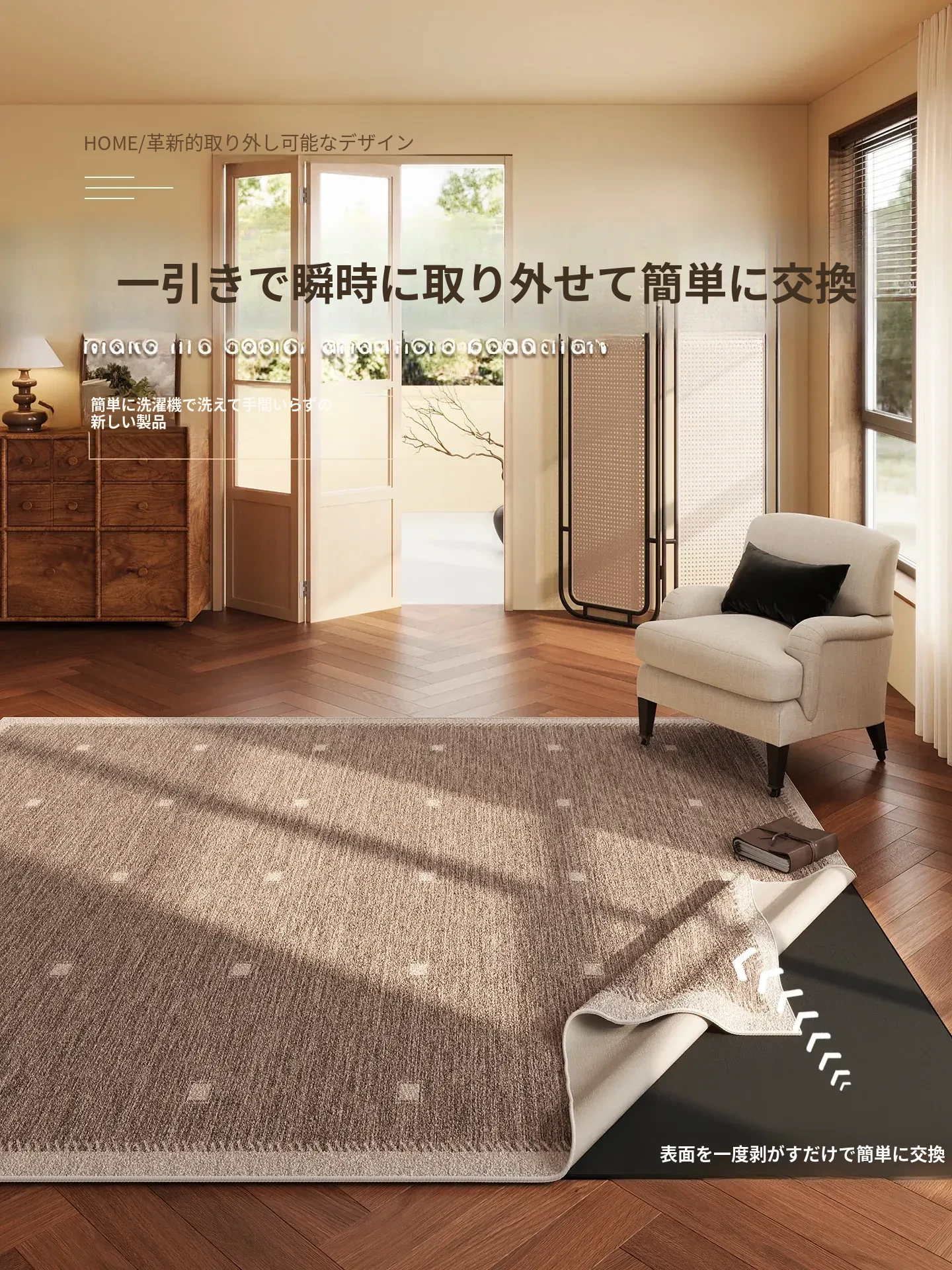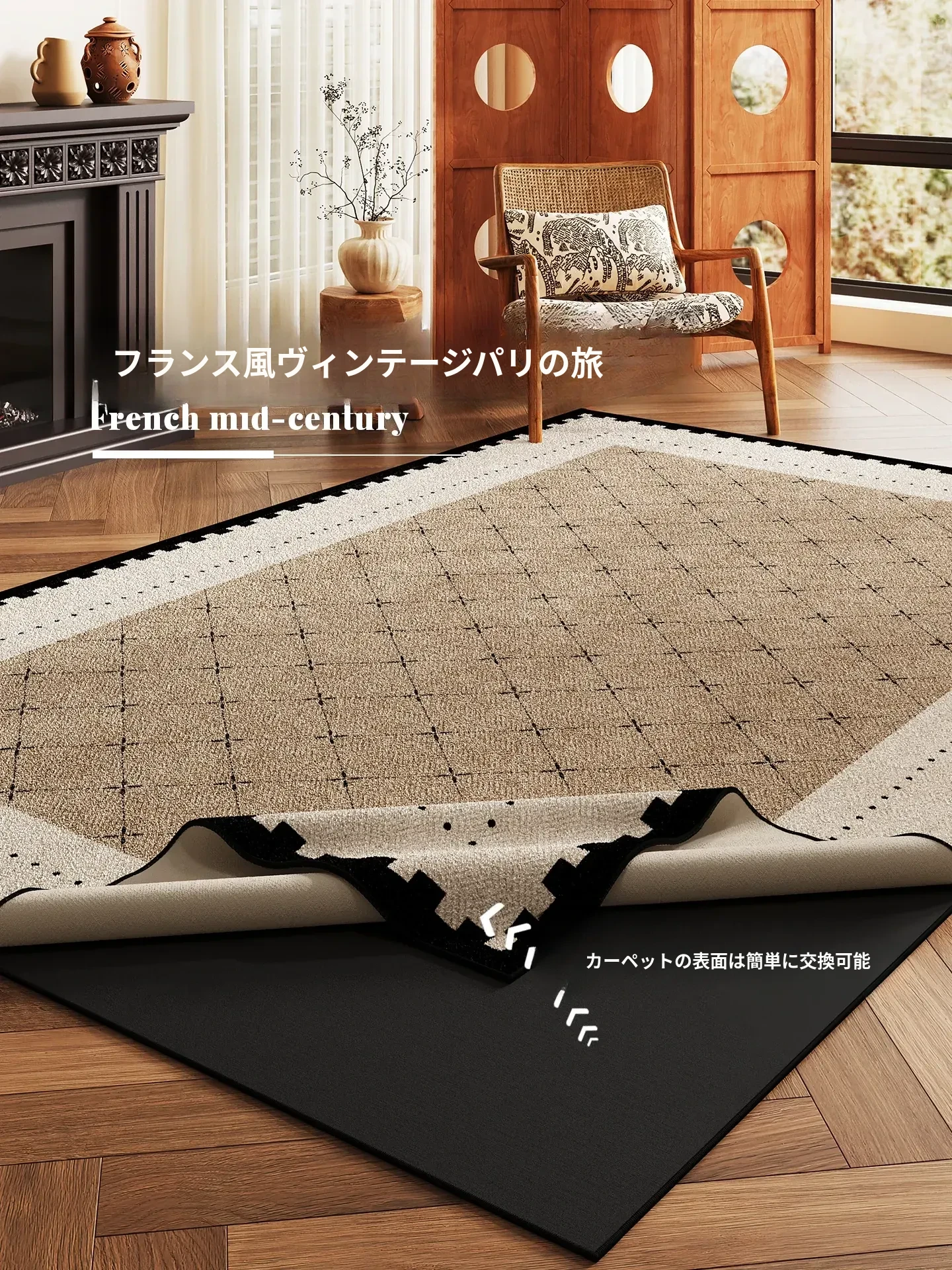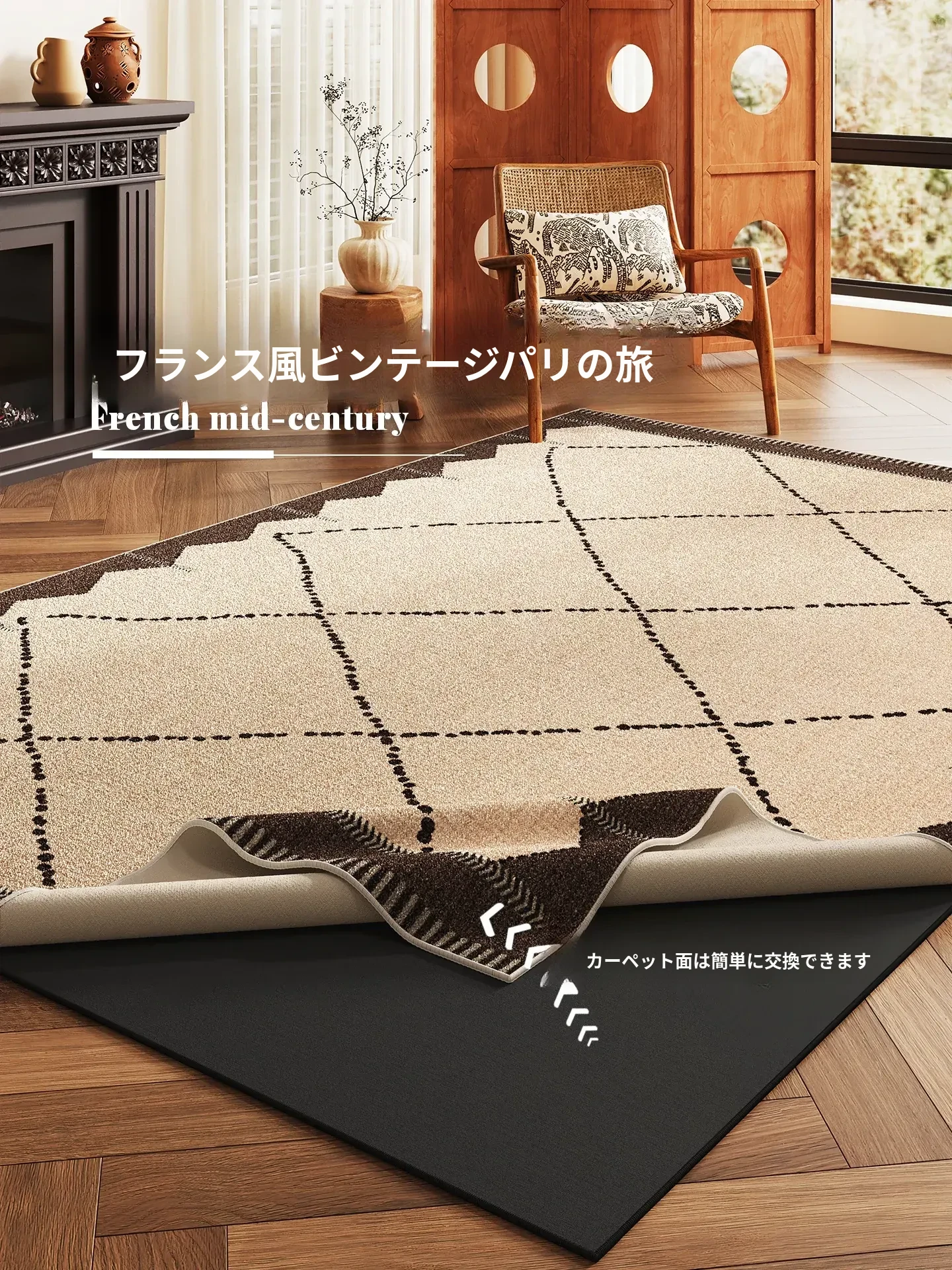 レトロデザインの洗えるカーペット!リビングやベッドサイドに最適な分解可能なマット。和風の雰囲気を醸し出し、機械洗いOKでお手入れも簡単。あなたの部屋を一層魅力的に演出します!