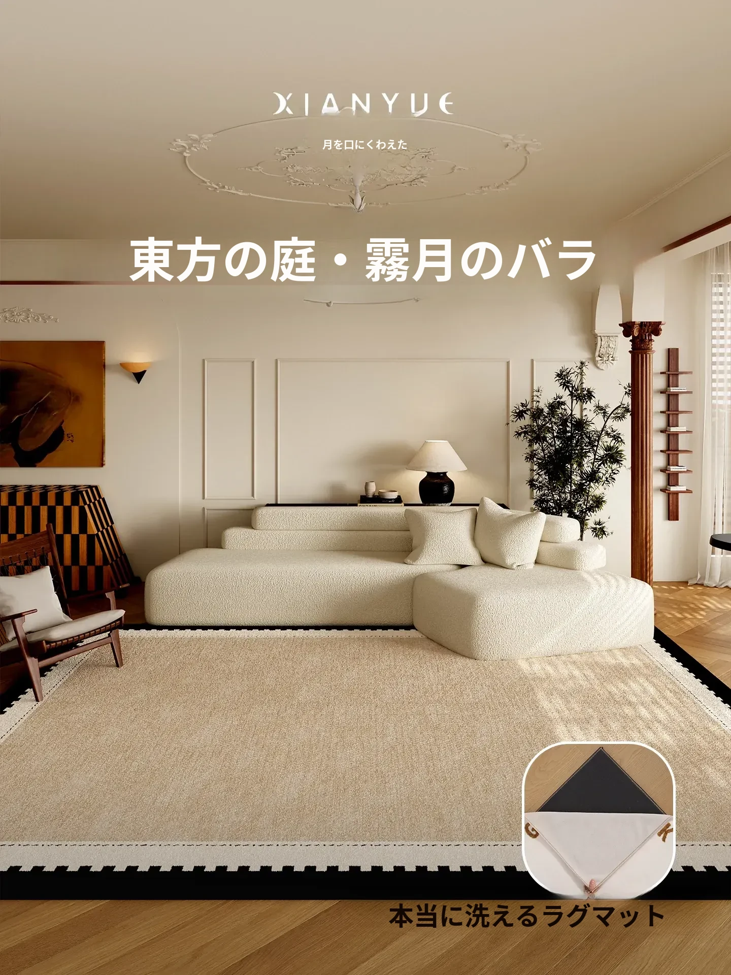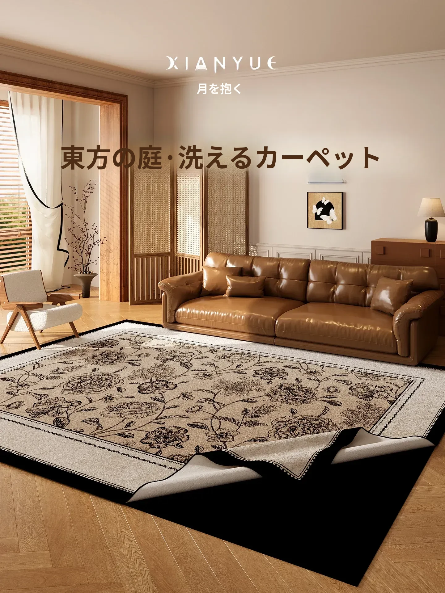 衔月の中華風デザイン、洗える機能付きラグ!リビングやソファに最適なレトロスタイル、寝室のベッドサイドにもぴったり。ふわふわの質感で心地よい生活空間を演出!