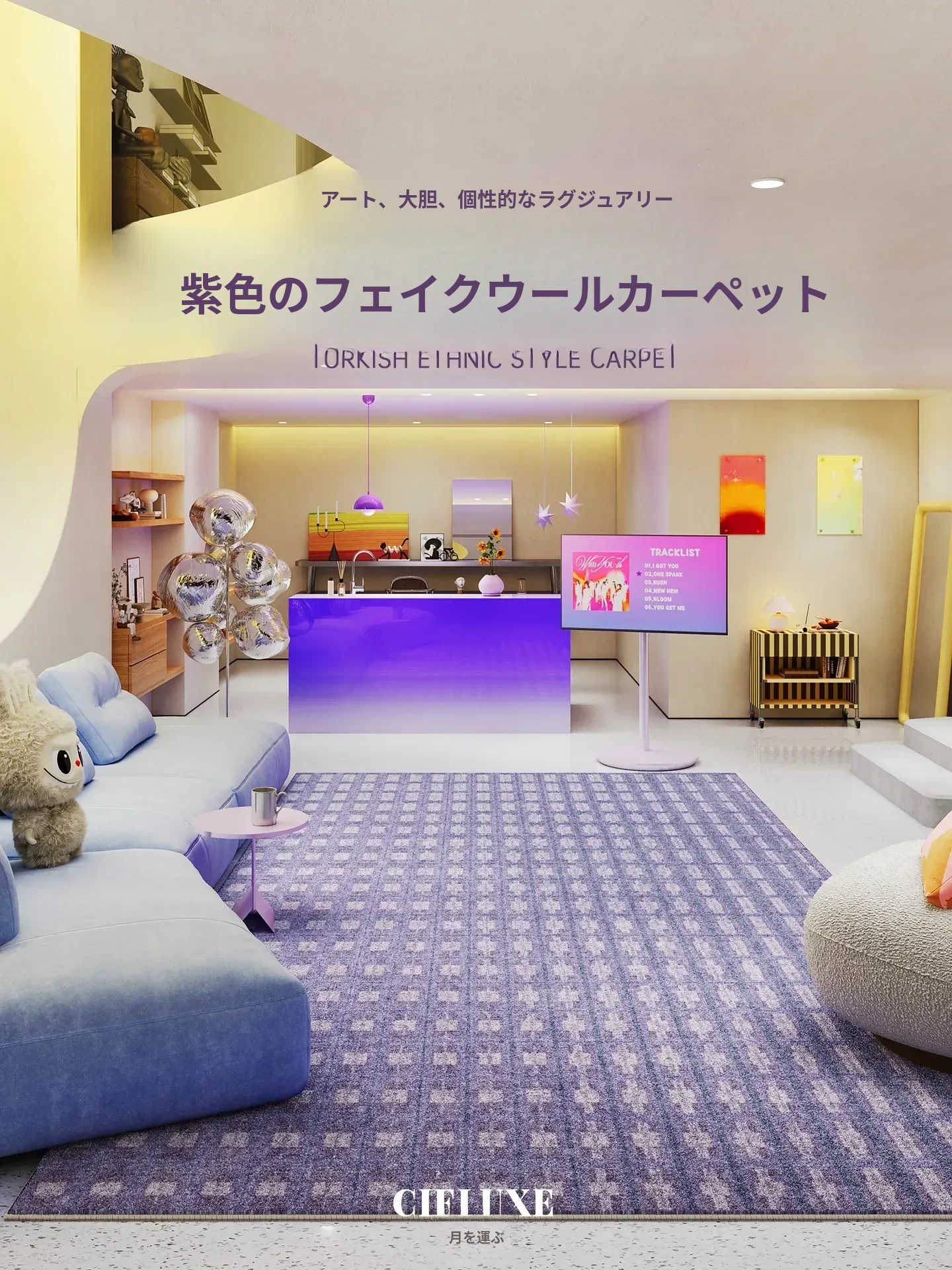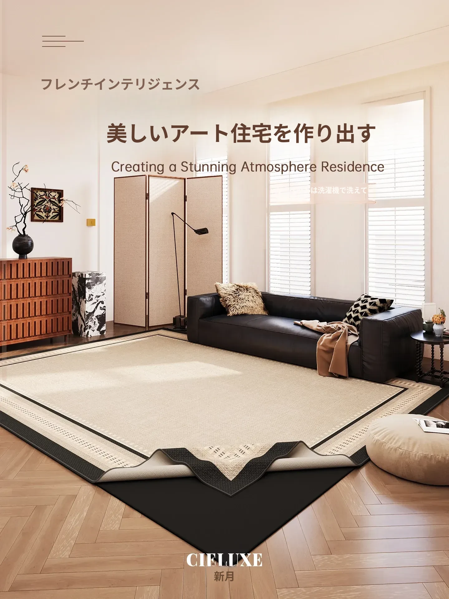 2026年新作!衔月デザインのラグ - 高級感溢れる軽やかなスタイル!洗濯機で簡単に洗える、リビングルームやベッドサイドに最適なオシャレなマット。快適な空間を演出します!