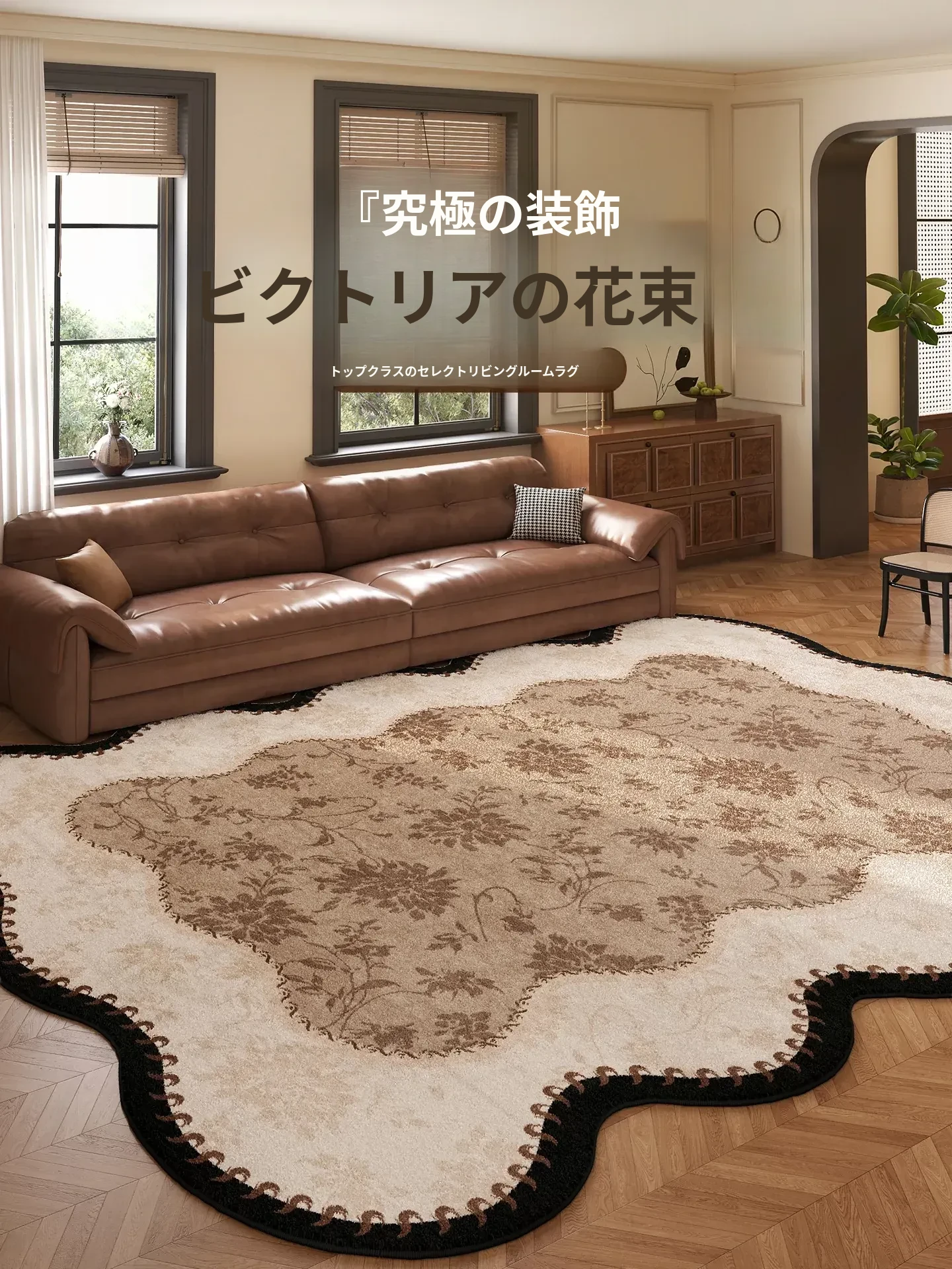 月の光を宿したラグ - 高級感溢れるモダンなデザイン!ふわふわの触り心地で、リビングや寝室にぴったり。防水・防汚機能付きで、お手入れも簡単。おしゃれな空間を演出するヴィンテージ風マット。