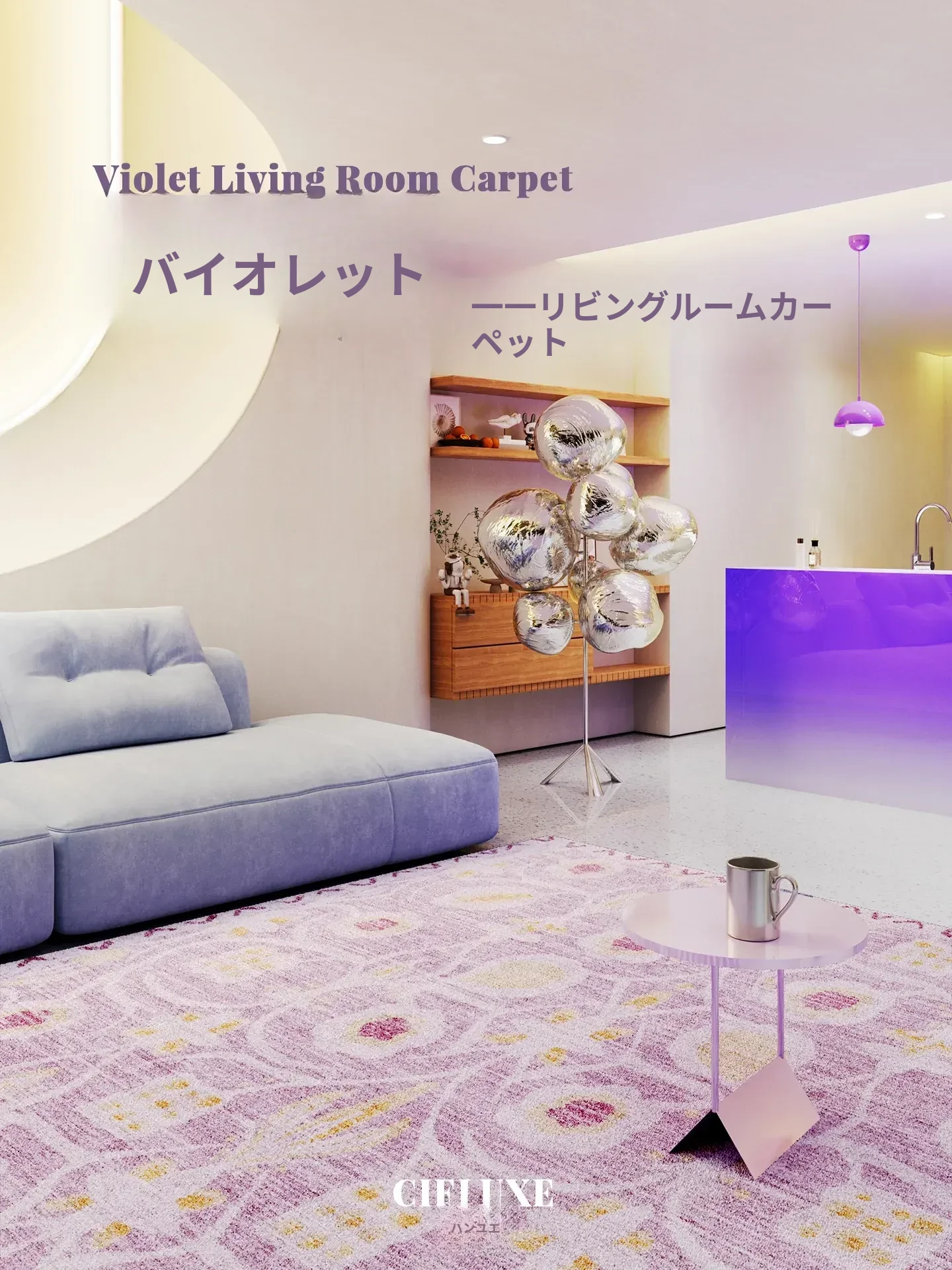 レトロなカーペット リビングルーム用ソファーとコーヒーテーブルにぴったり!防水・防汚機能付きの紫色の床マット。寝室のベッドサイドにも最適!おしゃれで実用的なインテリアアイテムを手に入れましょう。